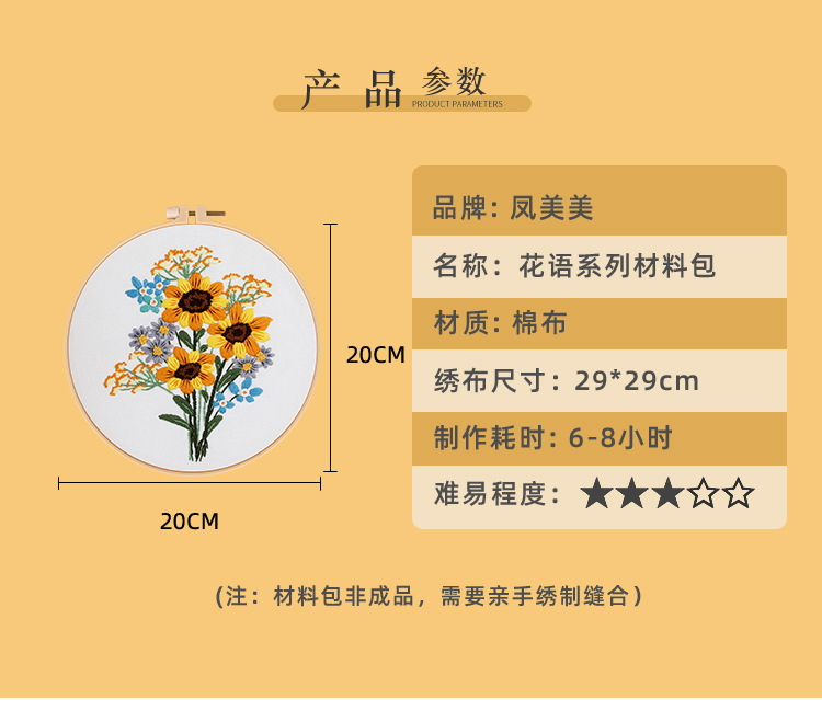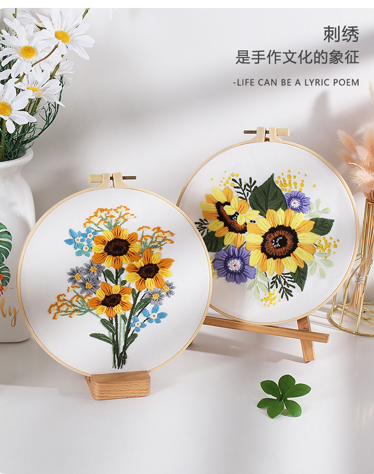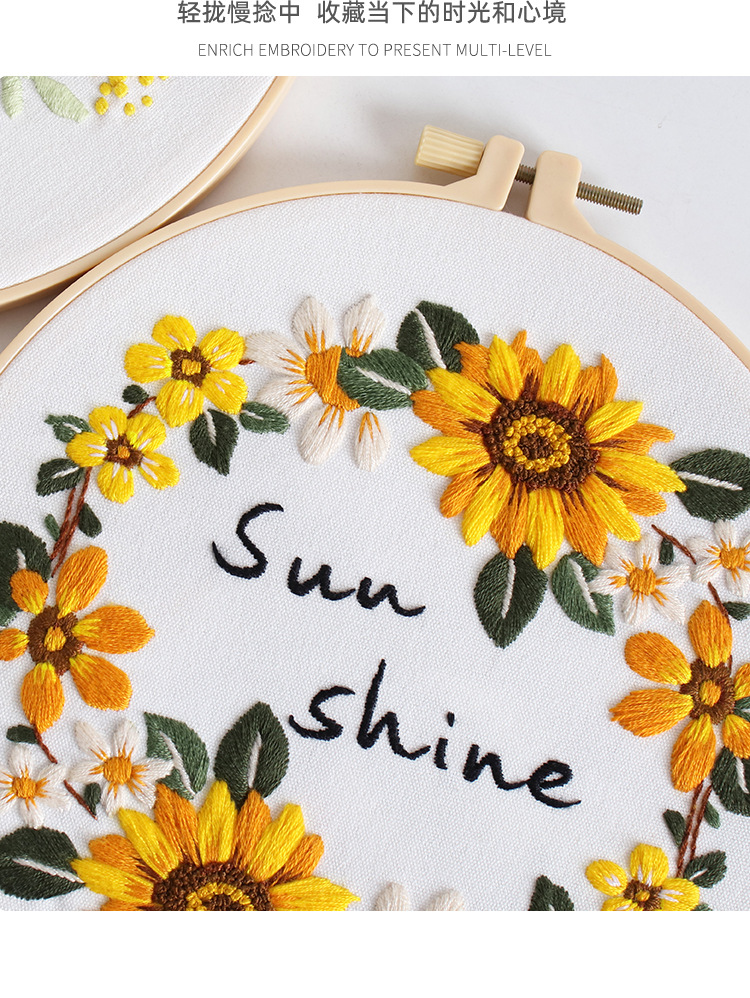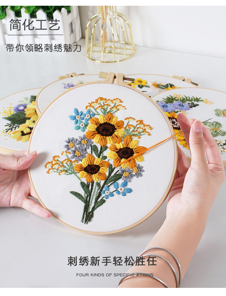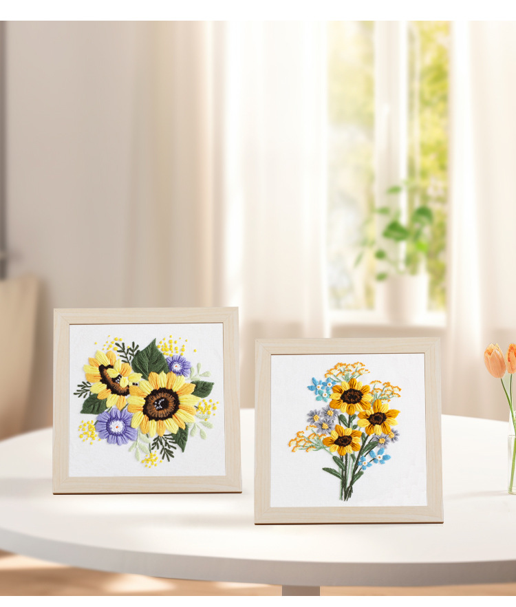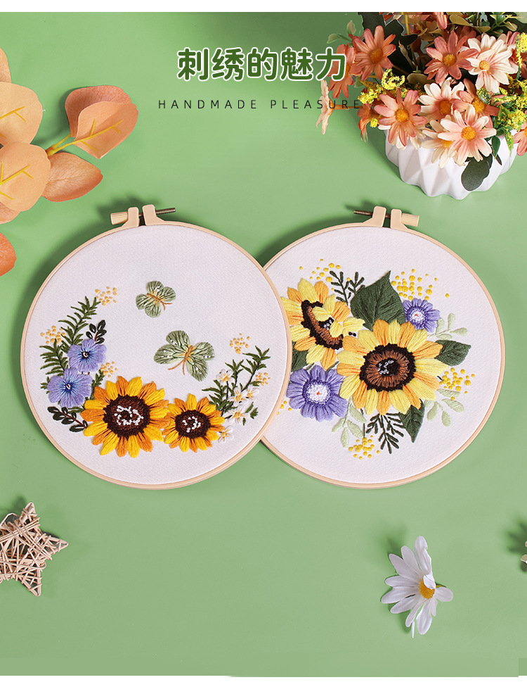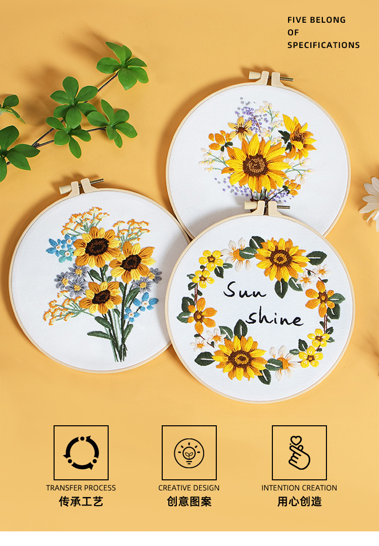 Paquete de material de bordado hecho a mano de bricolaje original nuevo ramo de flores de girasol guirnalda transfronteriza inglés