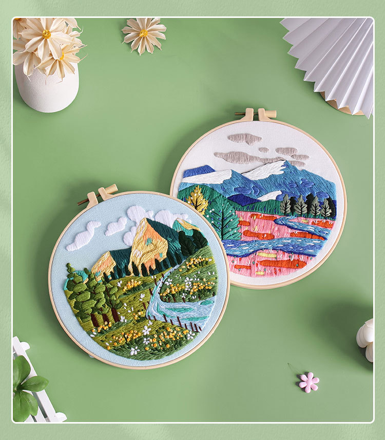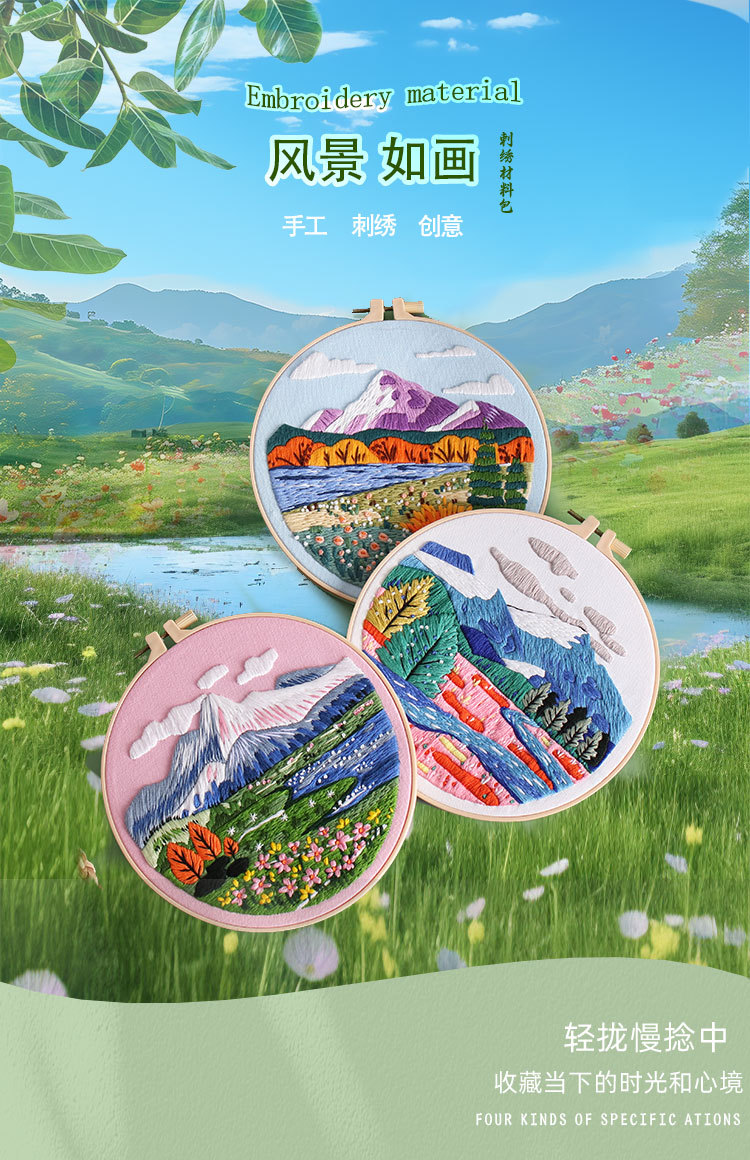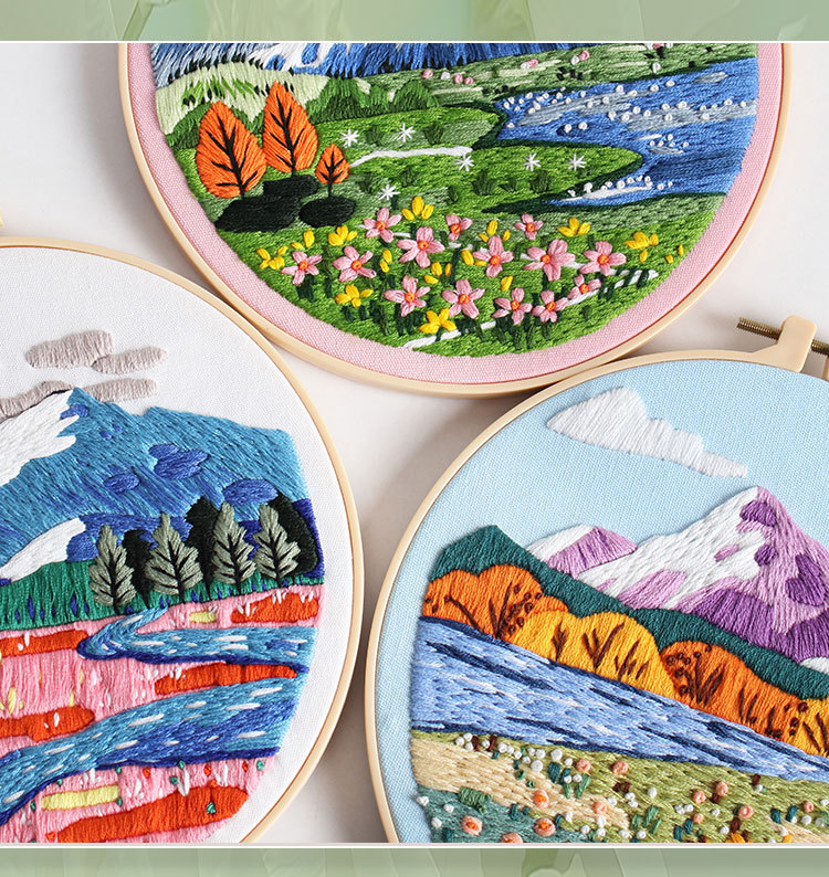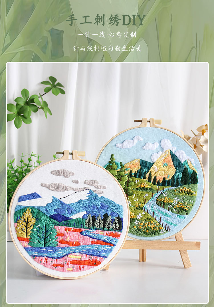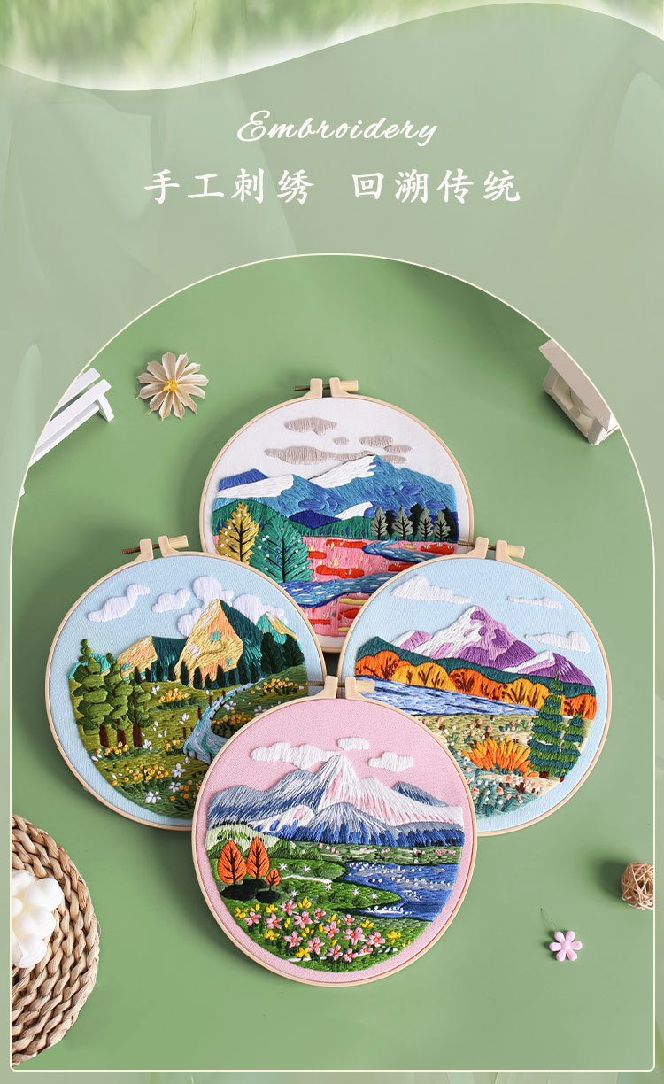 Nuevo producto paisaje bordado bricolaje material hecho a mano bordado costura juego de algodón Amazon transfronterizo inglés original