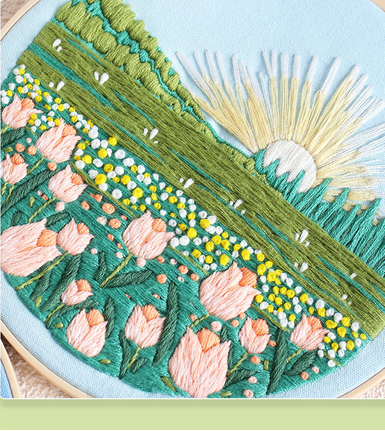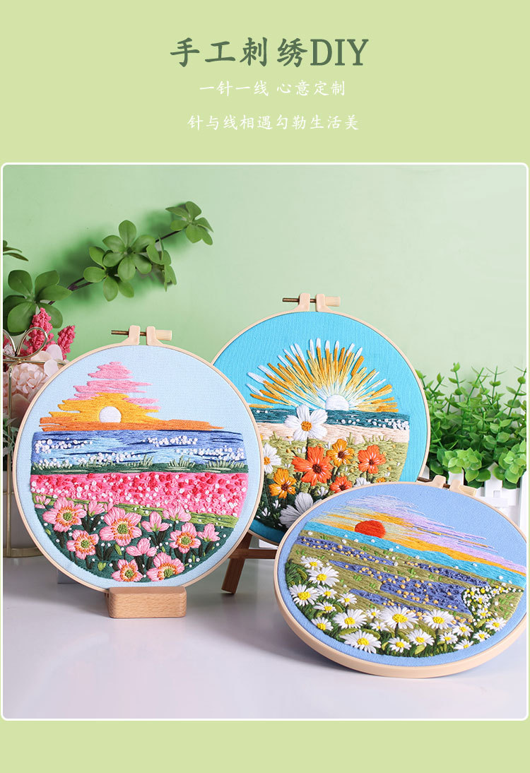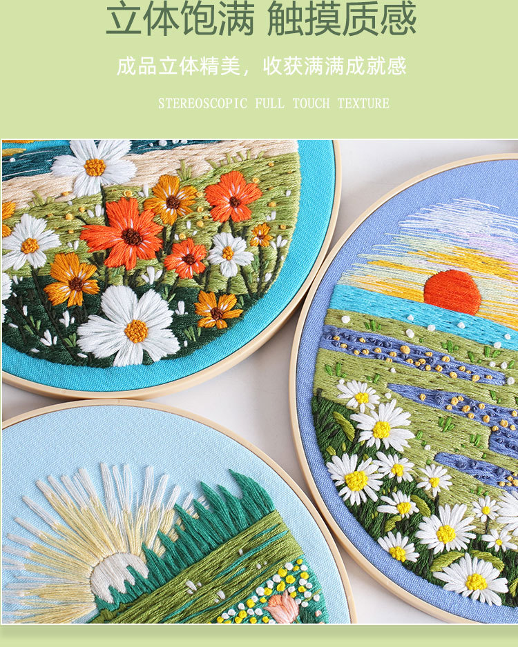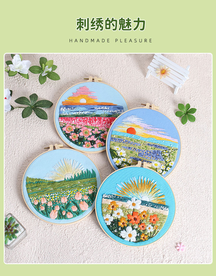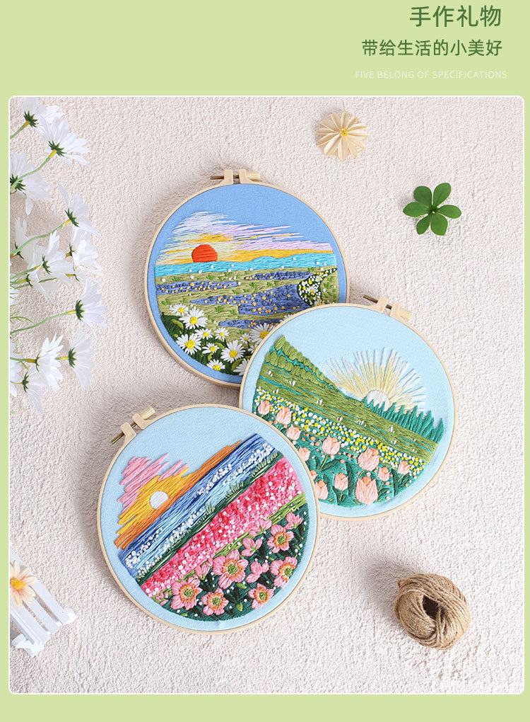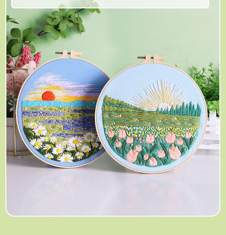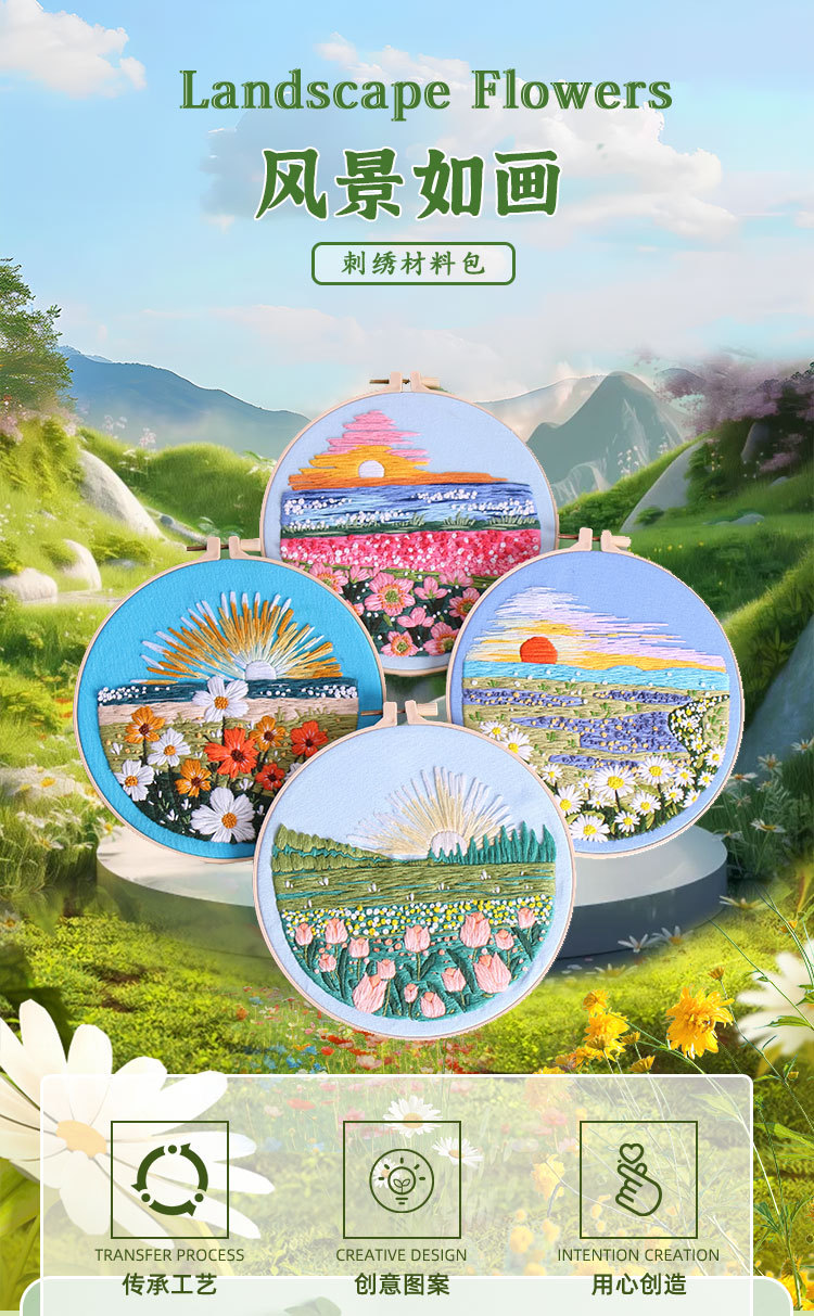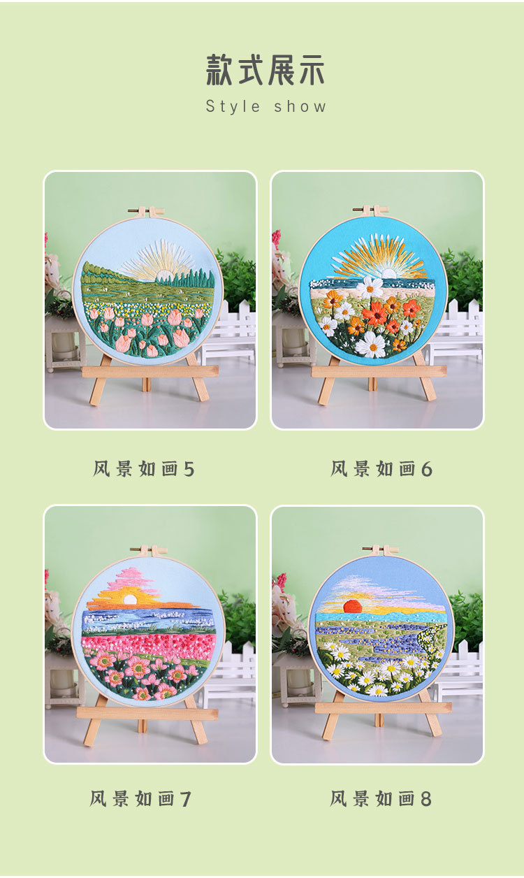 Nuevo paquete de material de bricolaje de bordado de paisaje y paisaje, kit hecho a mano, productos semiacabados autobordados creativos, inglés transfronterizo original