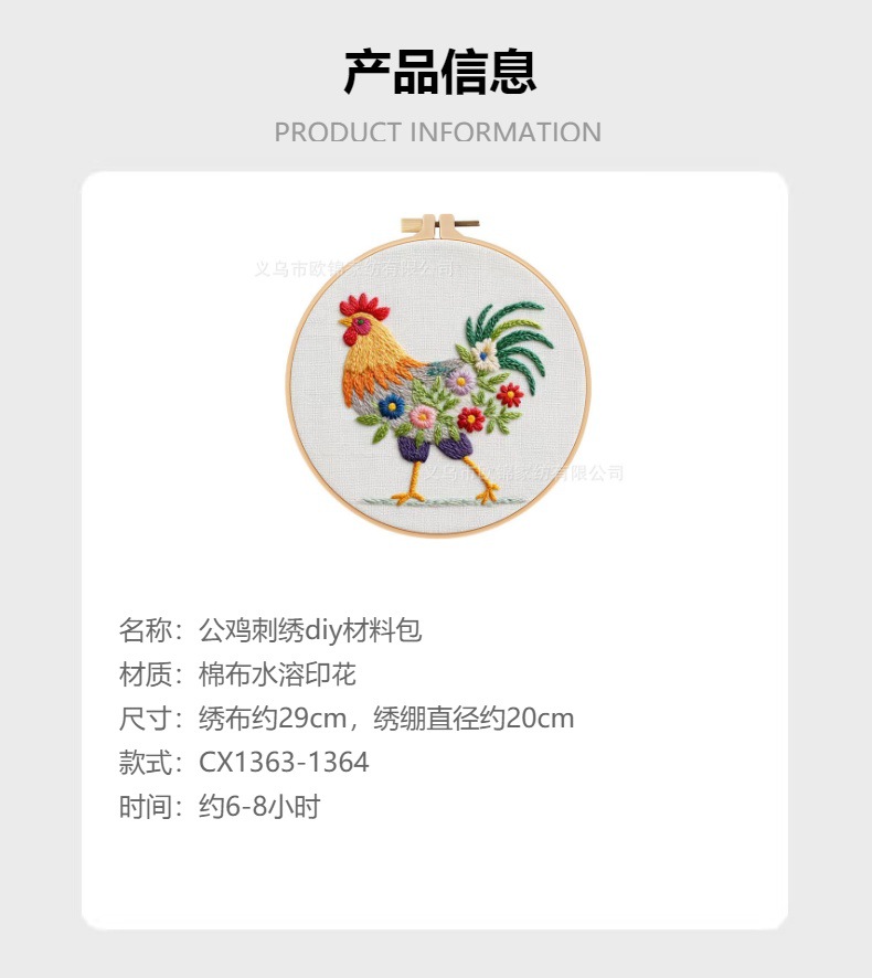 Nuevos productos de gallo bordado DIY material de mano bolsa de bordado tridimensional europeo material DIY Amazon Inglés transfronterizo