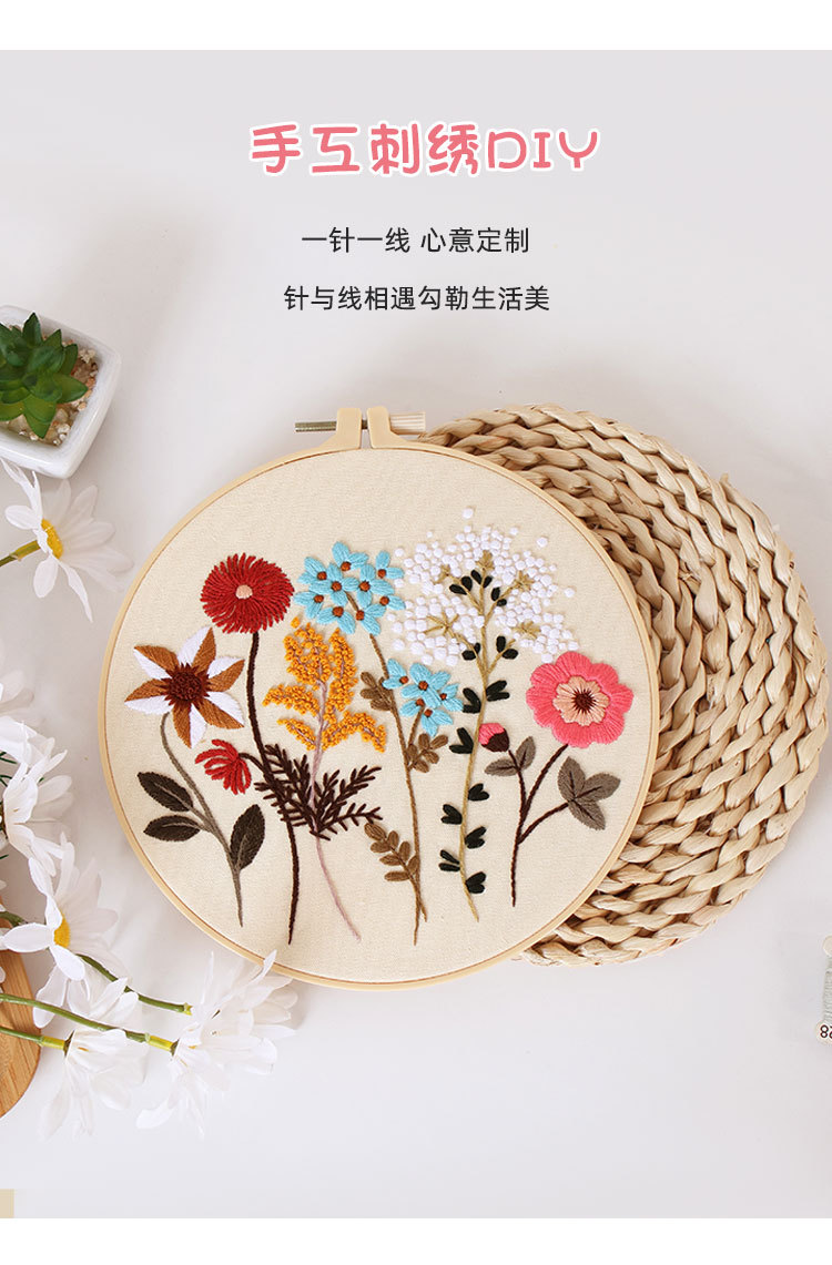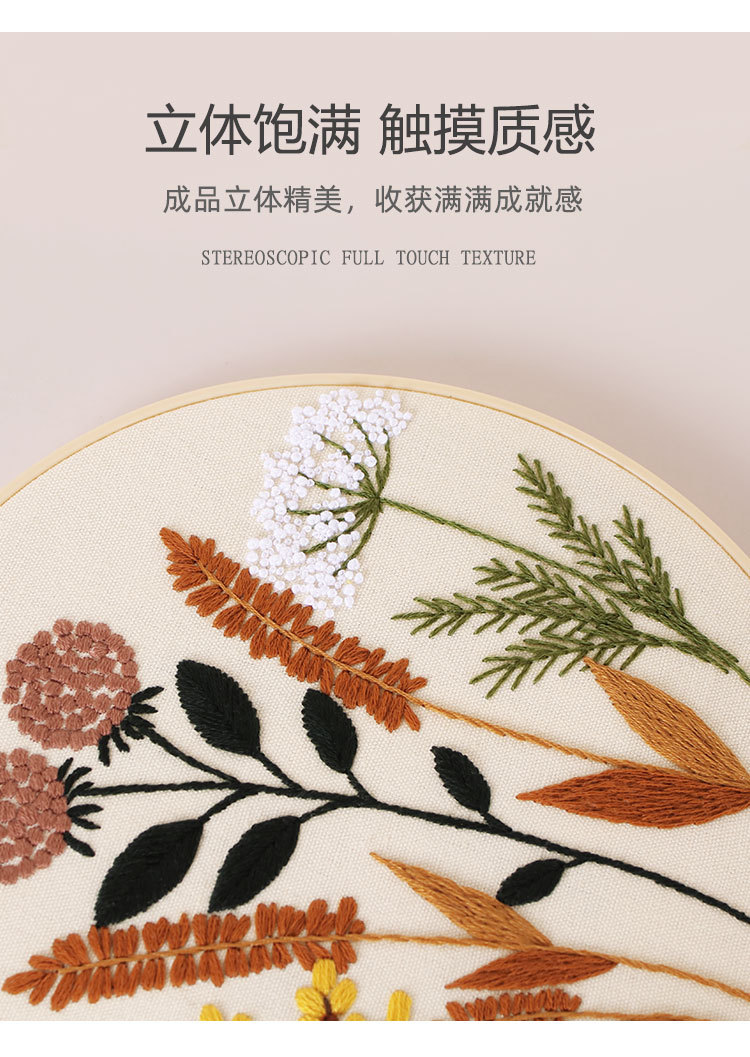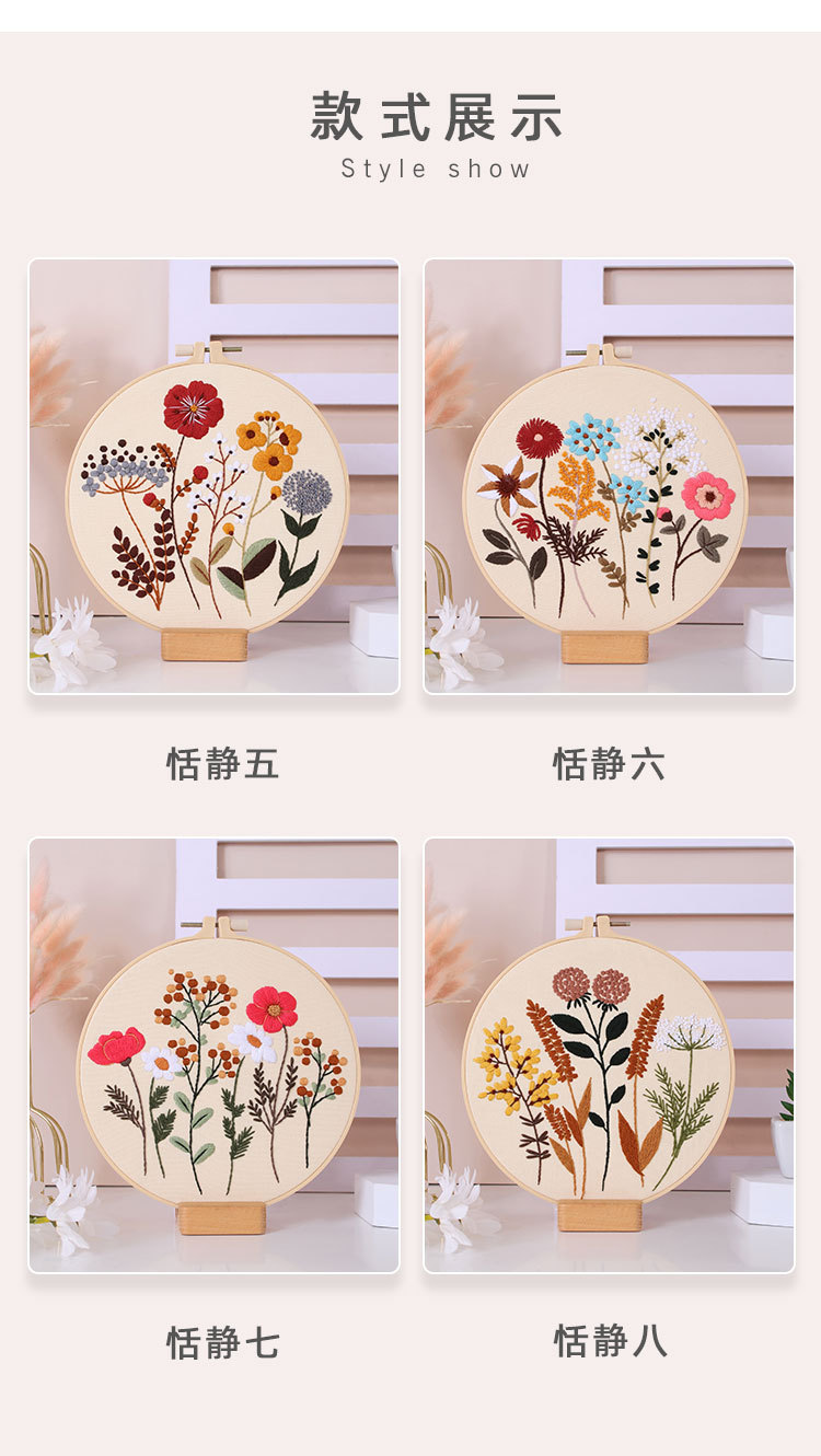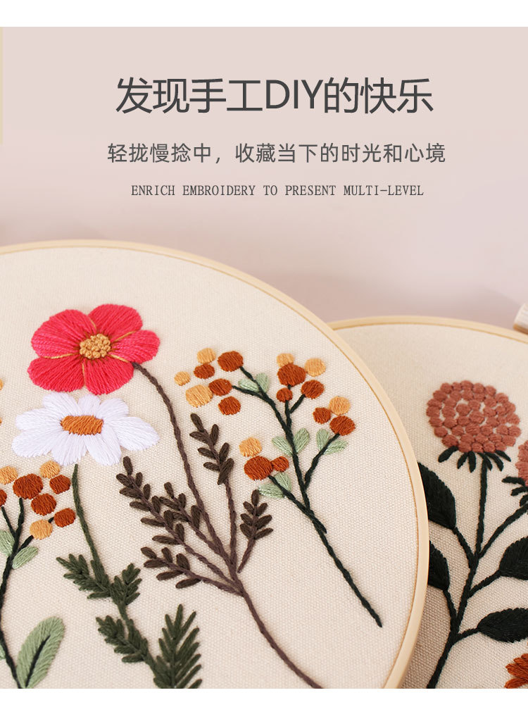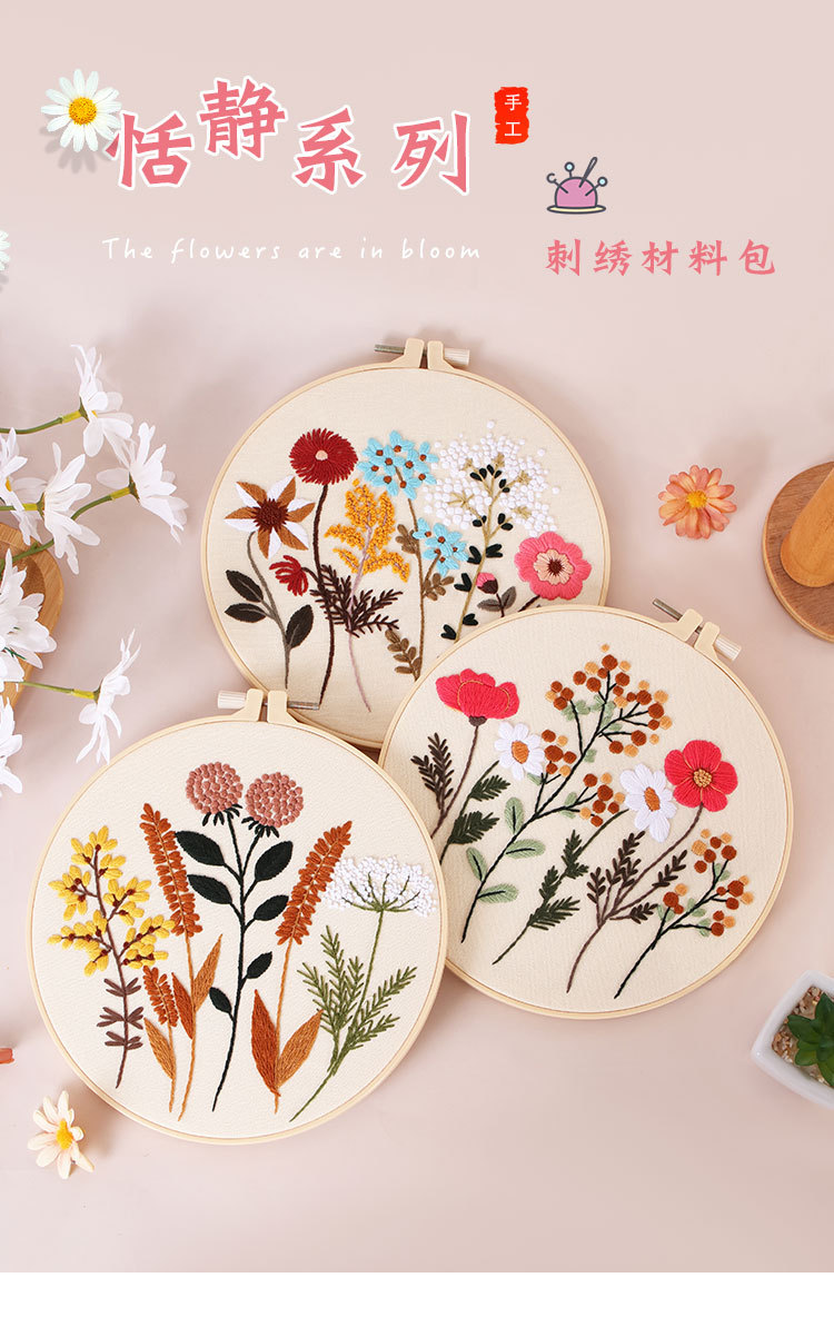 DIY Kit de bordado hecho a mano paquete de material de estilo Europeo tranquilo flores y plantas de tono cálido transfronteriza Inglés Nuevo Original