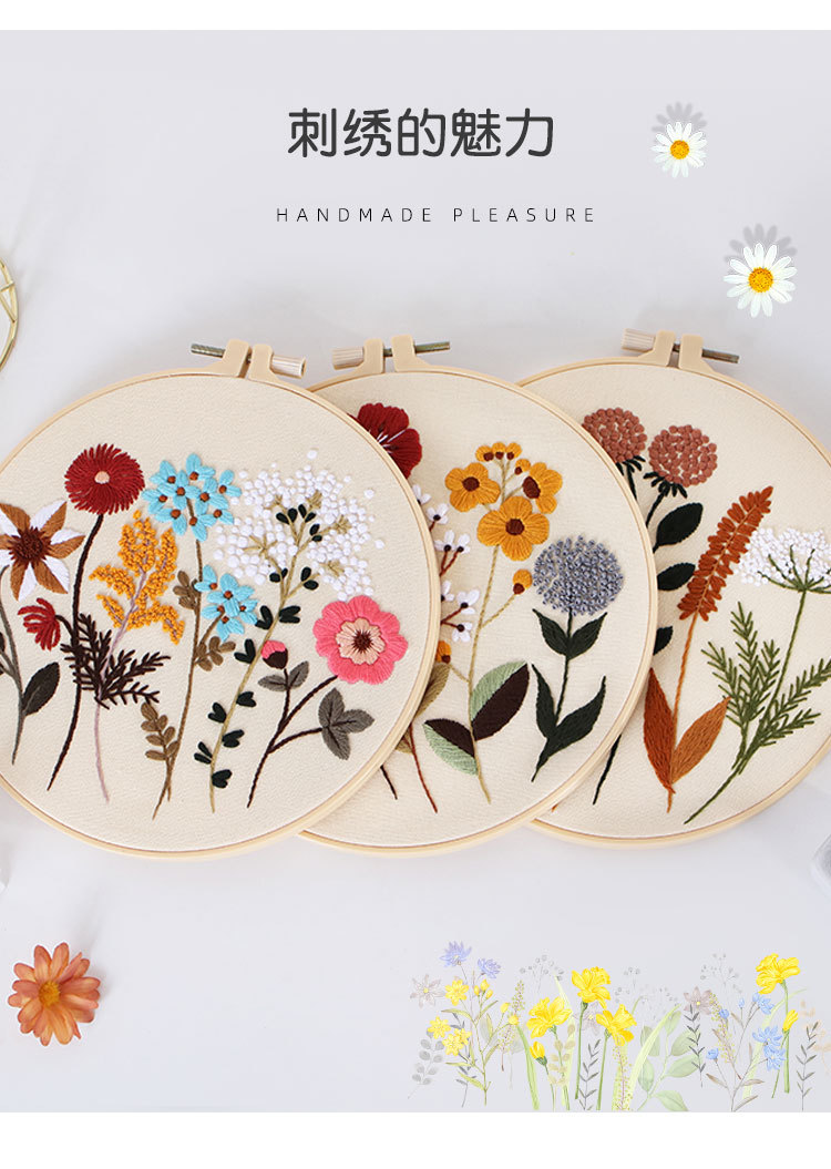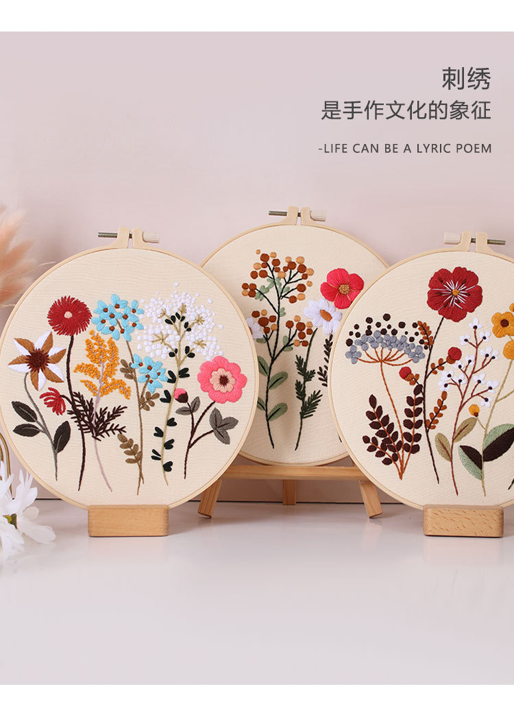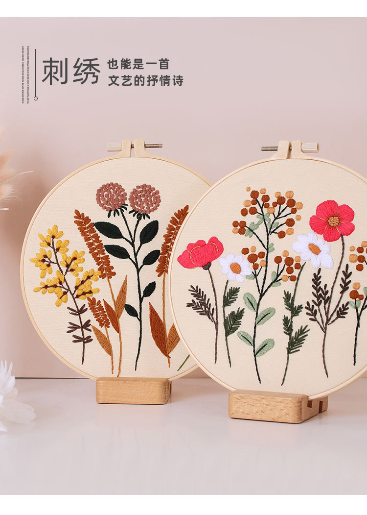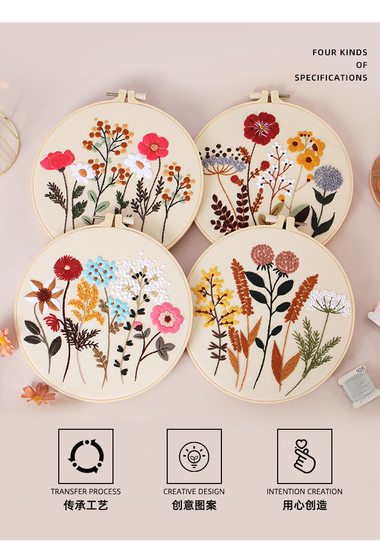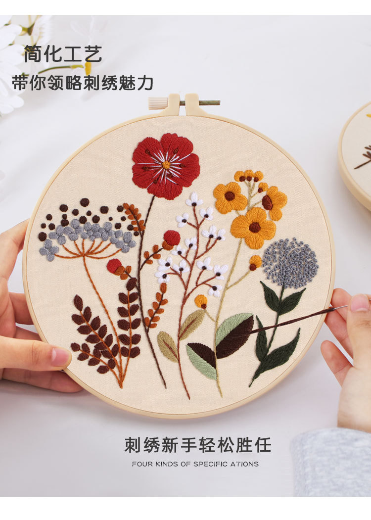 DIY Kit de bordado hecho a mano paquete de material de estilo Europeo tranquilo flores y plantas de tono cálido transfronteriza Inglés Nuevo Original
