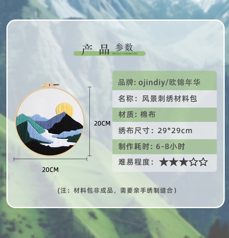 Paquete de materiales + tensión de bordado de bambú 20cm
