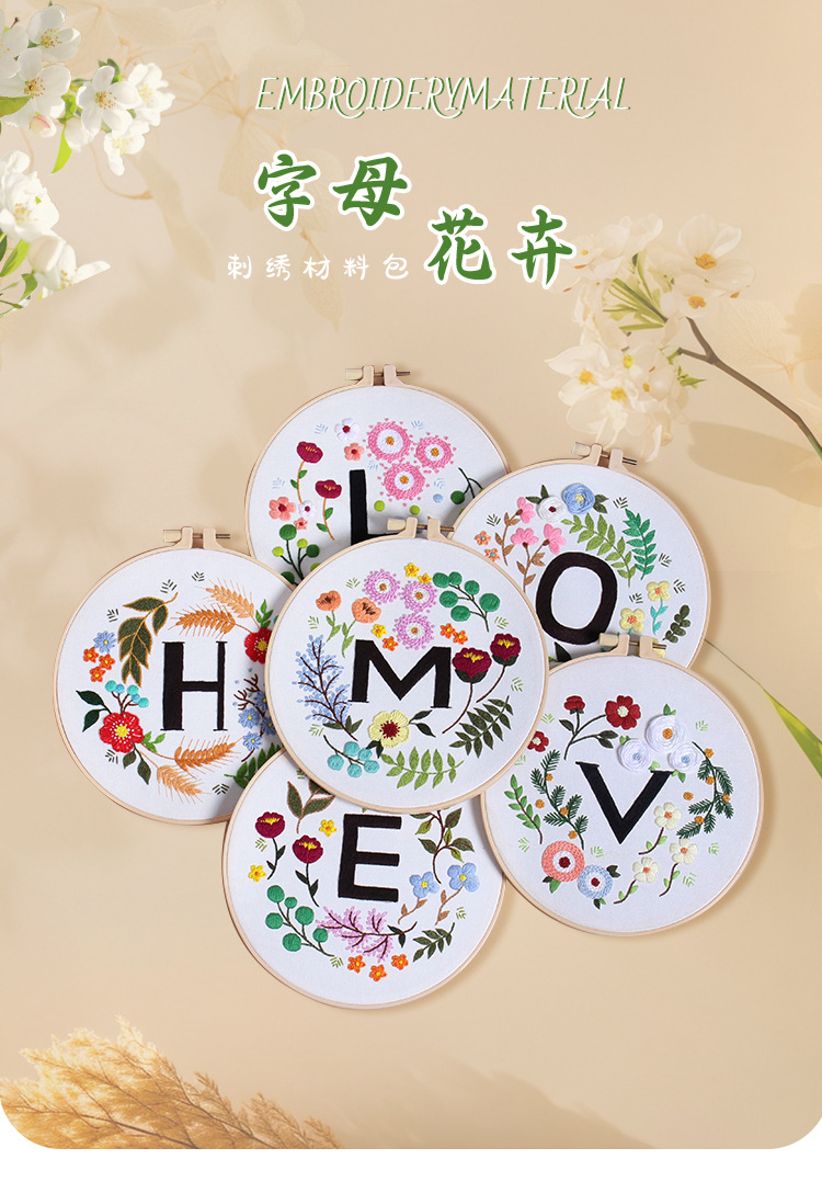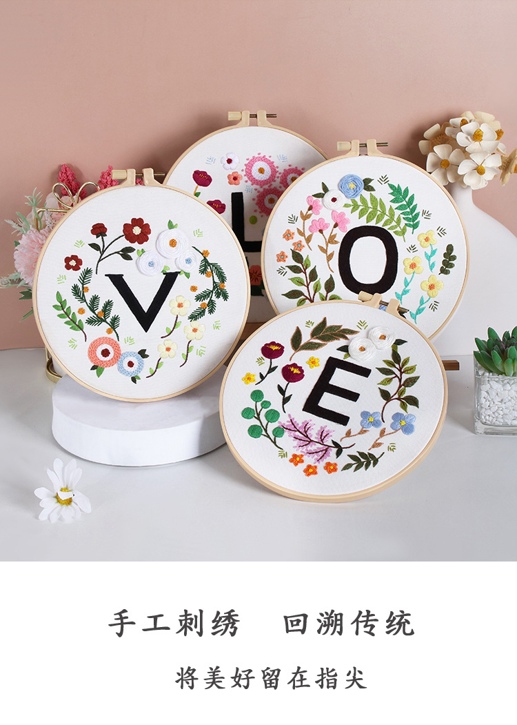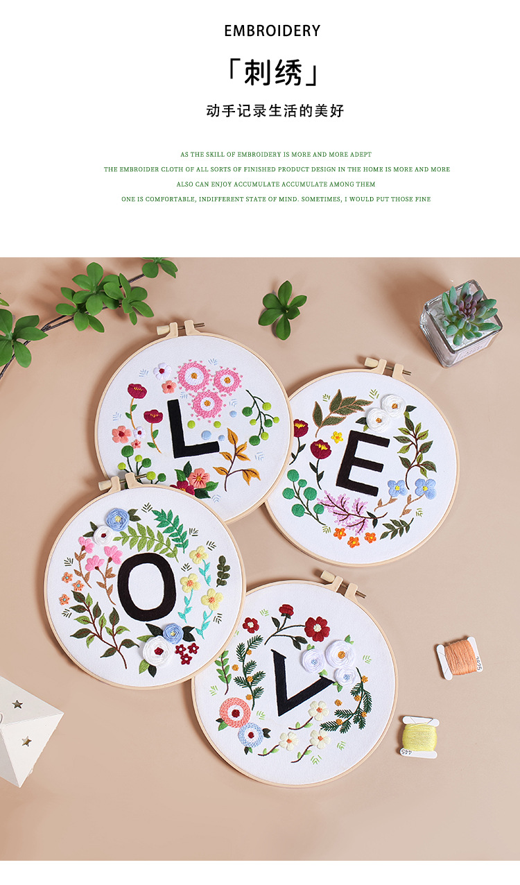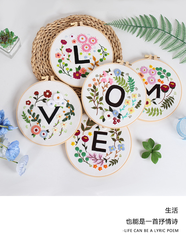 Nuevos productos de amor letras floral home bordado hecho a mano DIY material paquete Amazon venta caliente bordado