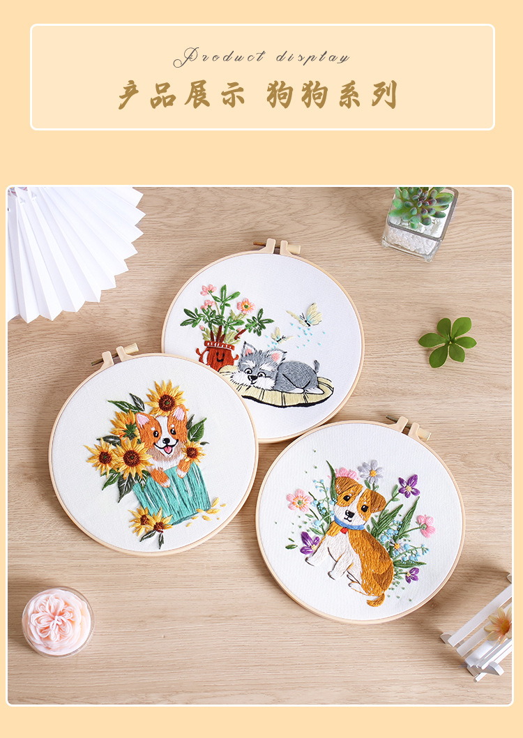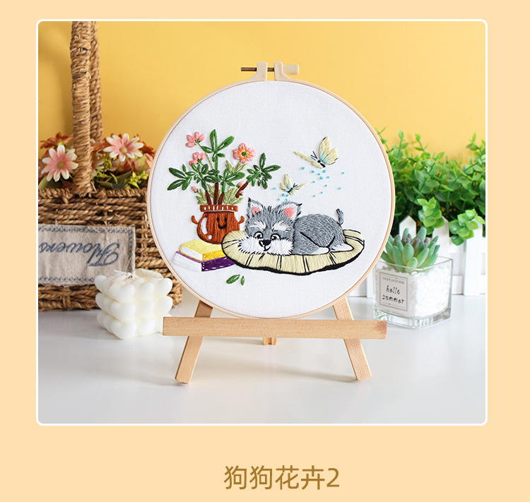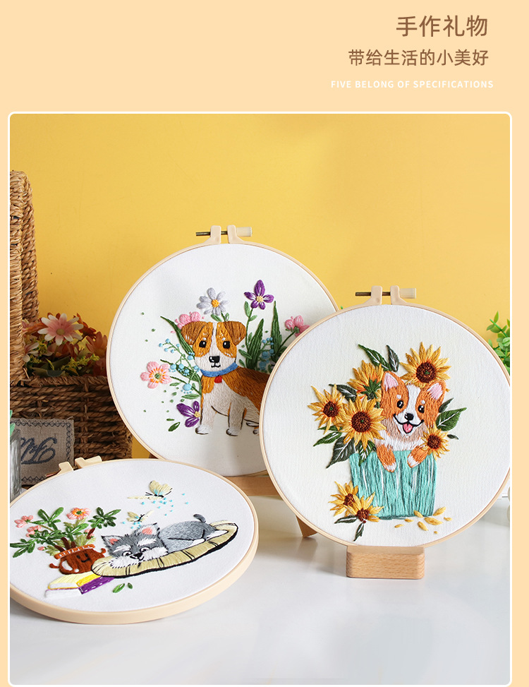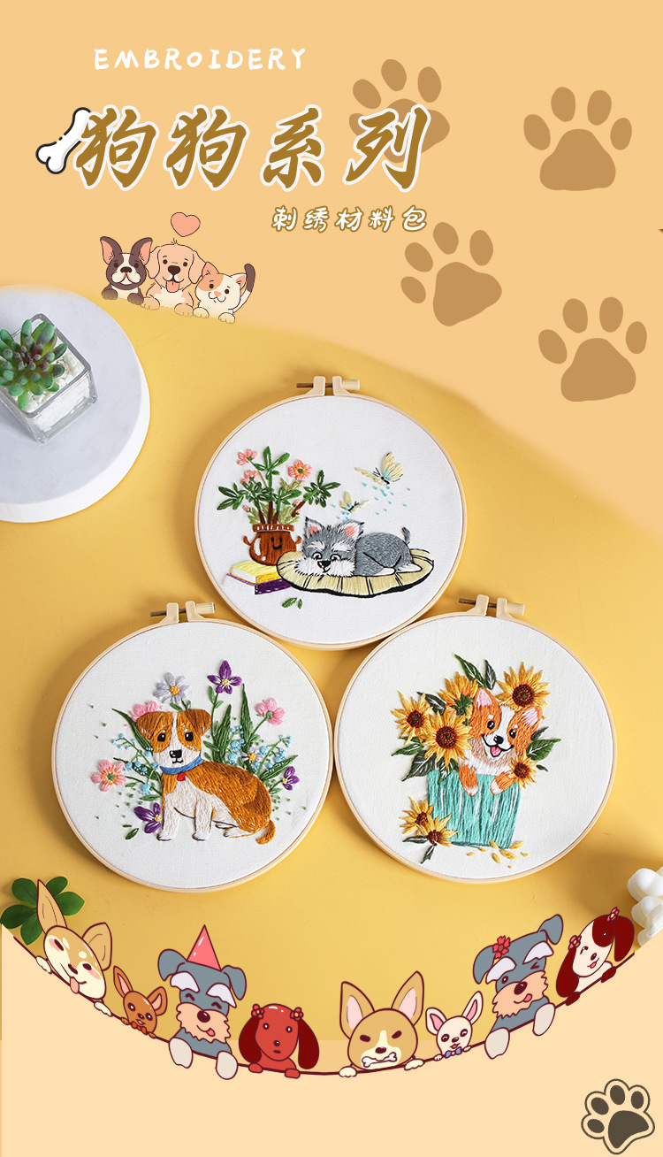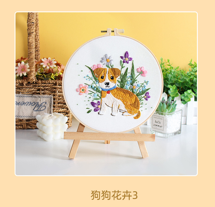 Nuevos productos originales flores de perro bordado a mano DIY material paquete de tela bordado Amazon transfronterizo inglés
