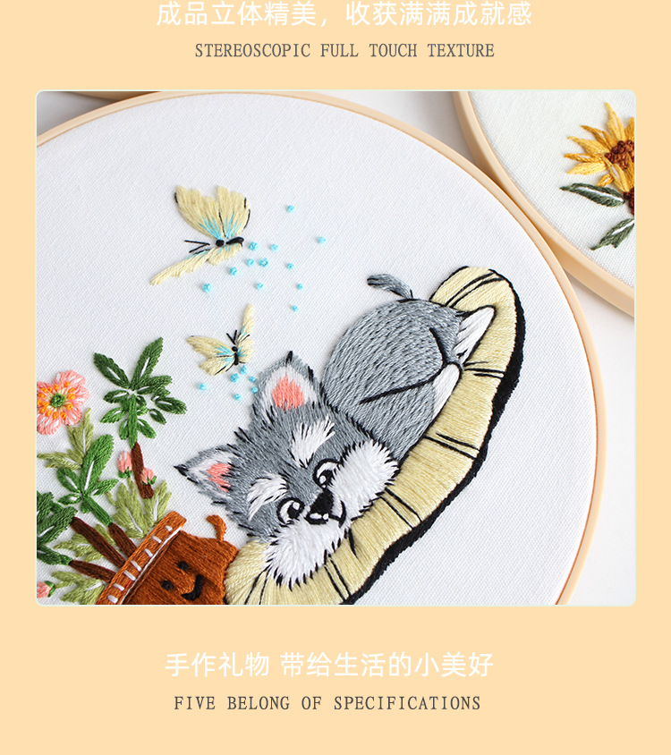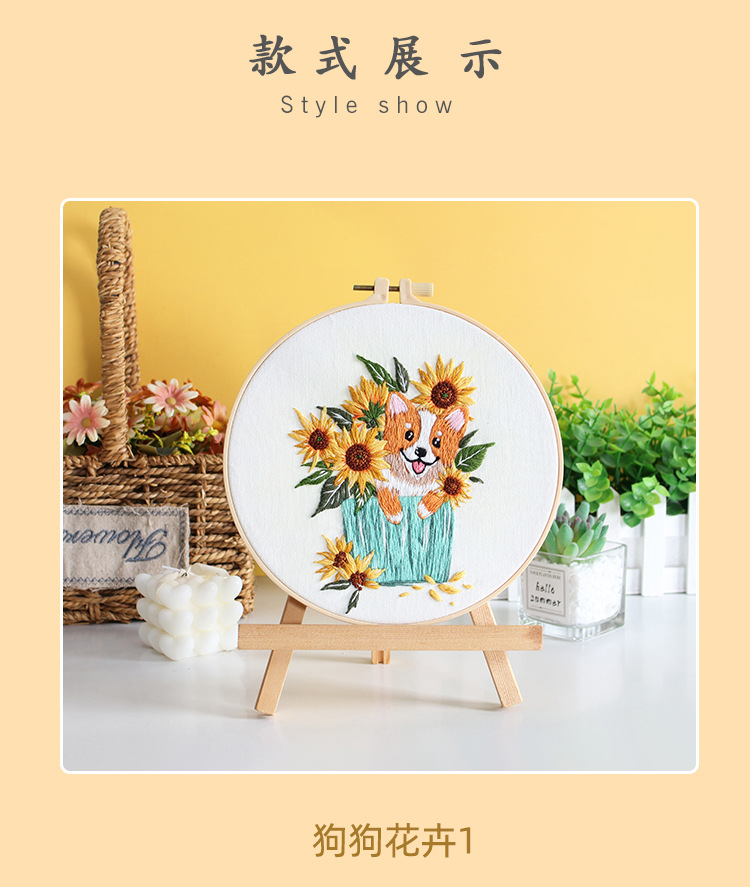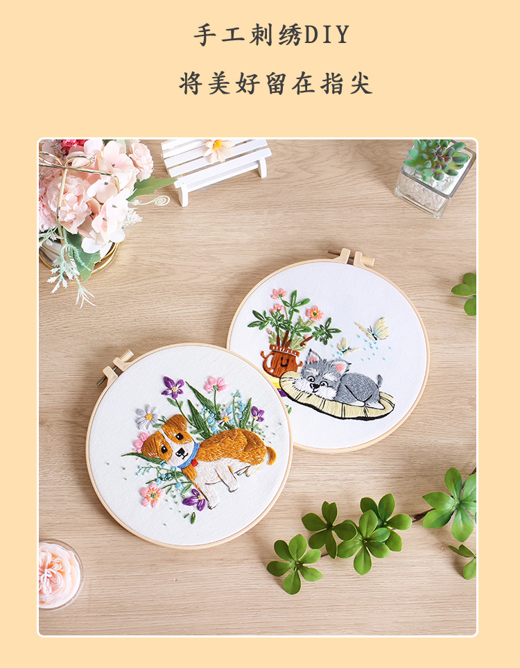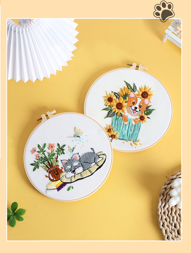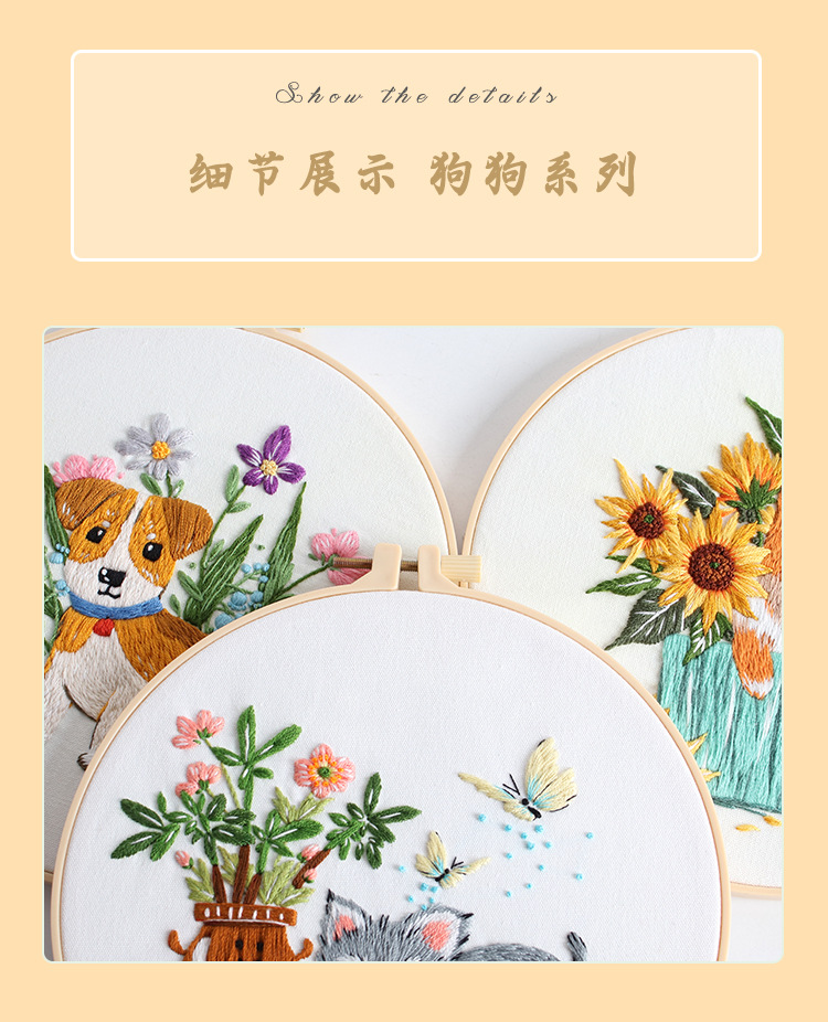 Nuevos productos originales flores de perro bordado a mano DIY material paquete de tela bordado Amazon transfronterizo inglés