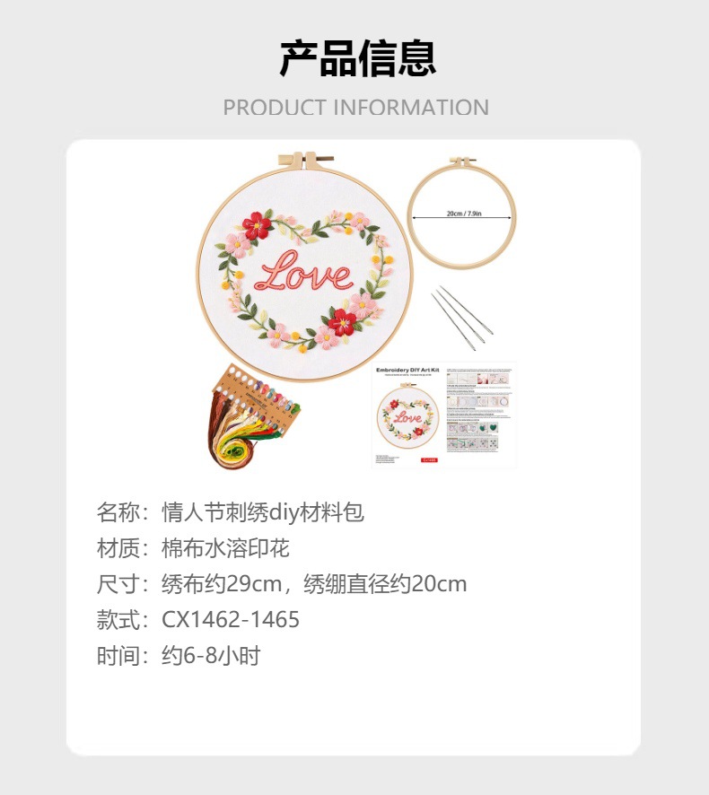 Día de San Valentín pareja bordado floral diy hecha a mano material paquete de agujas nuevos productos originales transfronterizos Inglés