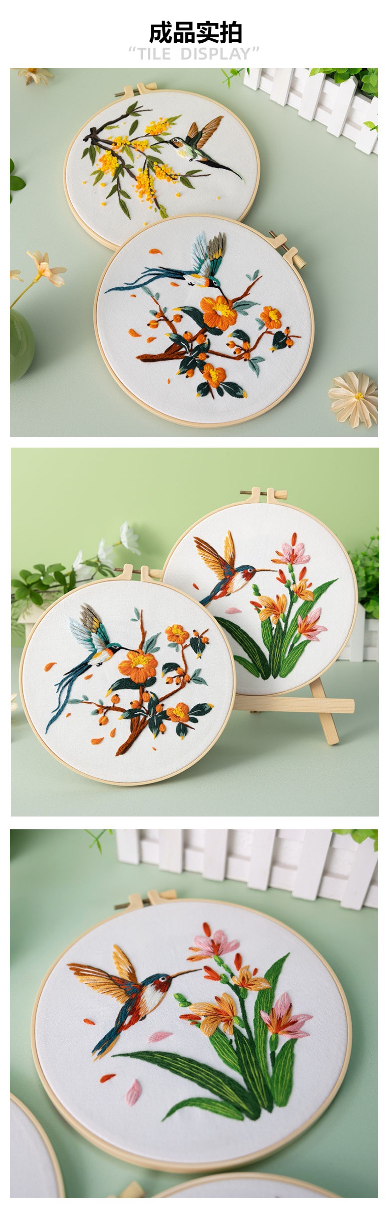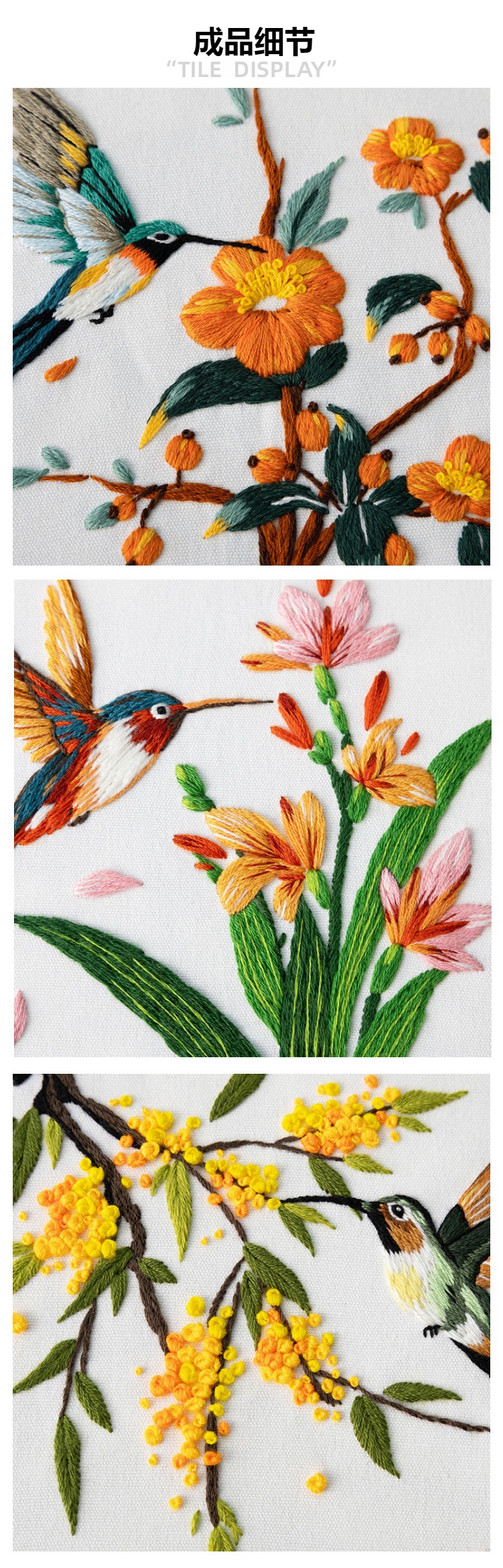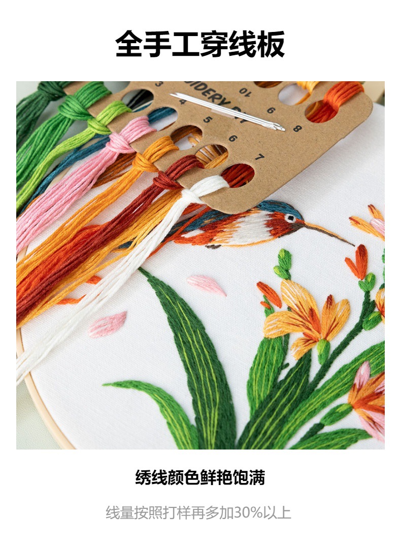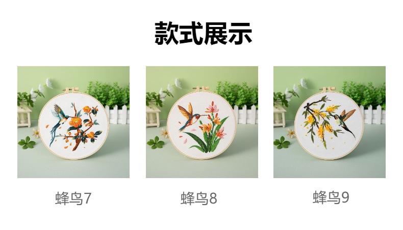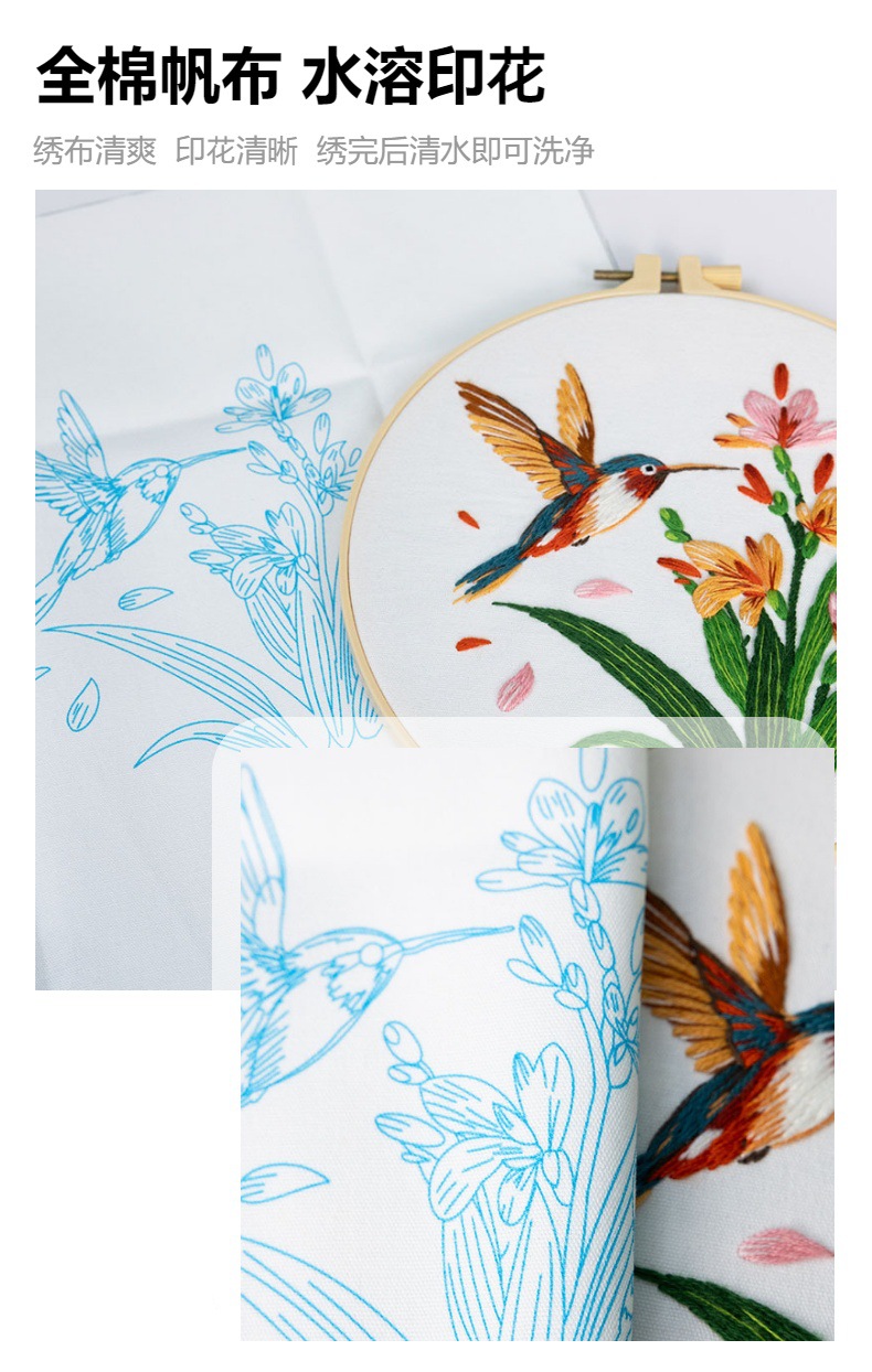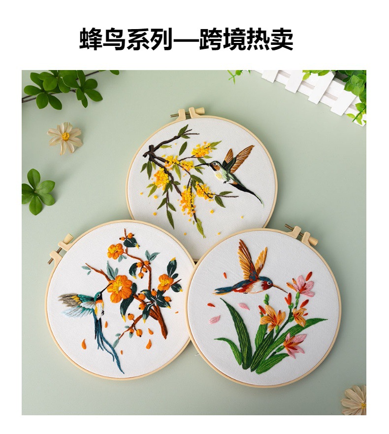Paquete de material de bordado a mano de bricolaje, colibrí, martín pescador, flor, pájaro, pájaro, bordado de tela, nuevo original, inglés transfronterizo