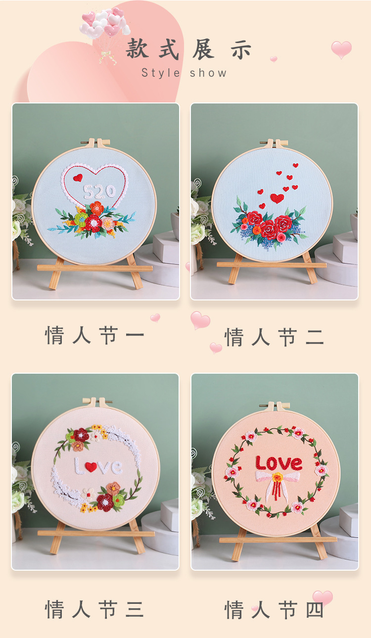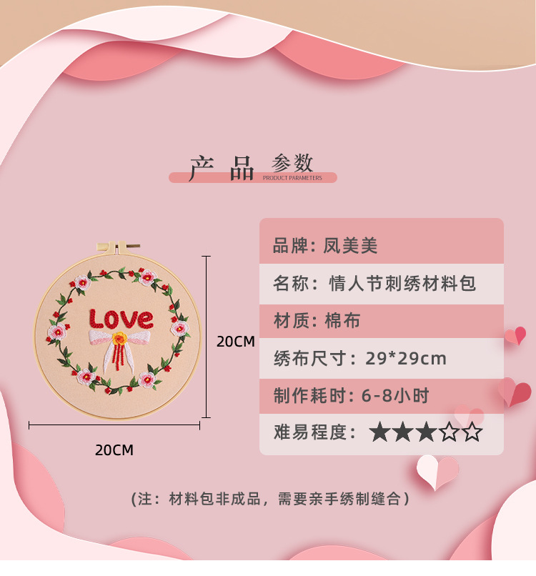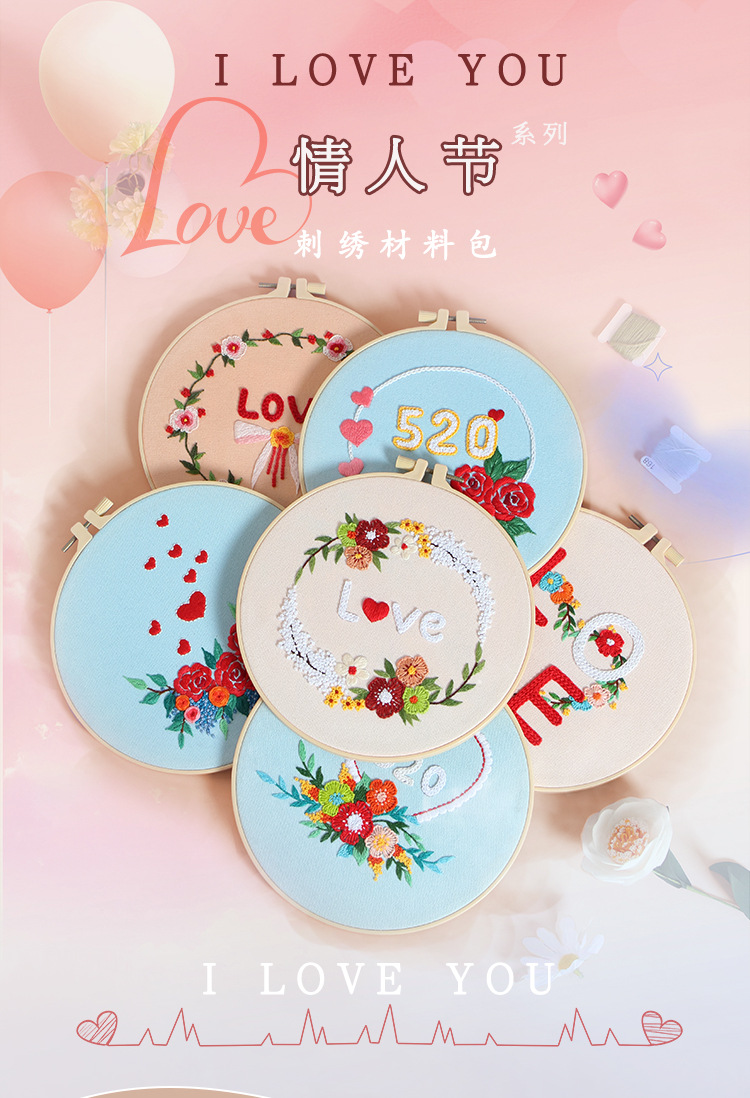 Día de San Valentín nuevo bordado DIY paquete de material hecho a mano Amor Rosa original transfronteriza Inglés