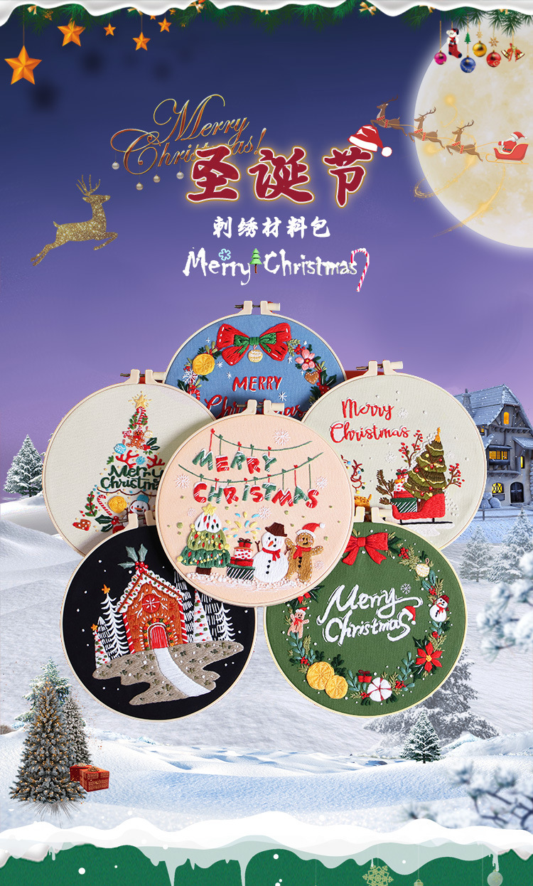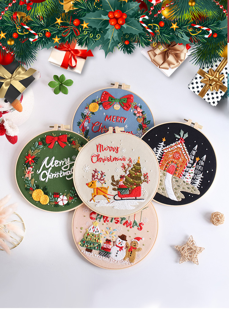 Nuevo producto 2024 Feliz Navidad bordado Amazon venta caliente bordado a mano DIY paquete de material