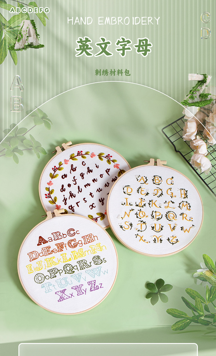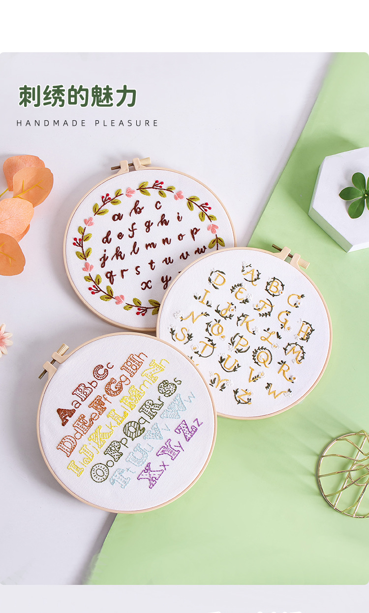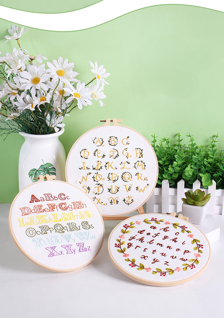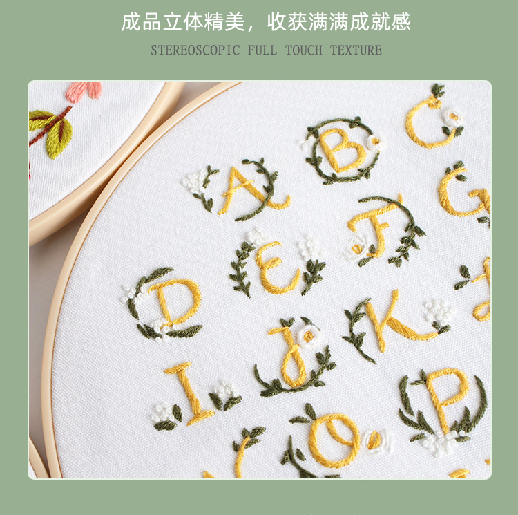 Original nuevo paquete de material de bordado hecho a mano bricolaje letras inglesas texto arte fuente tela bordado inglés