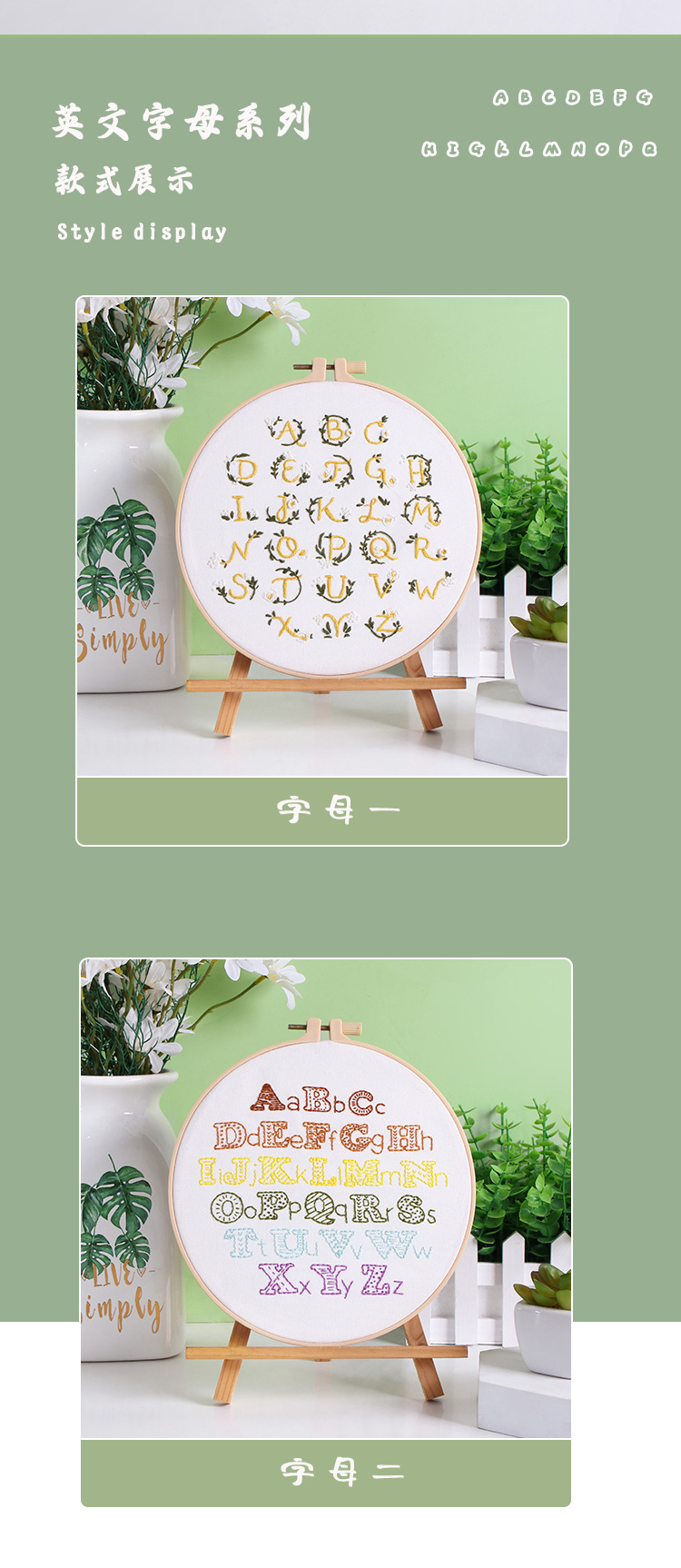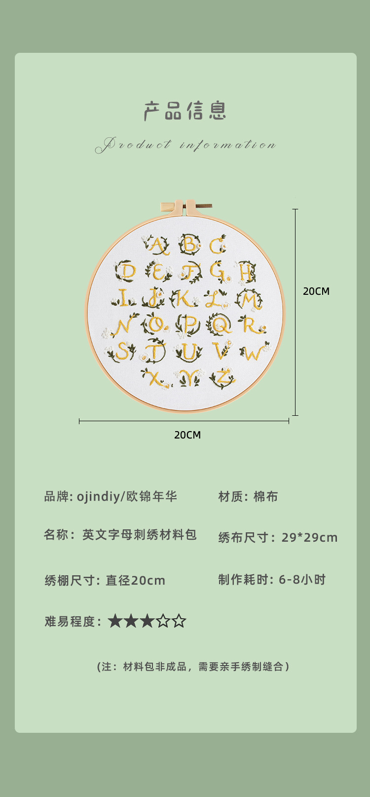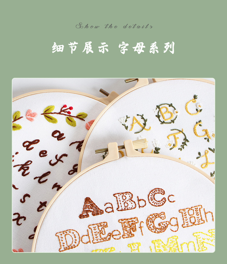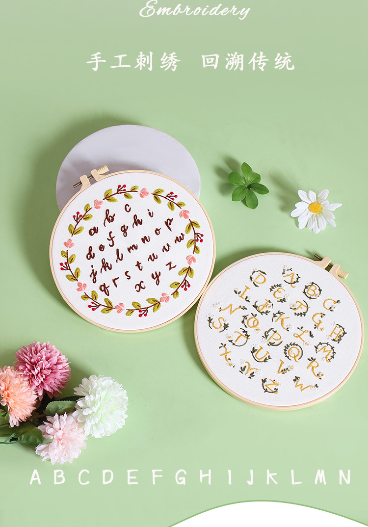 Original nuevo paquete de material de bordado hecho a mano bricolaje letras inglesas texto arte fuente tela bordado inglés