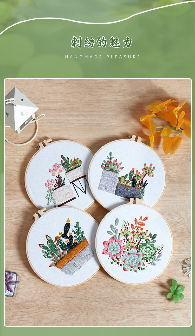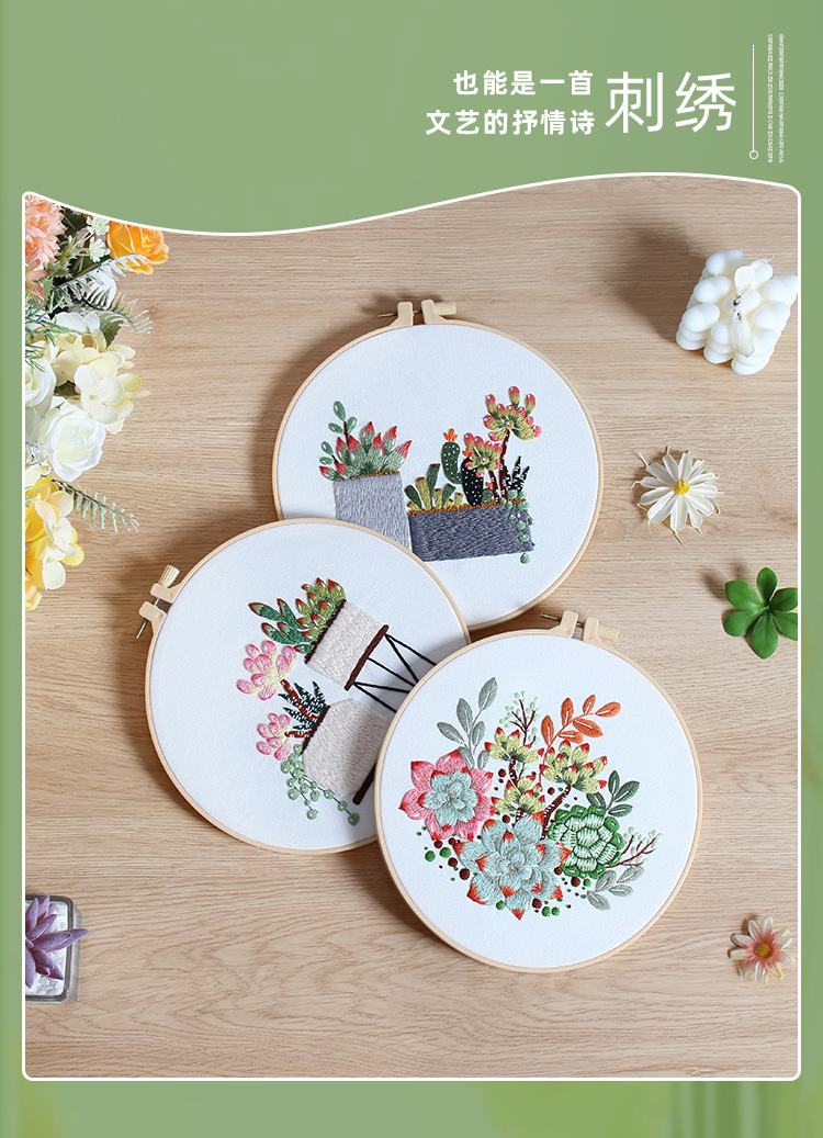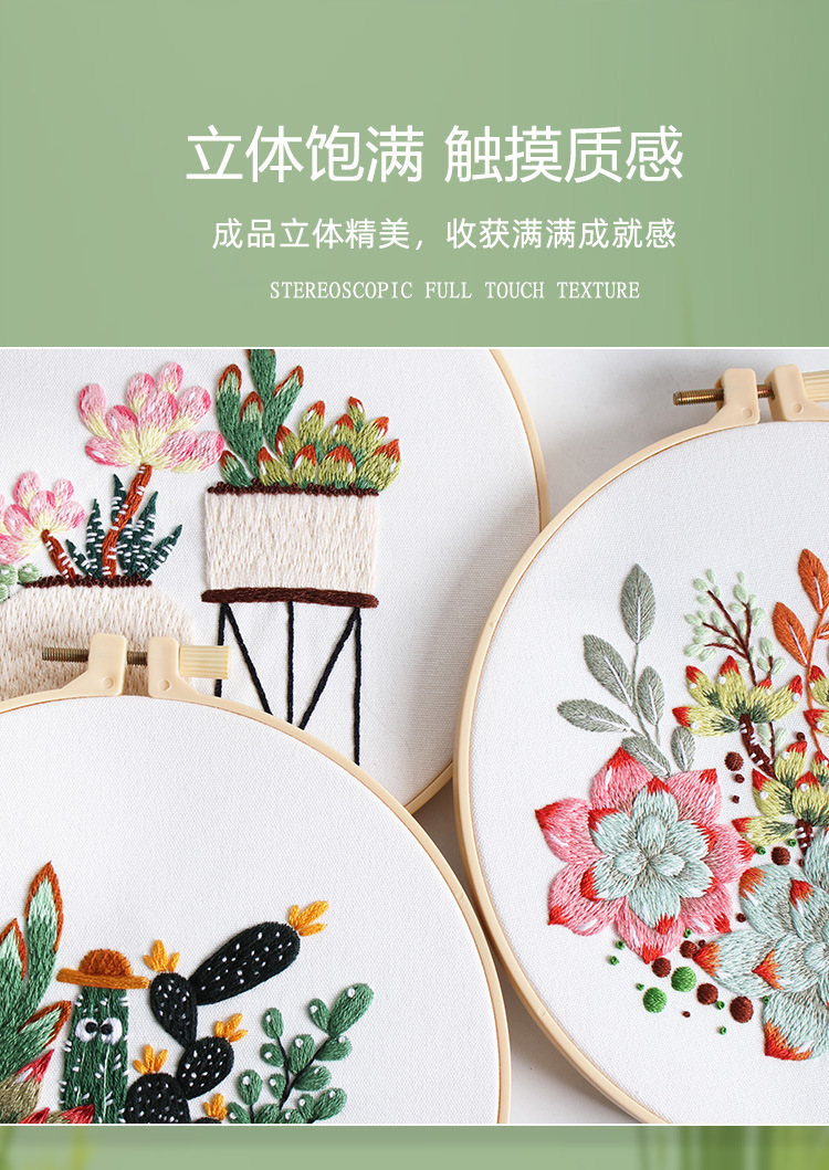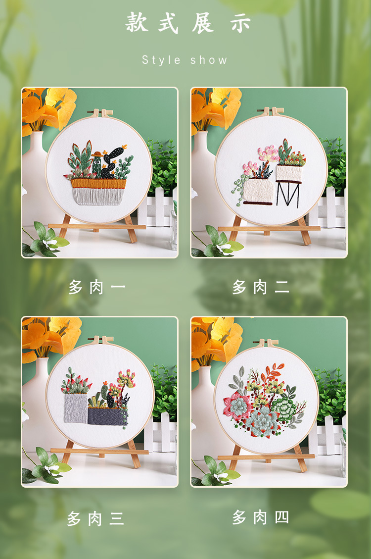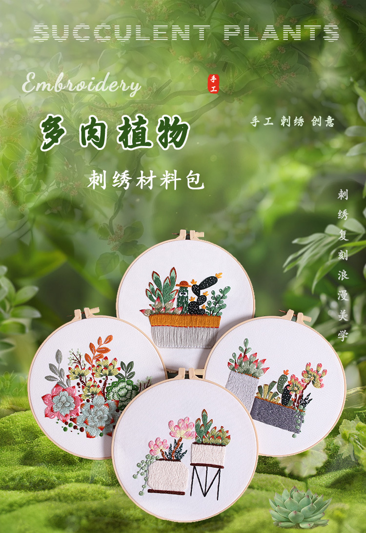 Nuevos productos de material de bordado a mano paquete europeo tridimensional diyembroidery Amazon venta caliente plantas suculentas