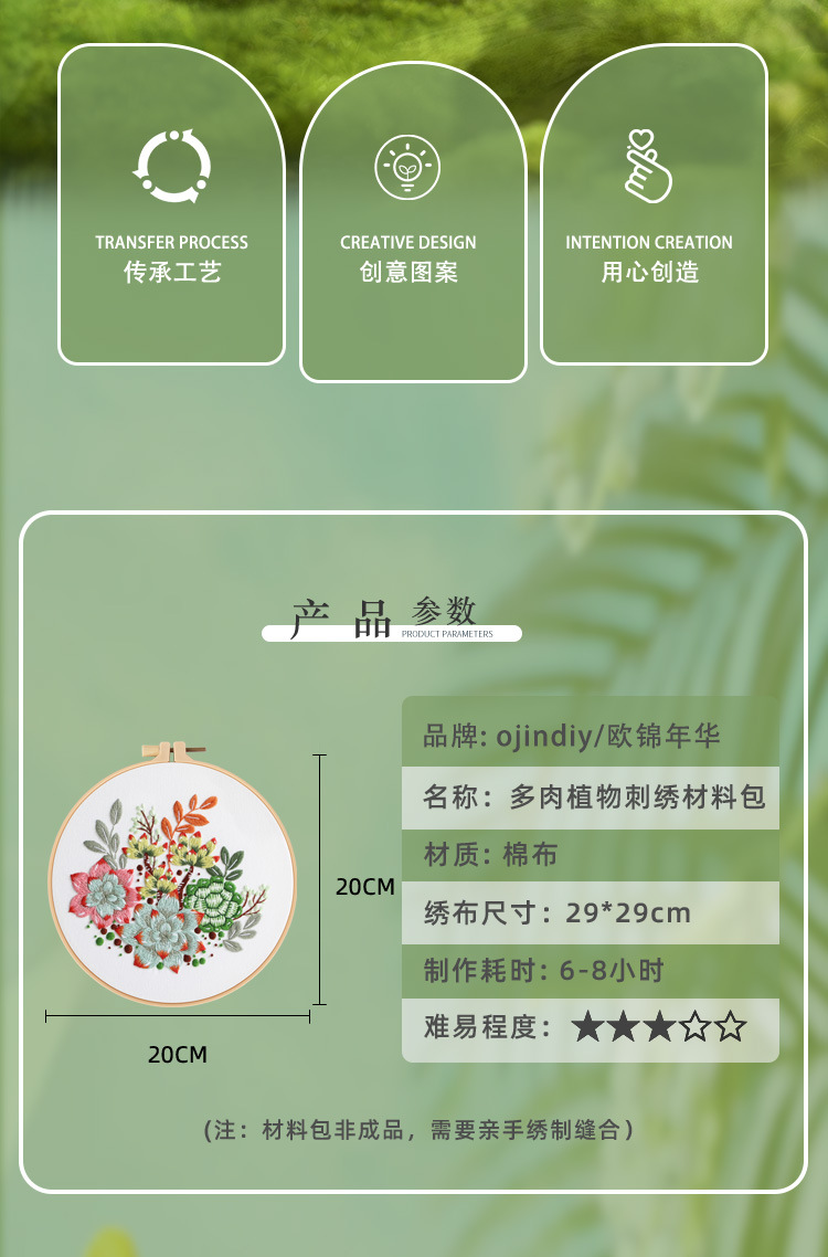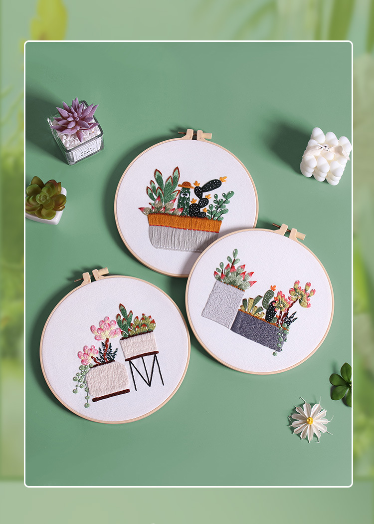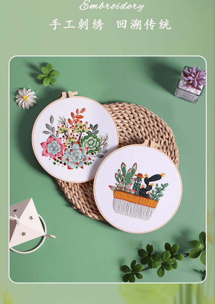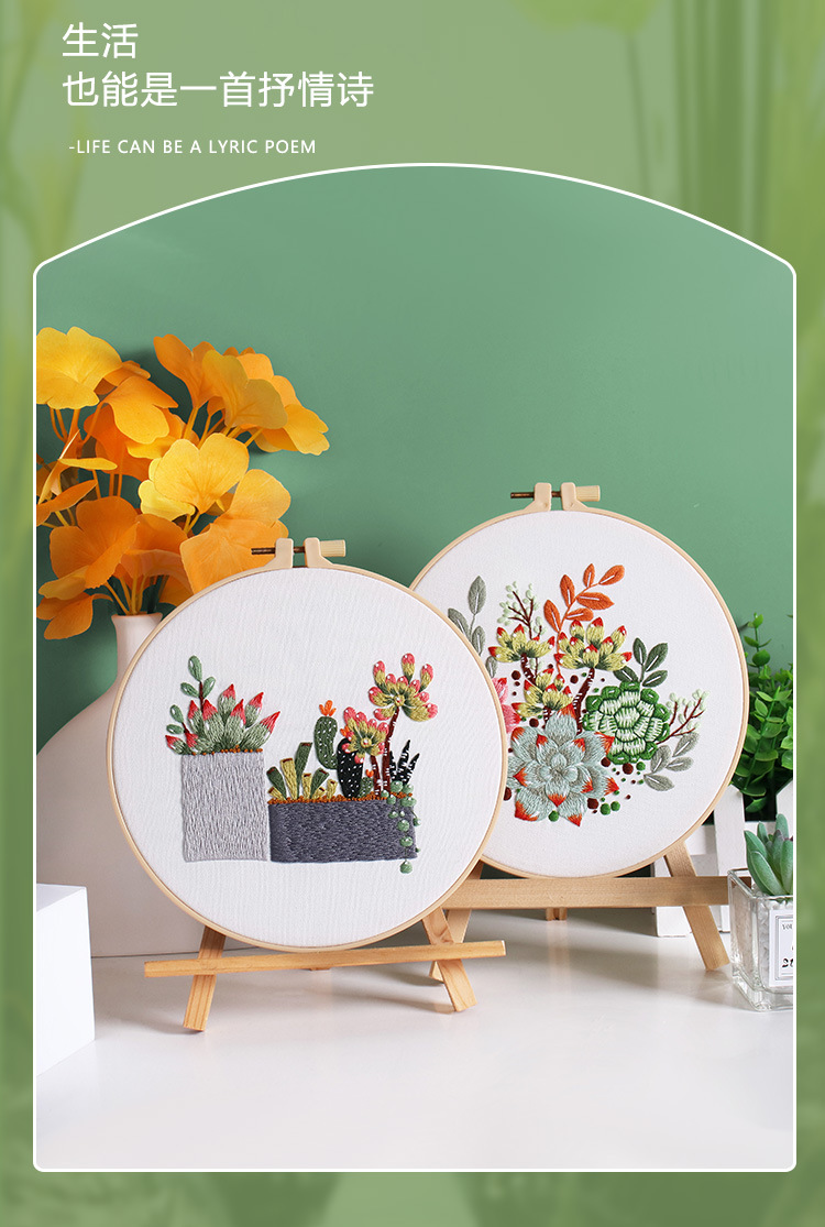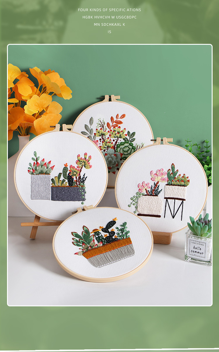 Nuevos productos de material de bordado a mano paquete europeo tridimensional diyembroidery Amazon venta caliente plantas suculentas