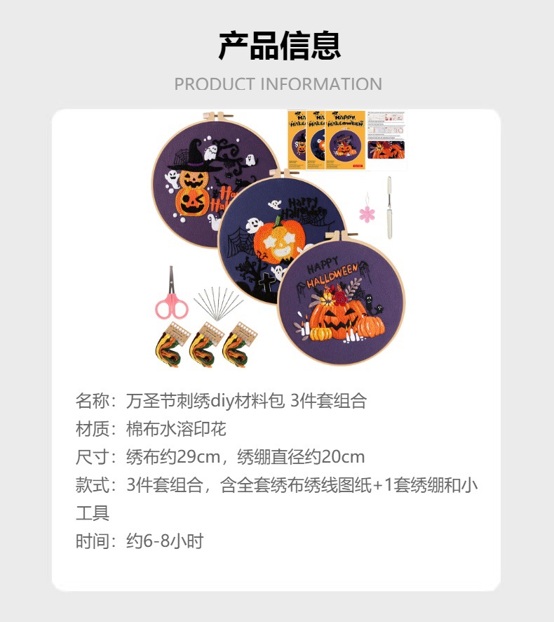 Original nuevo paquete de materiales bordados DIY hechos a mano 2025 Halloween calabaza gato murciélago transfronterizo inglés