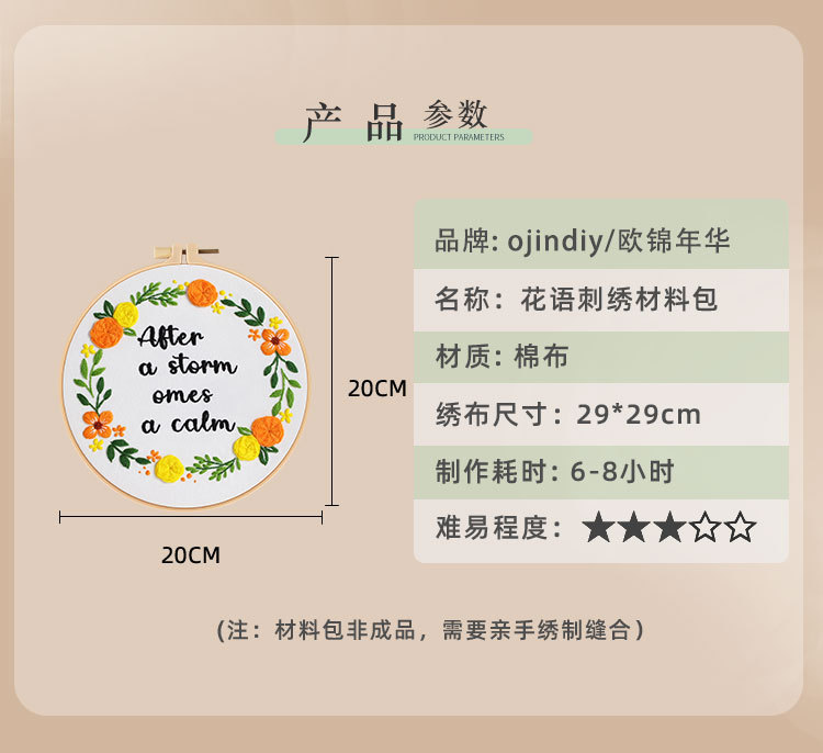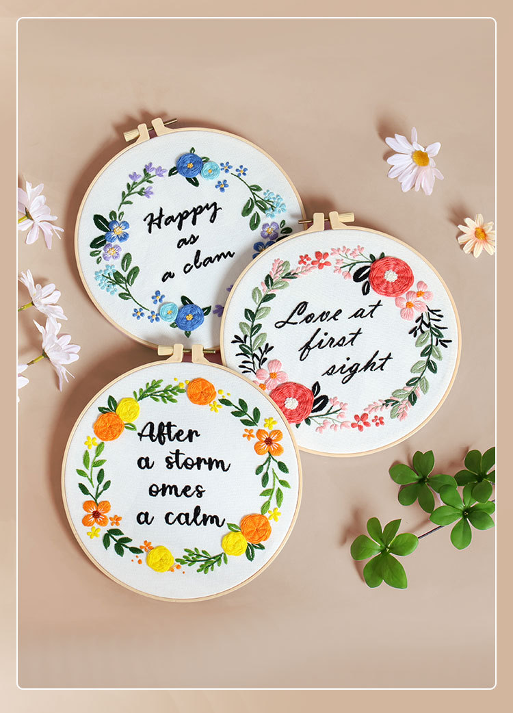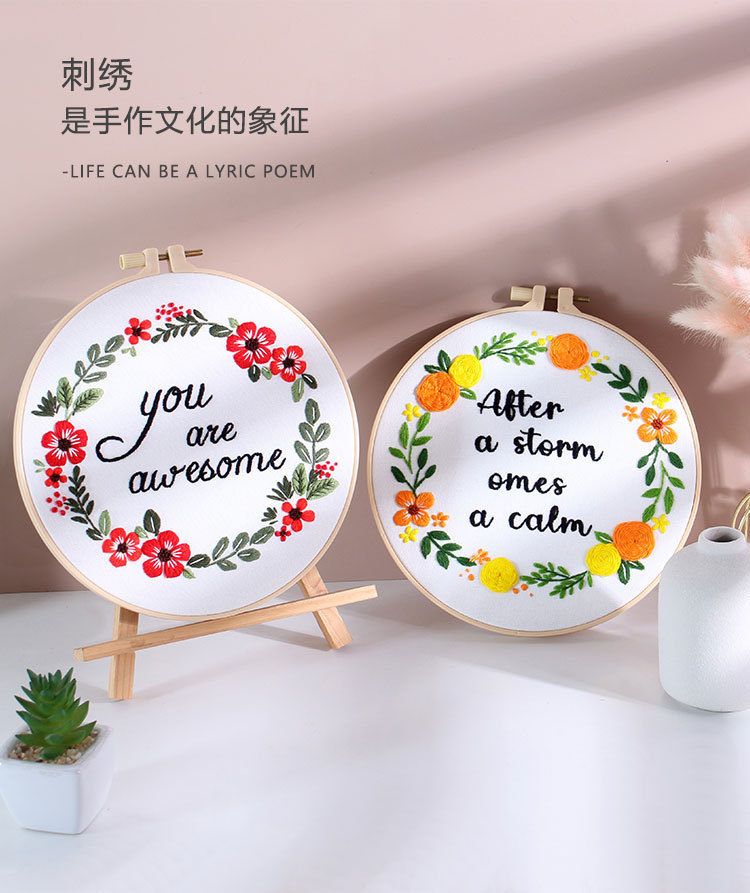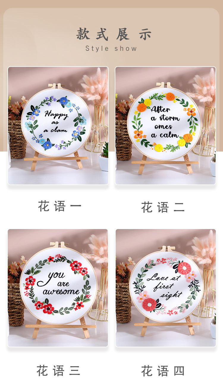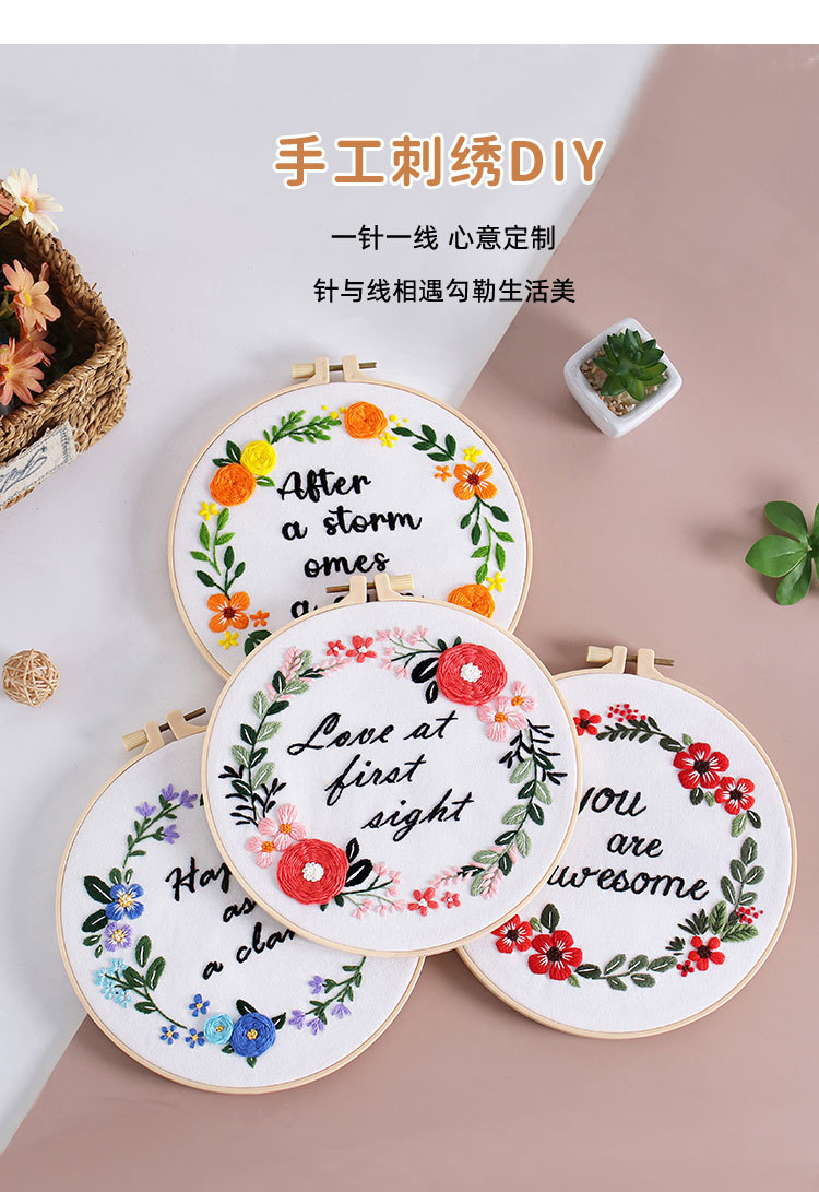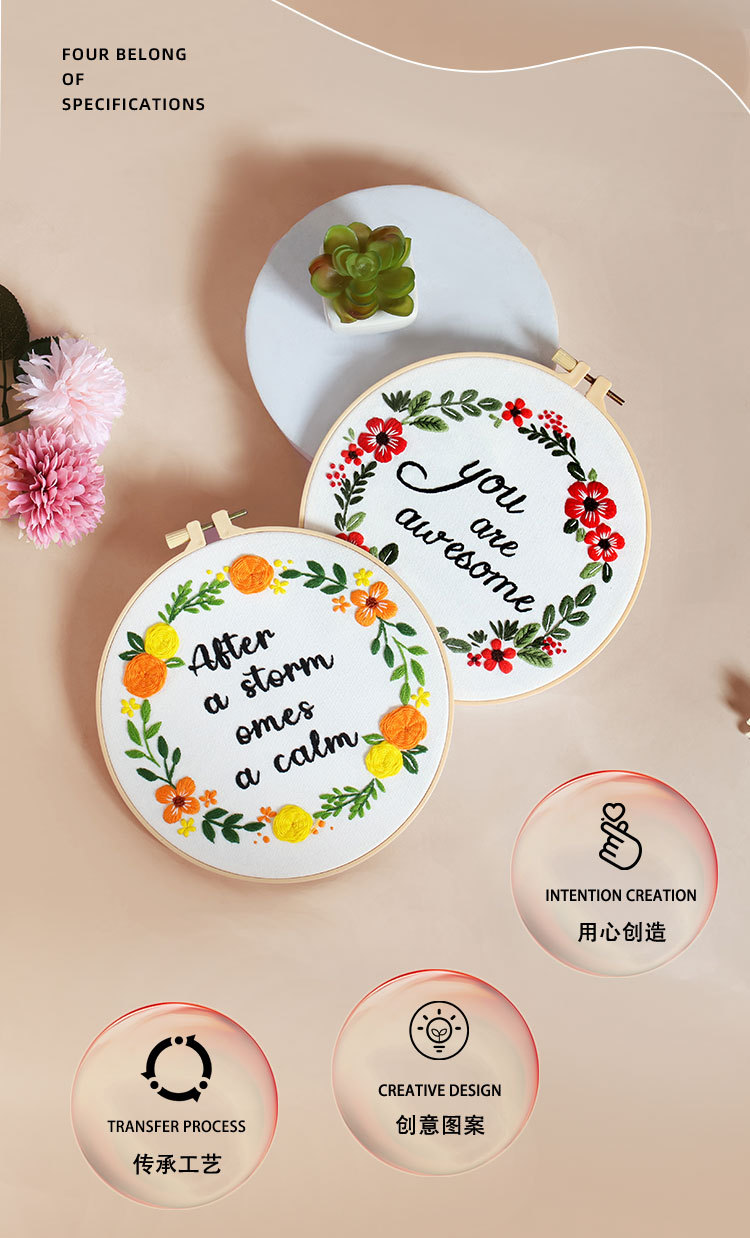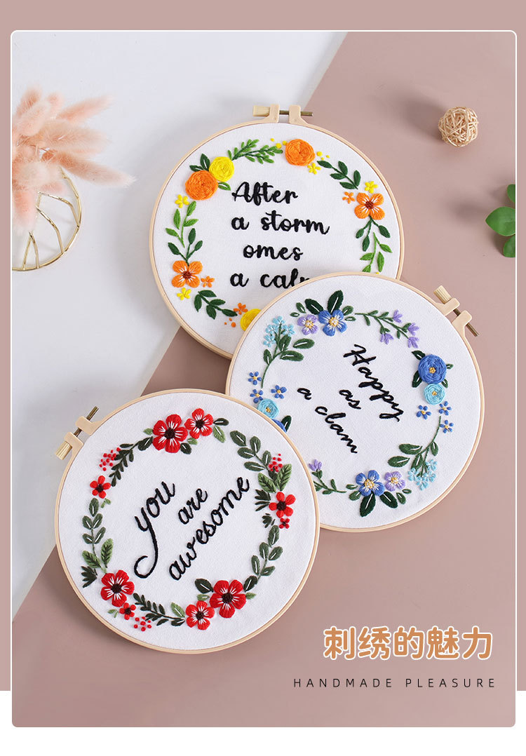 Nuevo paquete de materiales de bordado original DIY cálida flor flor de flores letras inspiradoras transfronterizas en inglés
