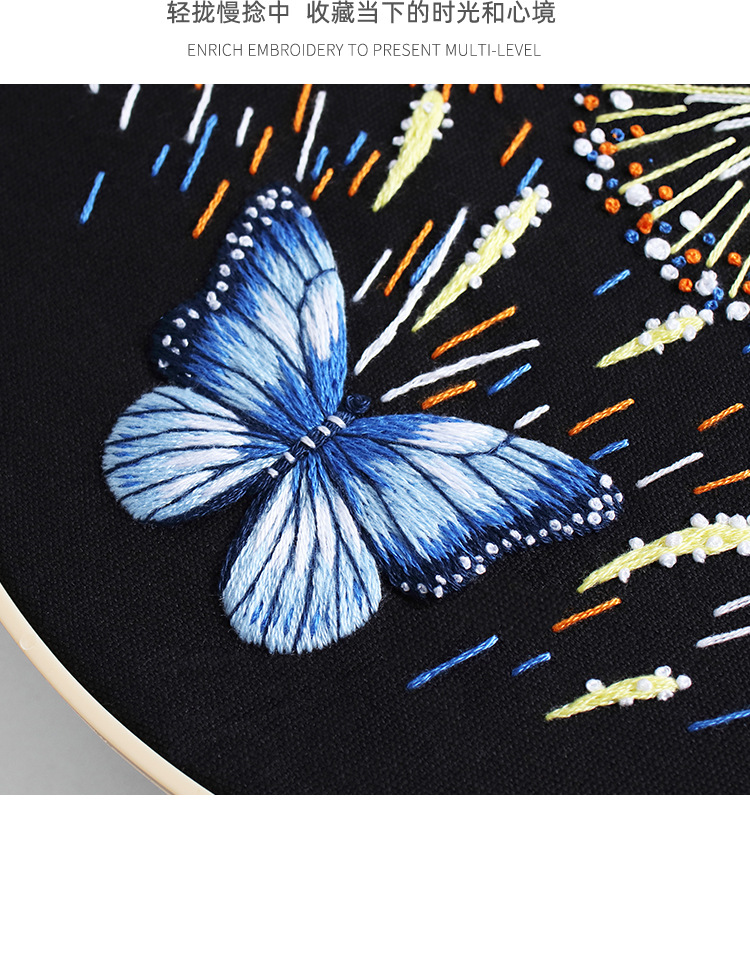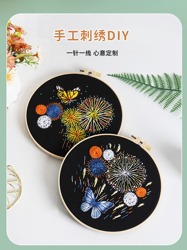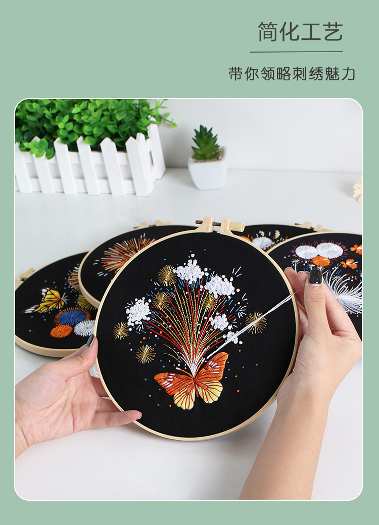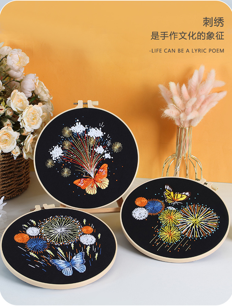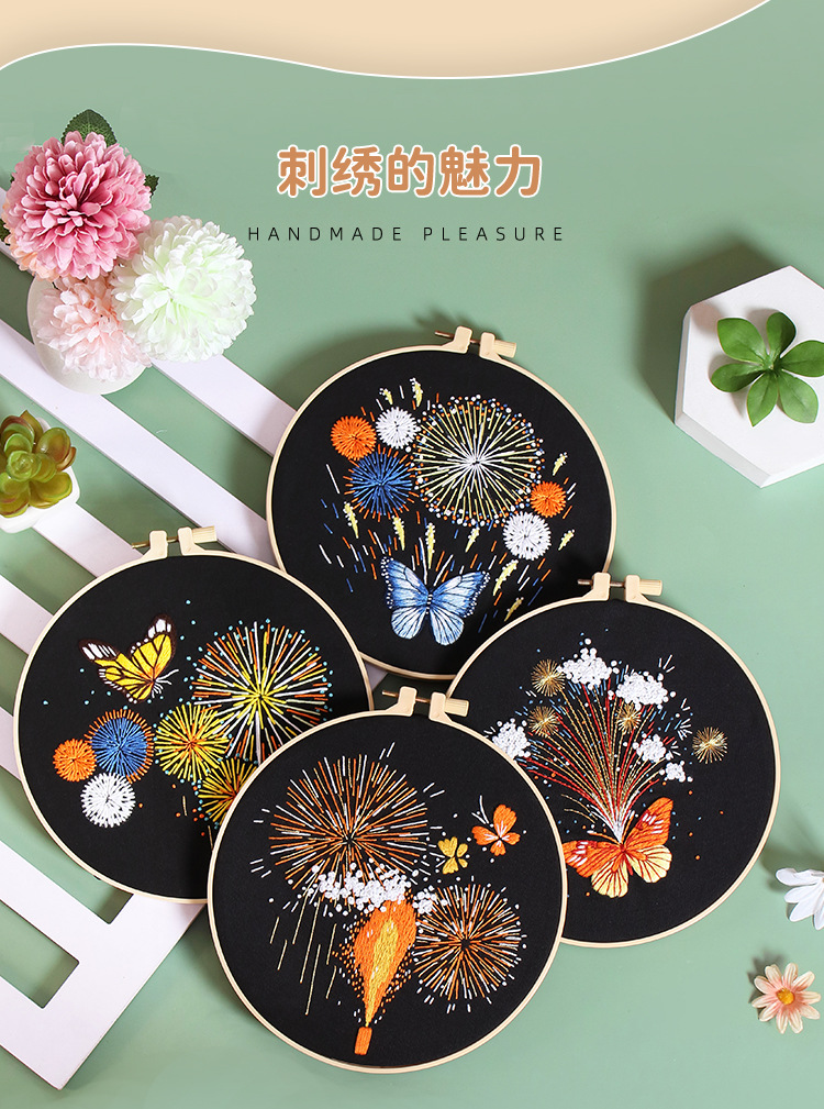 Nuevo original hecho a mano bordado diy paquete de material magnífico fuegos artificiales mariposa fábrica para transfronterizo inglés