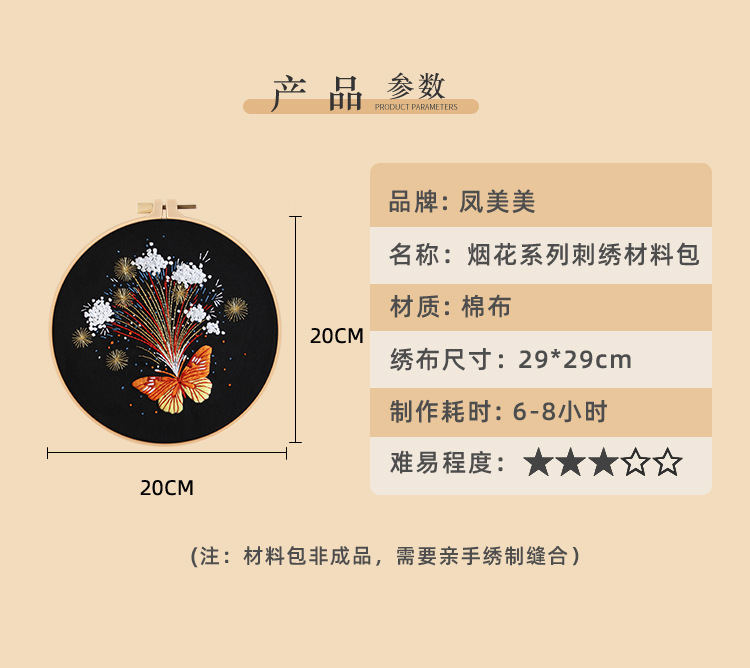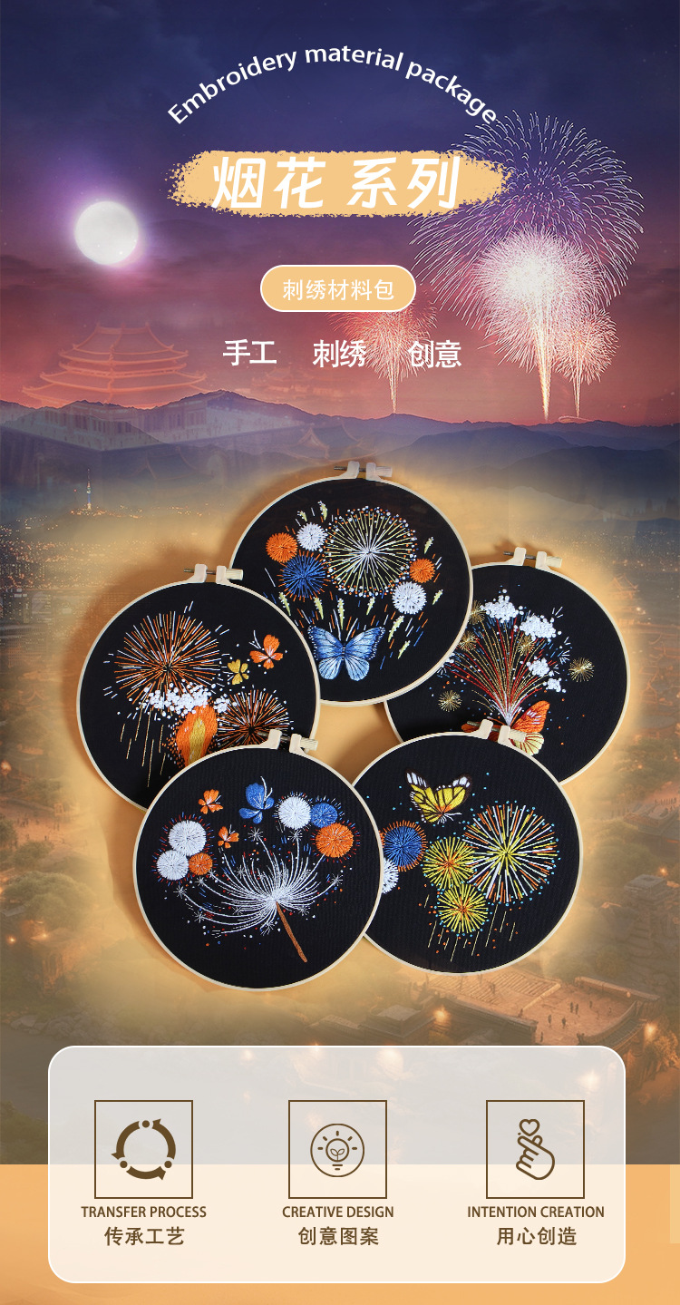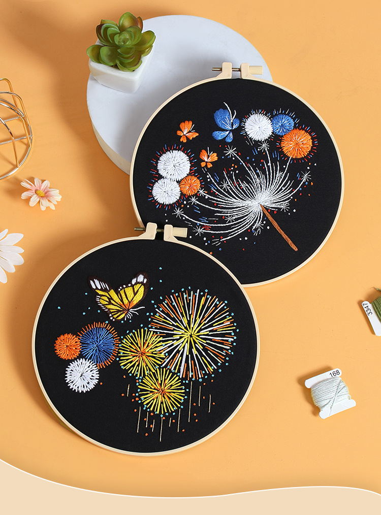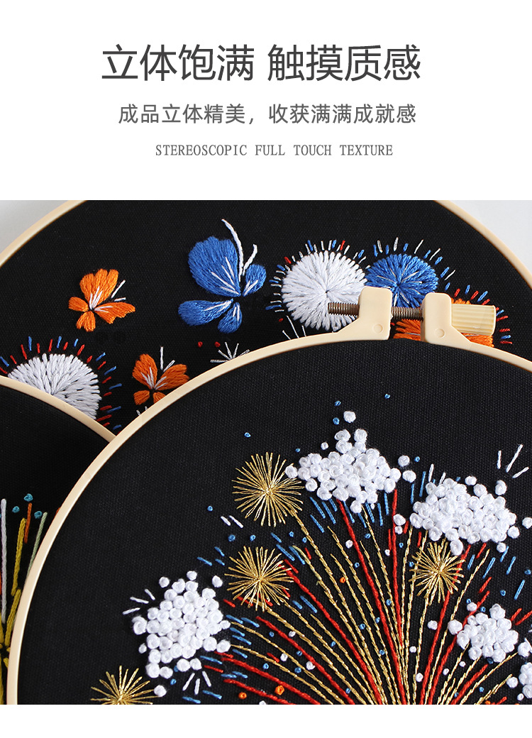 Nuevo original hecho a mano bordado diy paquete de material magnífico fuegos artificiales mariposa fábrica para transfronterizo inglés