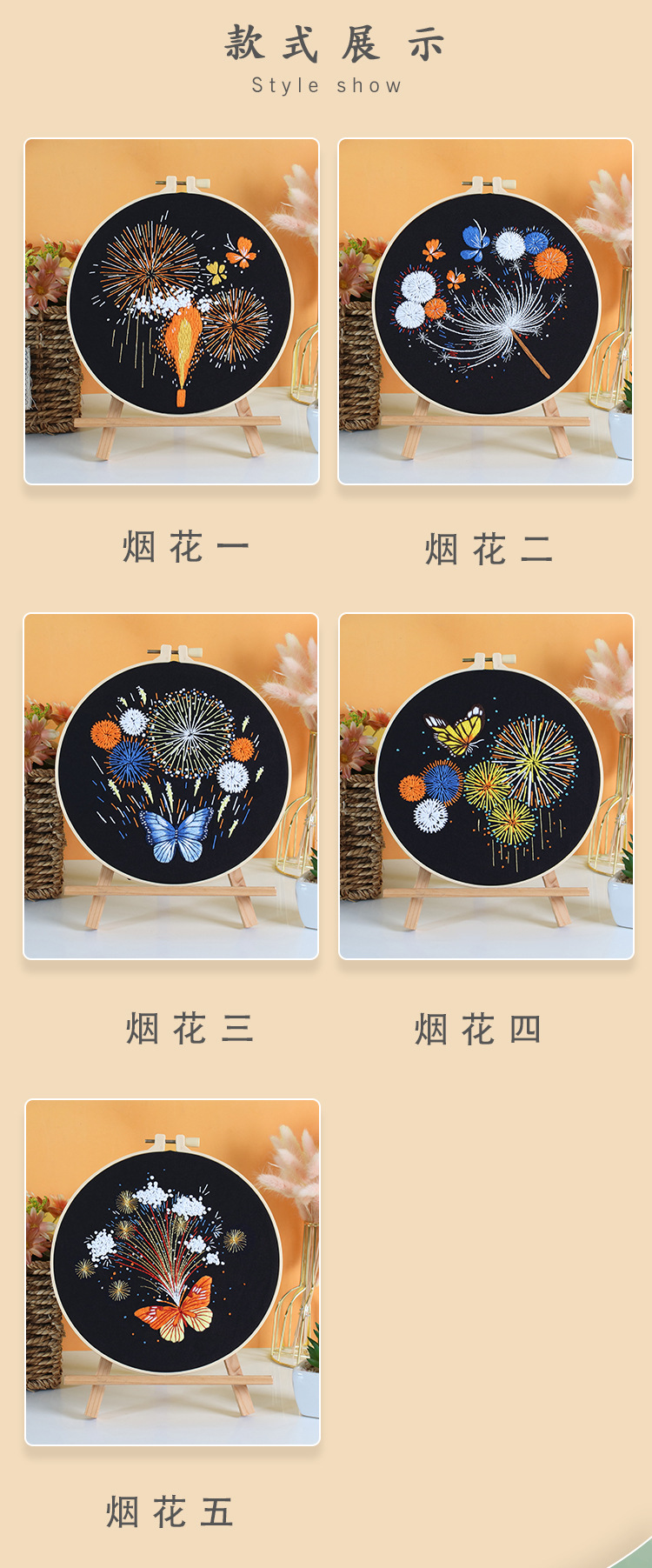 | Color | CX0938 magníficos fuegos artificiales 1,CX0939 magníficos fuegos artificiales 2,CX0940 magníficos fuegos artificiales 3,CX0941 magníficos fuegos artificiales 4,CX0942 fuegos artificiales magníficos 5,Set de 5 piezas de fuegos artificiales 1-5+1 bastidor de bordado+tijeras rosas+enhebrador de agujas rosas+quitacosturas blanco |