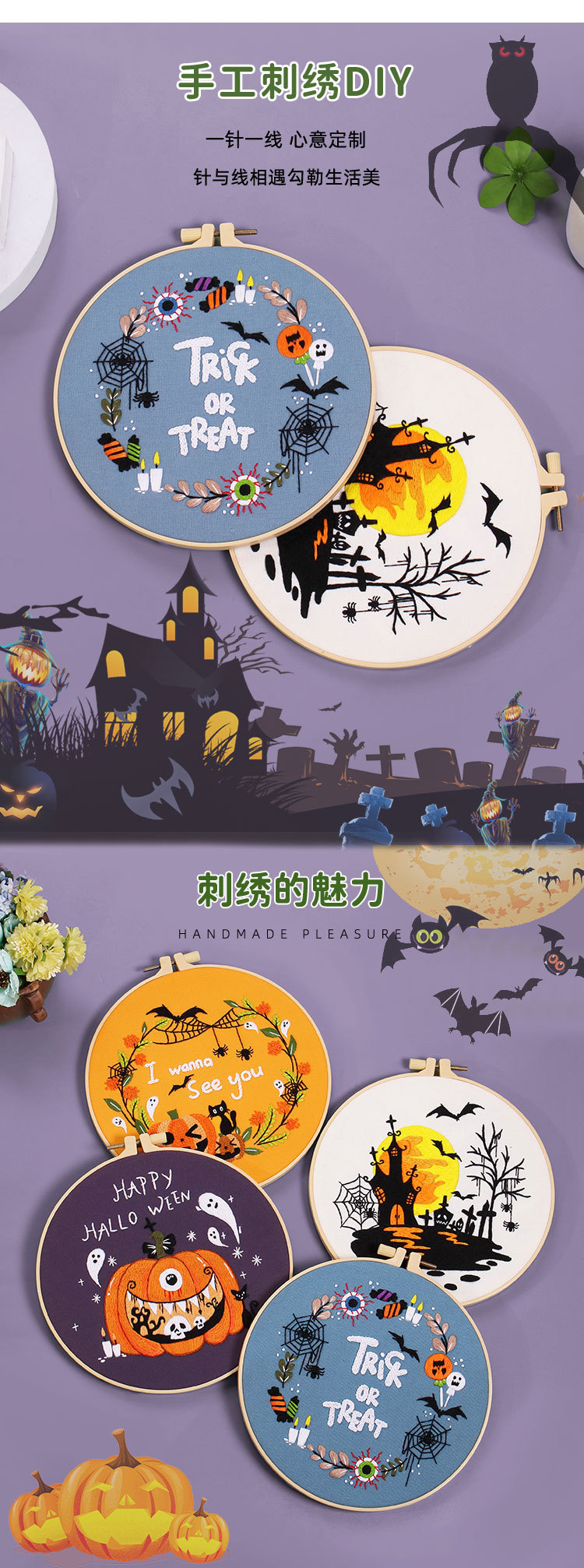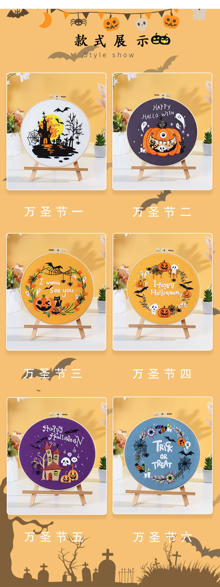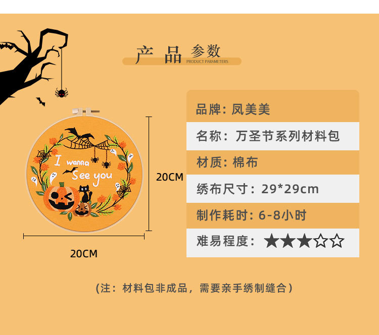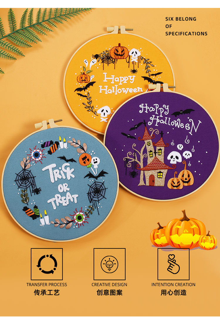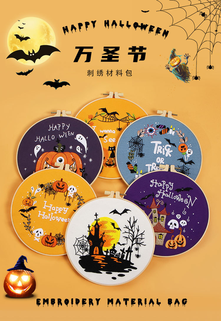 20,23 millones Santo Festival Nuevo original DIY bordado hecho a mano paquete de material de calabaza murciélago fantasma guirnalda transfronteriza inglés