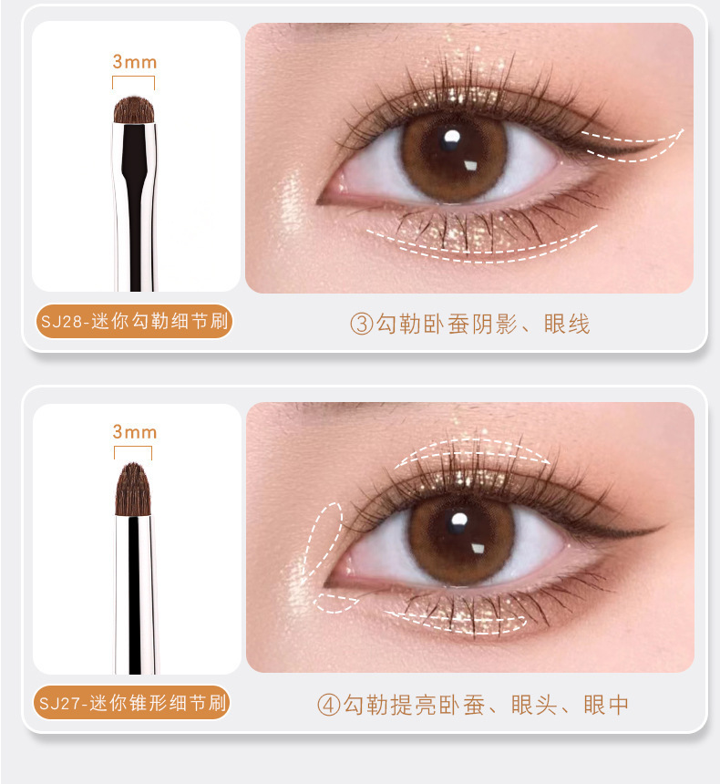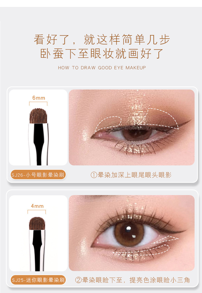 4 pinceles de sombra de ojos de pelo de caballo, pinceles para manchas, pinceles para detalles, juego de pinceles de maquillaje para ojos, pinceles de maquillaje Cangzhou, herramientas de belleza
