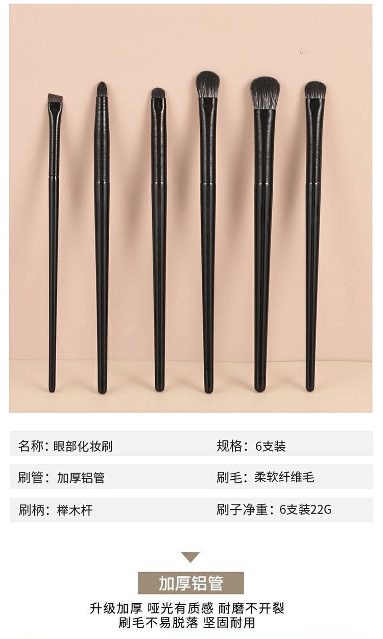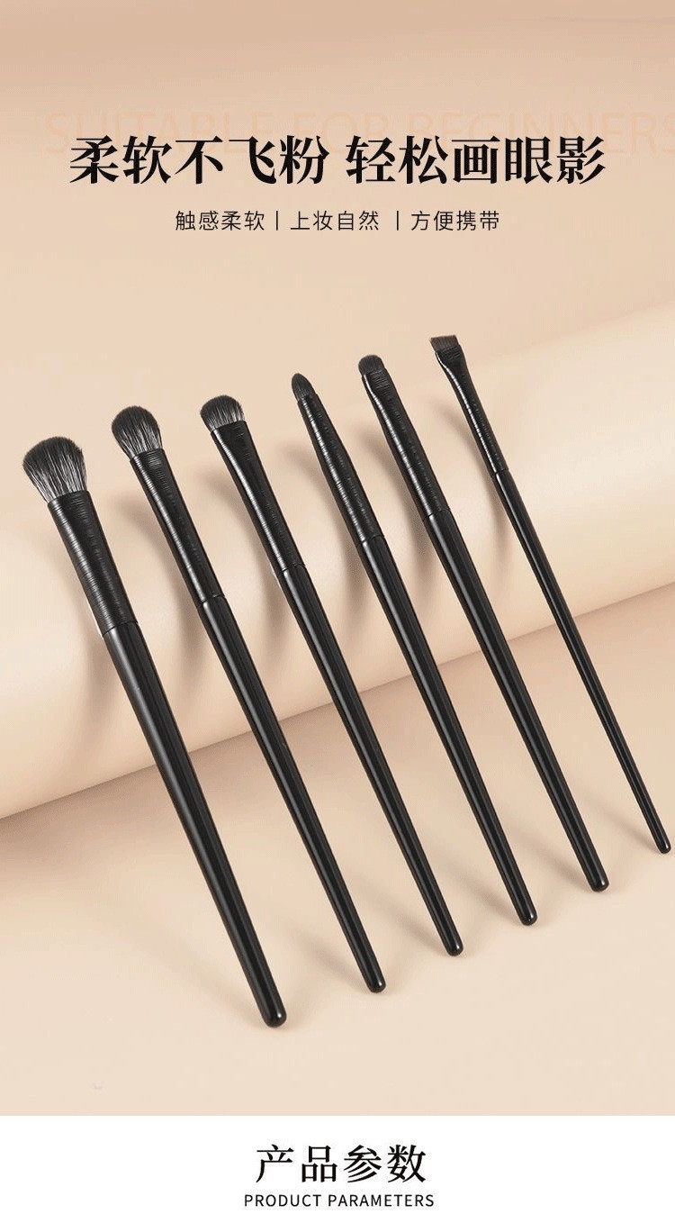 6 cepillo de sombra de ojos negros, pelo suave, tinte de seda de seda, cepillo de cuchilla de línea de ojos, 10 cepillo de detalle de ojos, cepillo de maquillaje de Cangzhou
