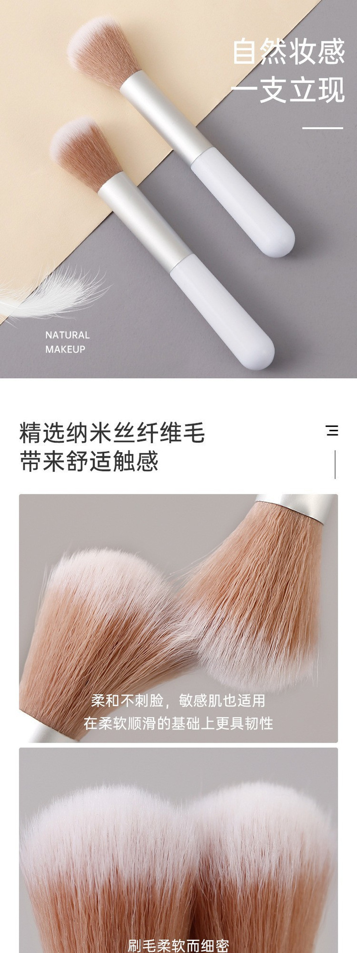 Pequeño cepillo de blush blanco Odin alto brillo cepillo de pintura en polvo cepillo de maquillaje portátil de mango corto herramientas de maquillaje de belleza