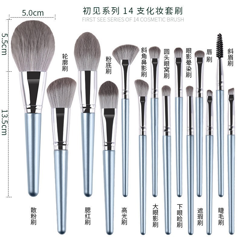 14 conjuntos de cepillo de maquillaje Cangzhou blush cepillo de sombra de ojos de pelo suave cepillo de blush un conjunto completo de cepillo de maquillaje