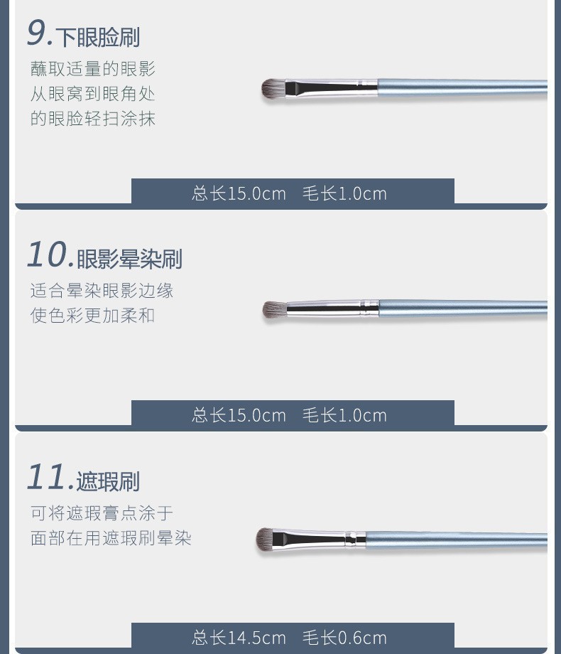 | Categoría del producto | Cepillo de maquillaje, cepillo de maquillaje, cepillo de miel, cepillo de delineador, cepillo de maquillaje, cepillo de sombra de ojos, cepillo de polvo disperso, cepillo de rubor, cepillo residual, cepillo de sombra de nariz, cepillo de pestañas / peine |