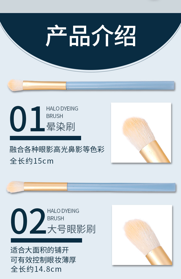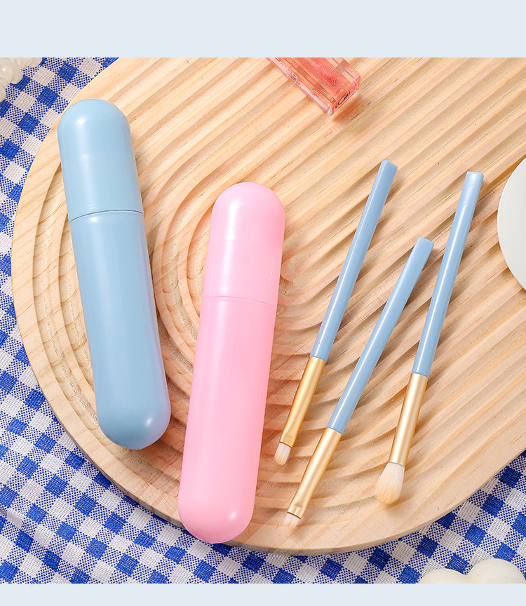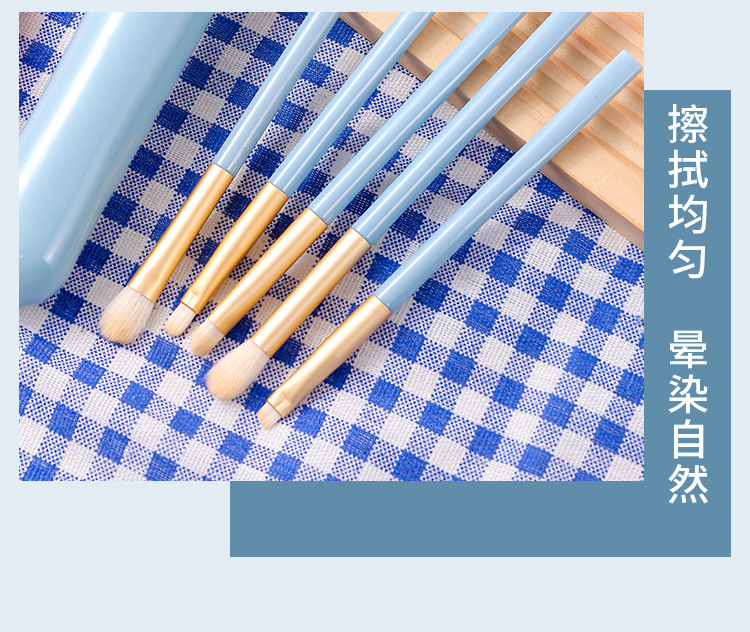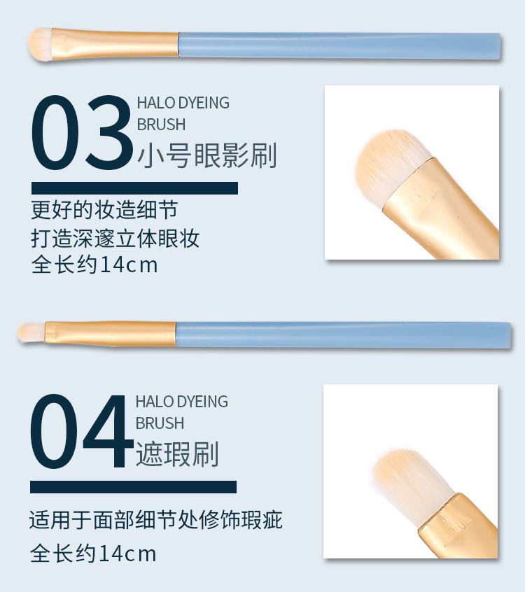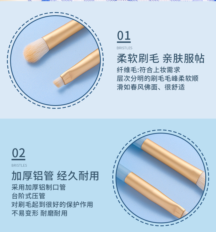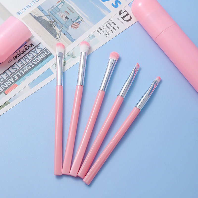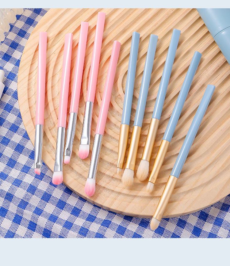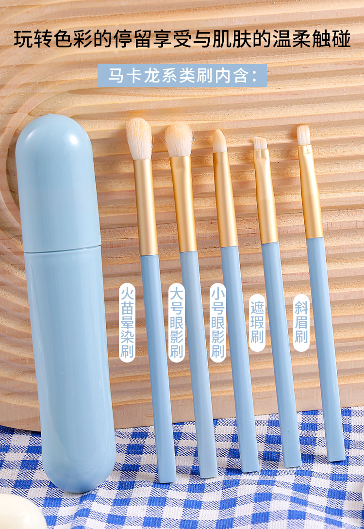 Macaron 5 conjuntos de cepillo de sombra de ojos, paquete de cepillo de maquillaje portátil azul 5 en 1, cepillo de alto brillo, cepillo de halo