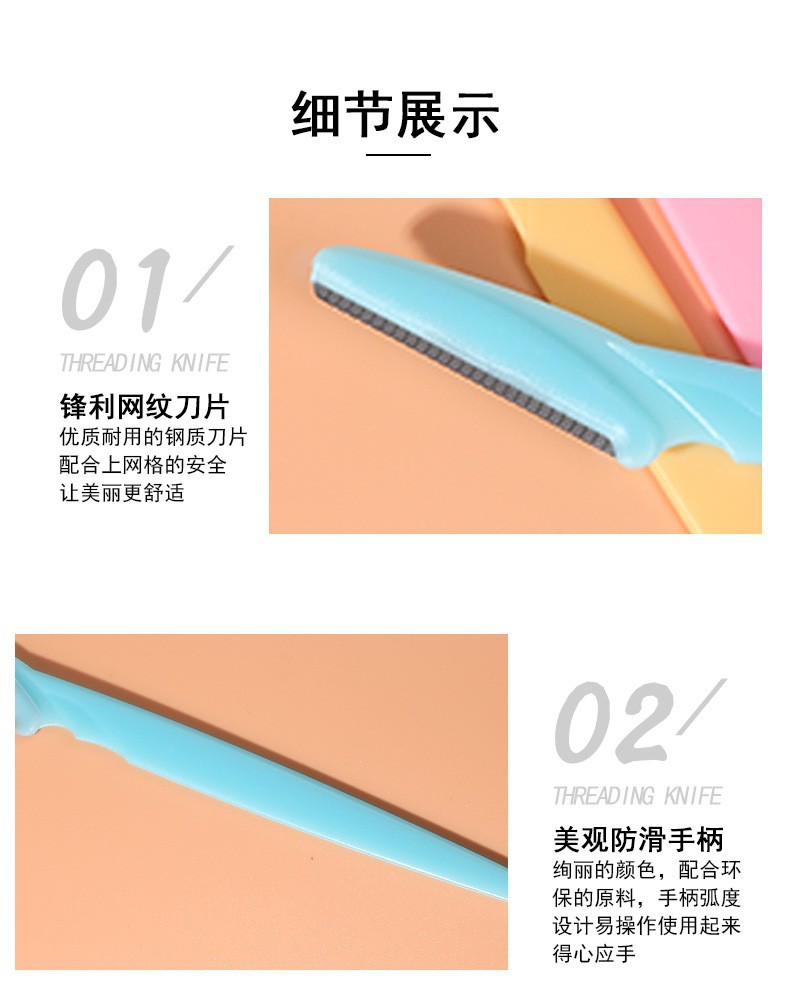 Cuchillo de cejas macro, mango recto, raspador de cejas anti-rayado de seguridad, hoja de afeitado de cejas, herramienta de recorte de cejas para principiantes