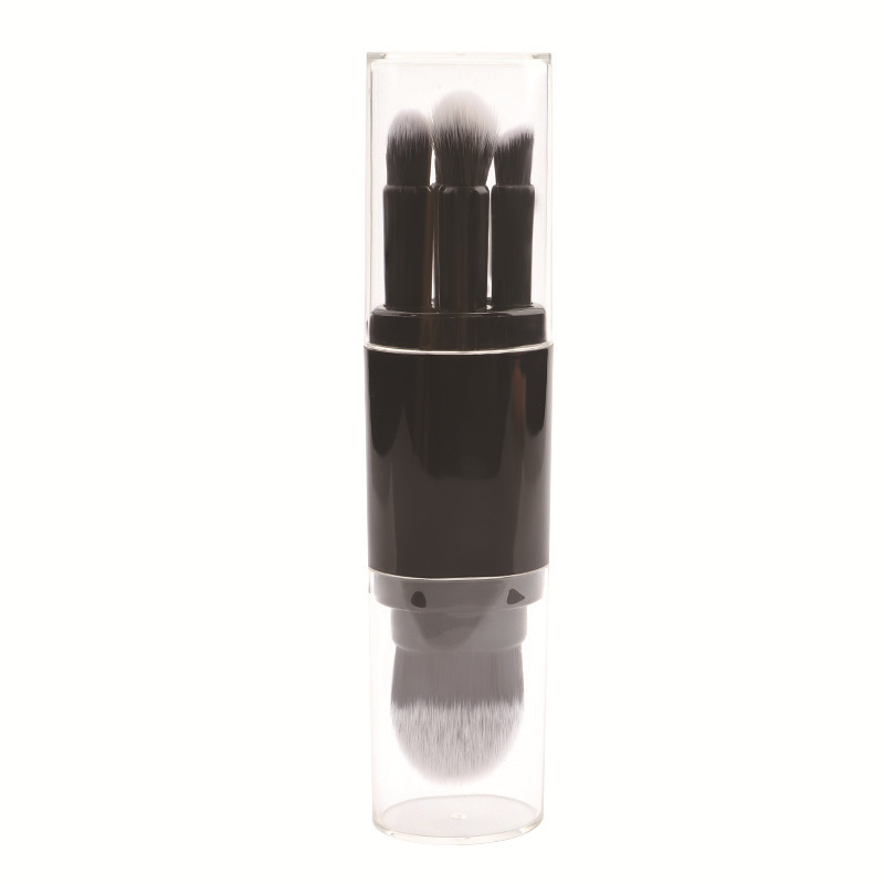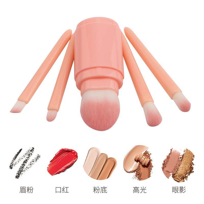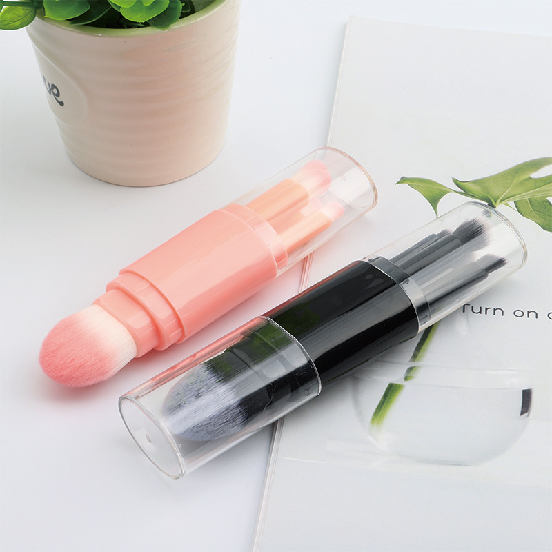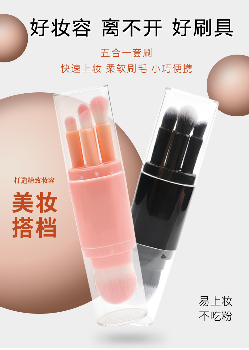 Cinco en uno cepillo de maquillaje portátil de doble cabeza con tapa cepillo de blush en polvo cepillo de sombra de ojos herramienta de maquillaje multifuncional