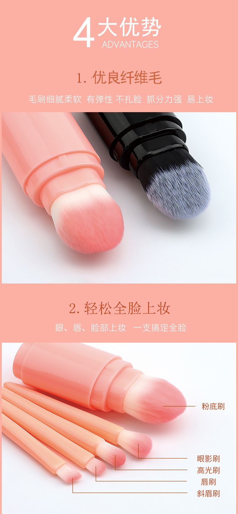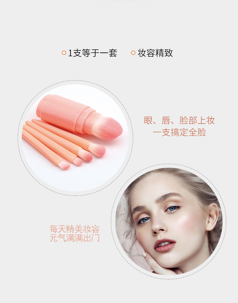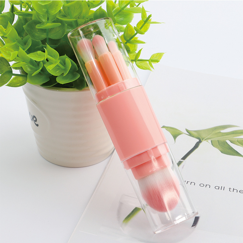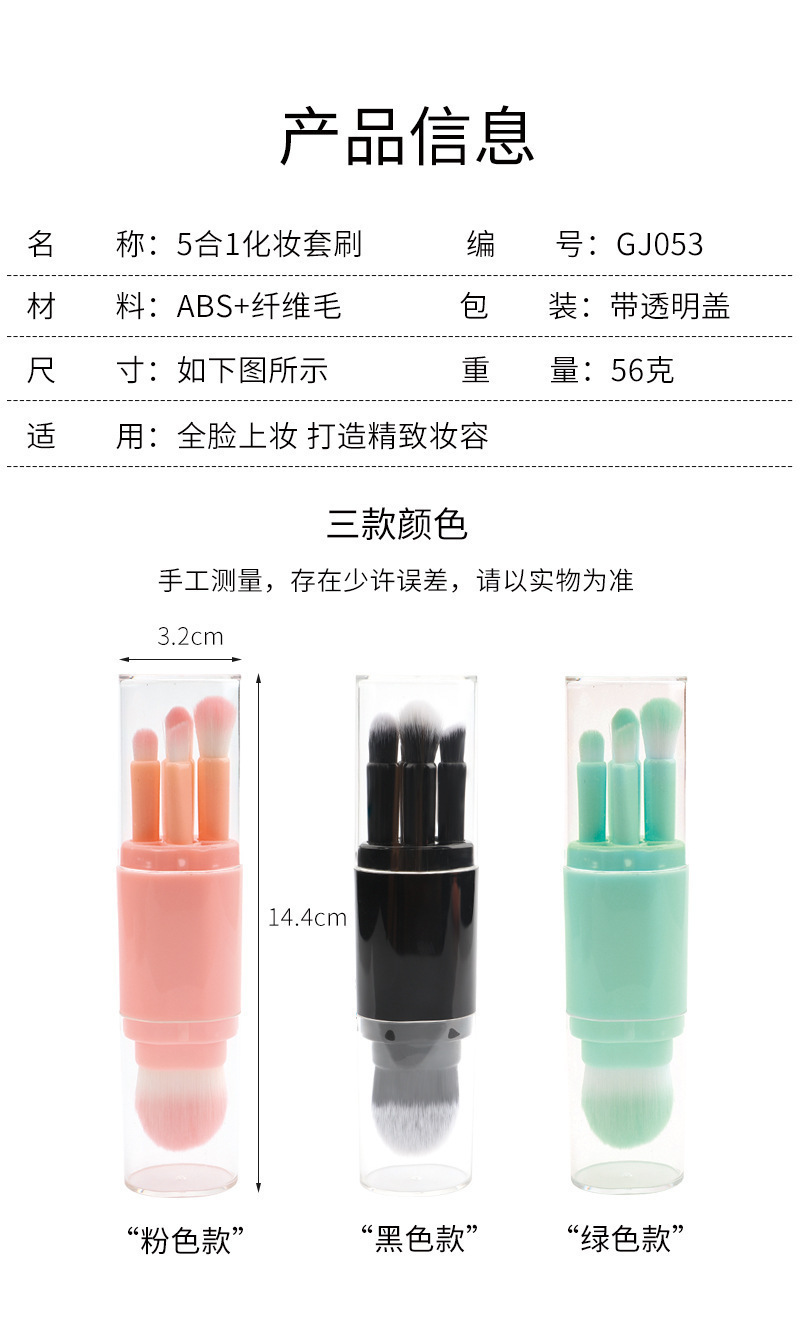 Cinco en uno cepillo de maquillaje portátil de doble cabeza con tapa cepillo de blush en polvo cepillo de sombra de ojos herramienta de maquillaje multifuncional