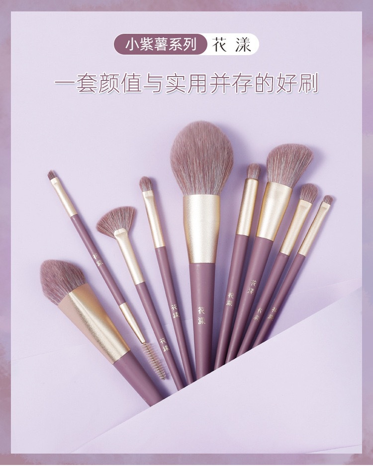 Pequeña patata púrpura 9 cepillo de maquillaje cubierta de cepillo de pintura en polvo cepillo de sombra de ojos cepillo de blanqueador conjunto completo de herramientas de maquillaje fabricante de fuentes