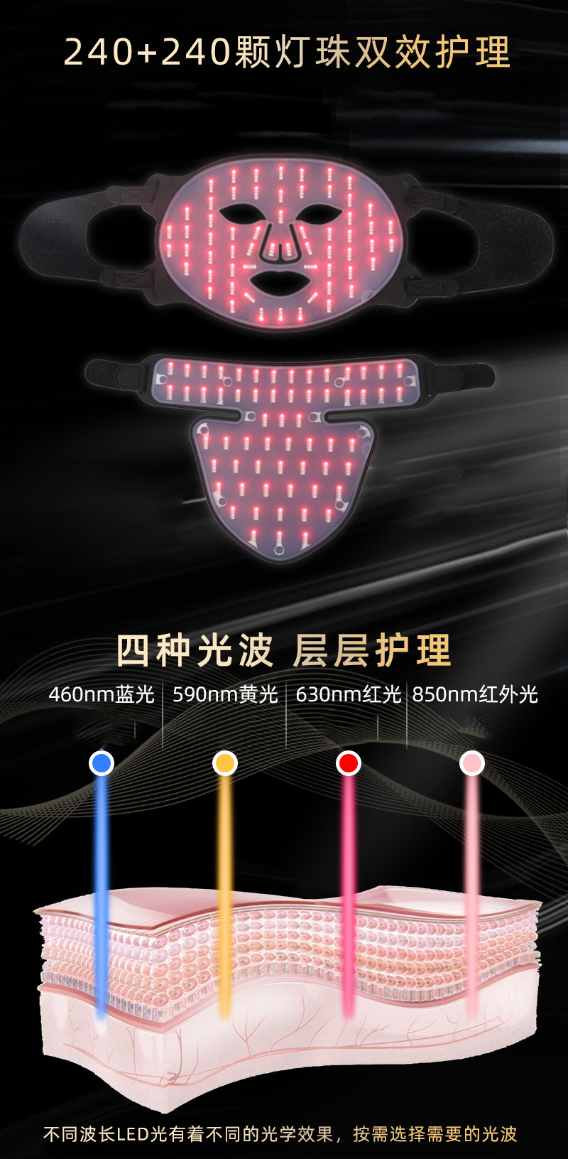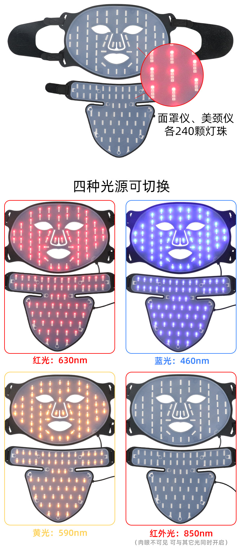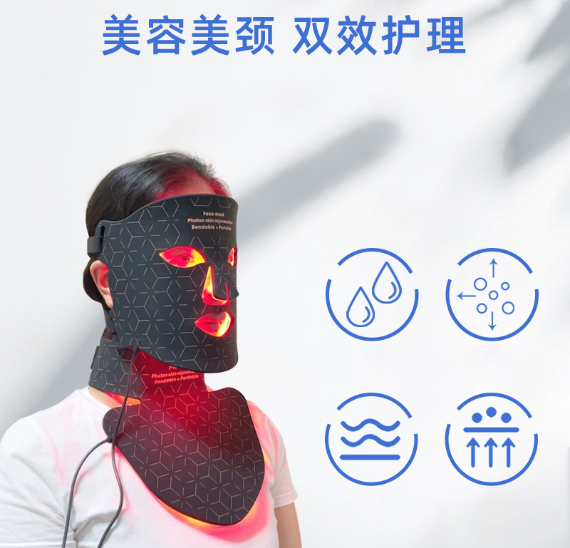 Dispositivo de máscara de fotones con luz roja y azul para rejuvenecimiento facial, incluye máscara de belleza de silicona LED para el cuello.