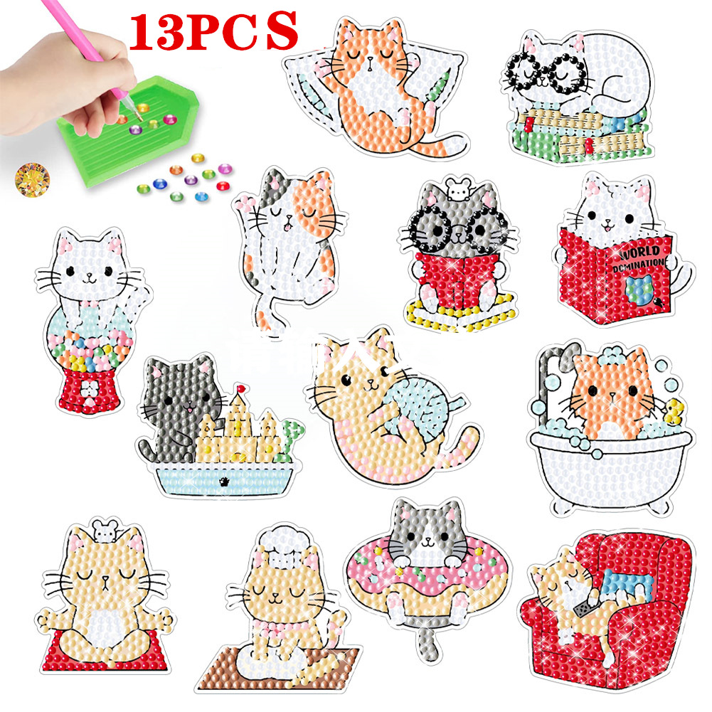 Pegatinas de Diamantes con Diseño de Gatito de Dibujos Animados para Paredes de Ladrillo, Pegatinas Infantiles, Decoración con Diamantes Redondos