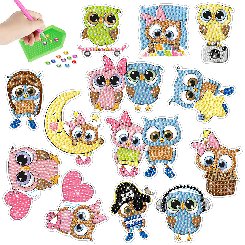 Ojos grandes búho diamante pegatinas de bricolaje hecho a mano de los niños pintura de diamante creativo pasta pintura de ladrillo al por mayor