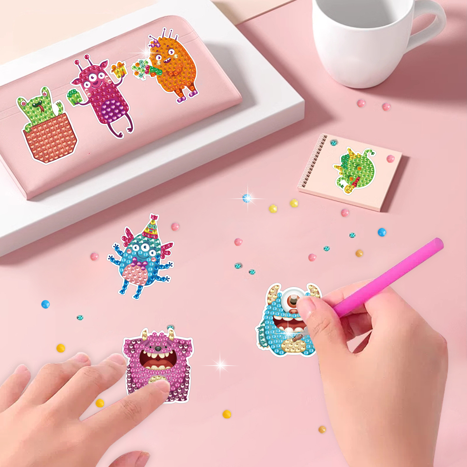 Pequeños monstruos de dibujos animados más vendidos dibujos de diamantes hechos a mano diy aleatoriamente pegatinas de mampostería pegatinas de pared pegatinas de juguetes pegatinas llenas de diamantes