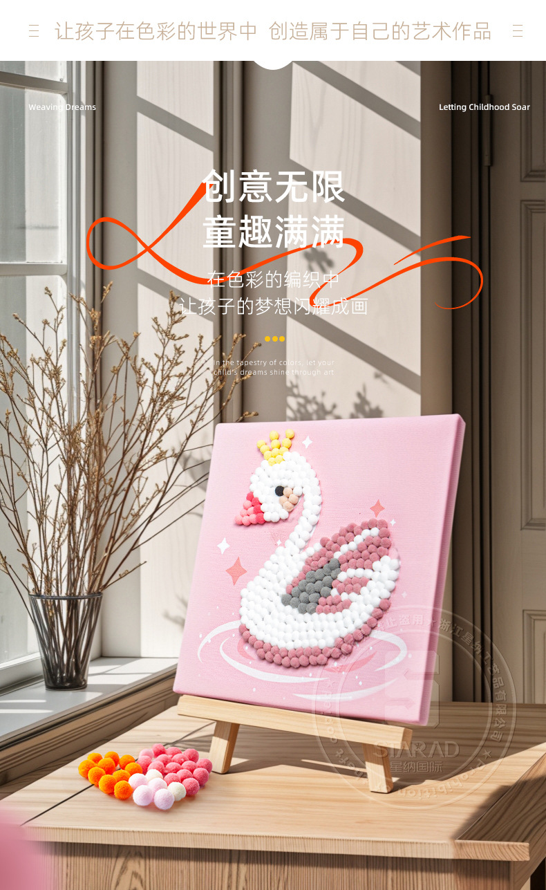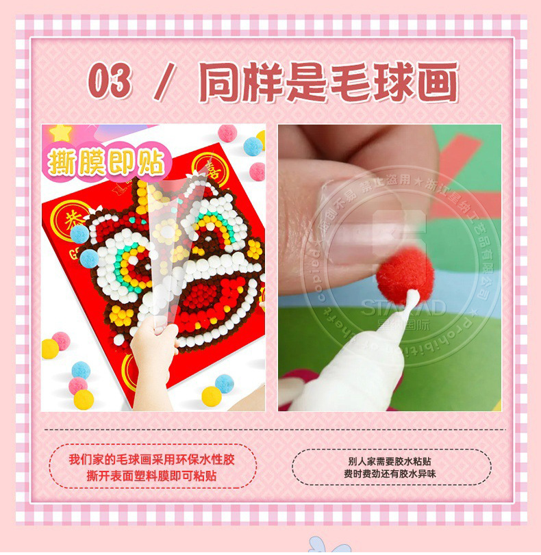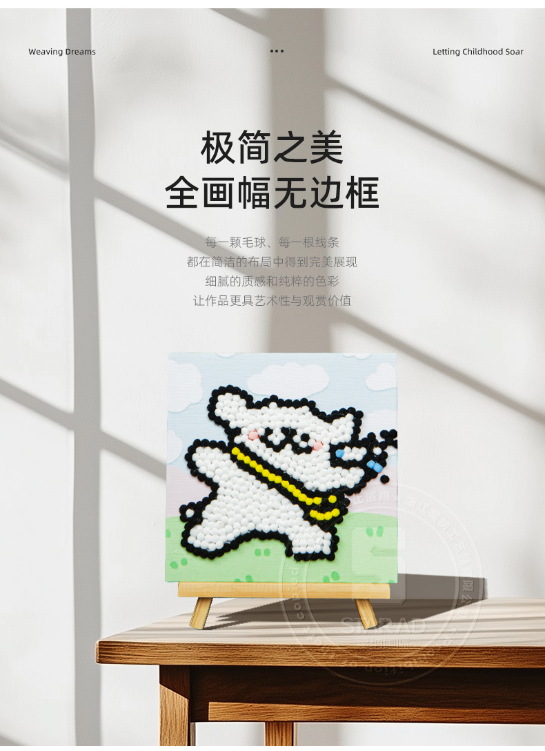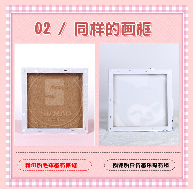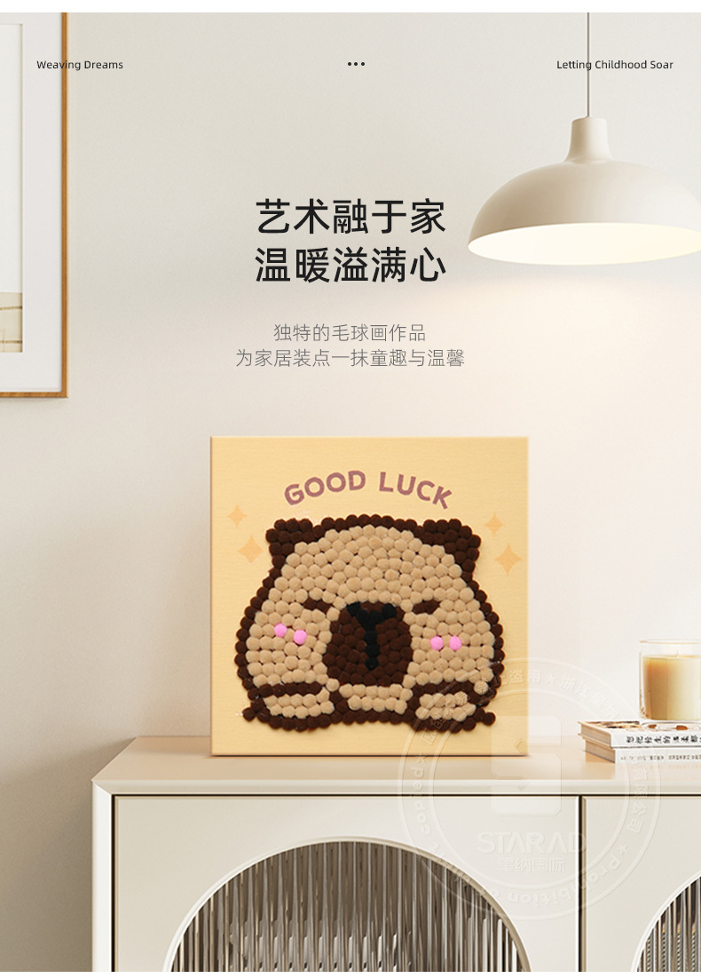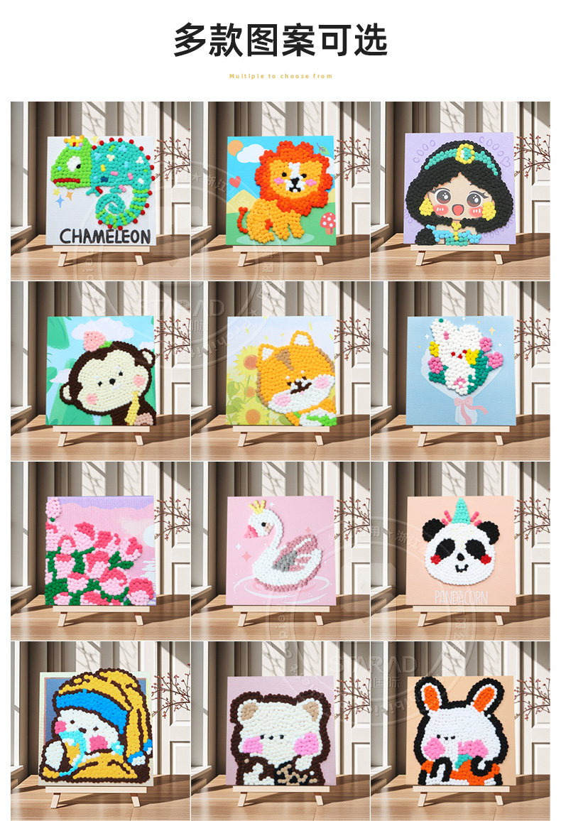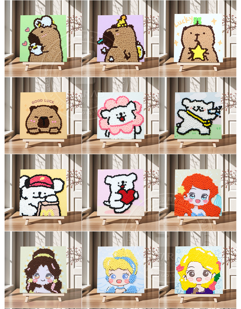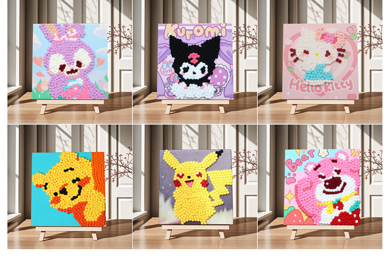 Pintura de bola de pelo Dibujos animados Niños creativos Pegatinas a mano Diy Material hecho a mano Paquete Marco estirado Pintura adhesiva Marco de madera maciza Pintura decorativa