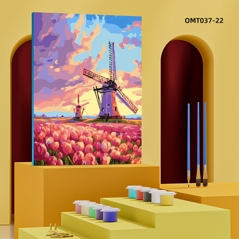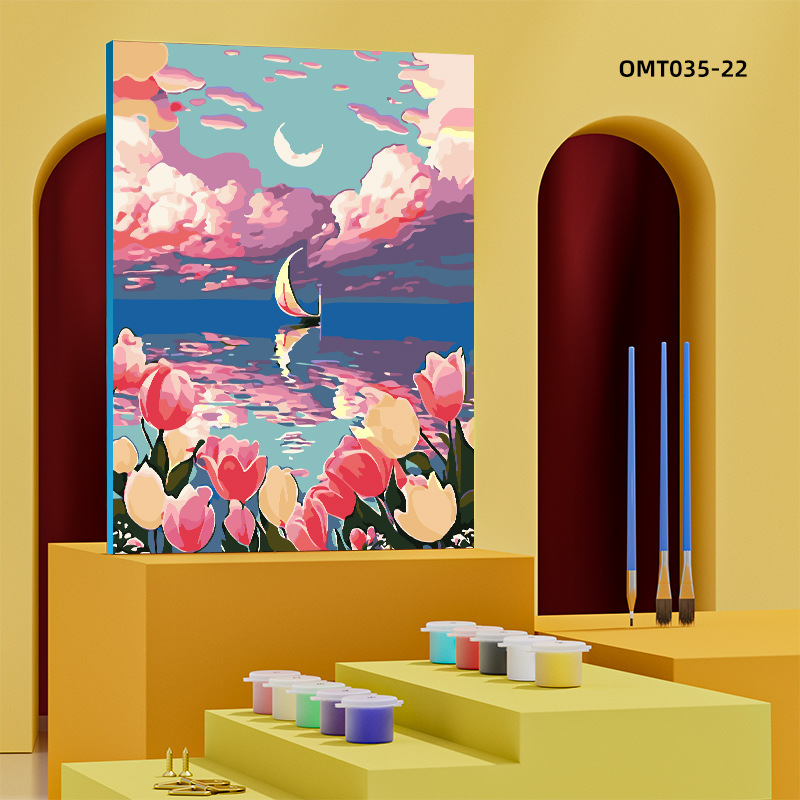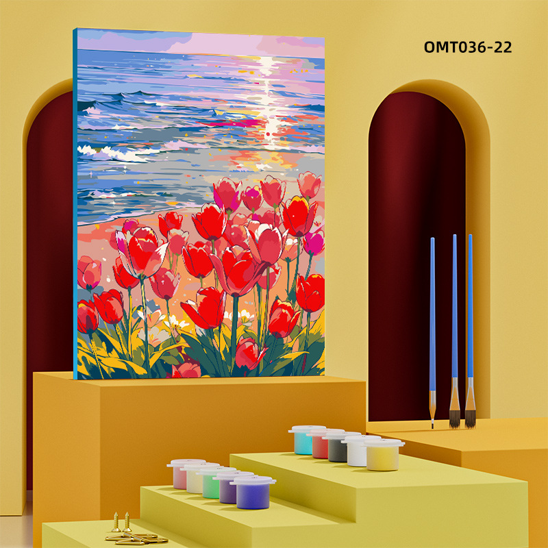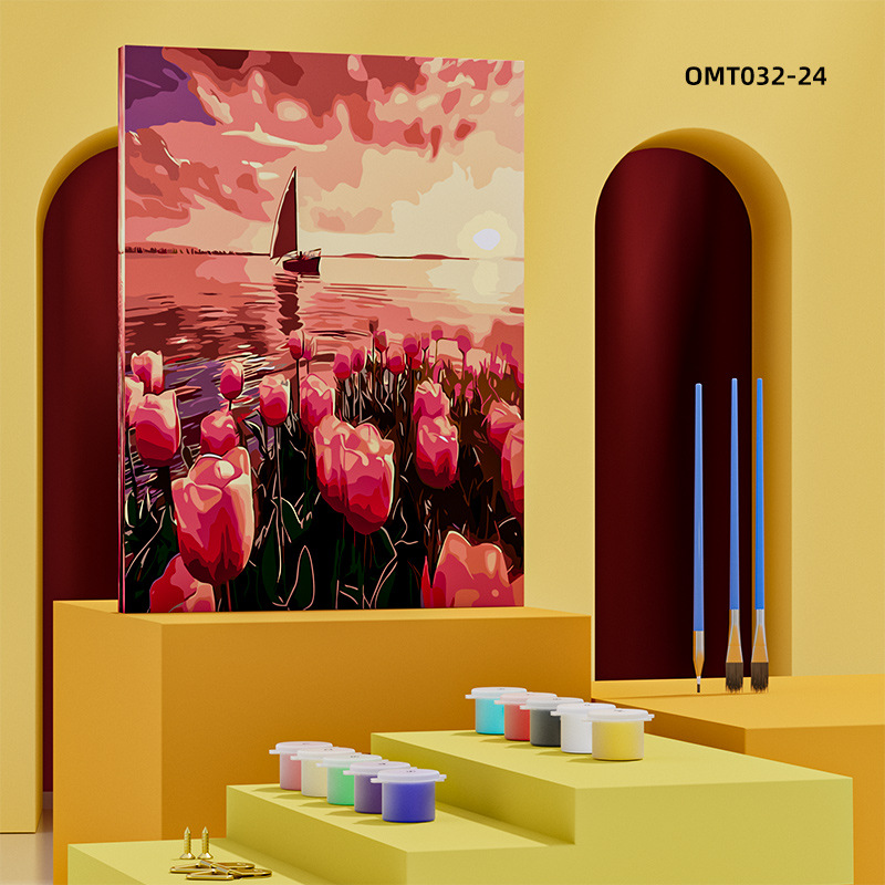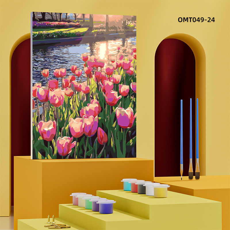 Pintura al Óleo Digital DIY, Pintura Decorativa Curativa Pintada a Mano, Paisaje, Tulipán, Girasol, Arte Decorativo, Regalo