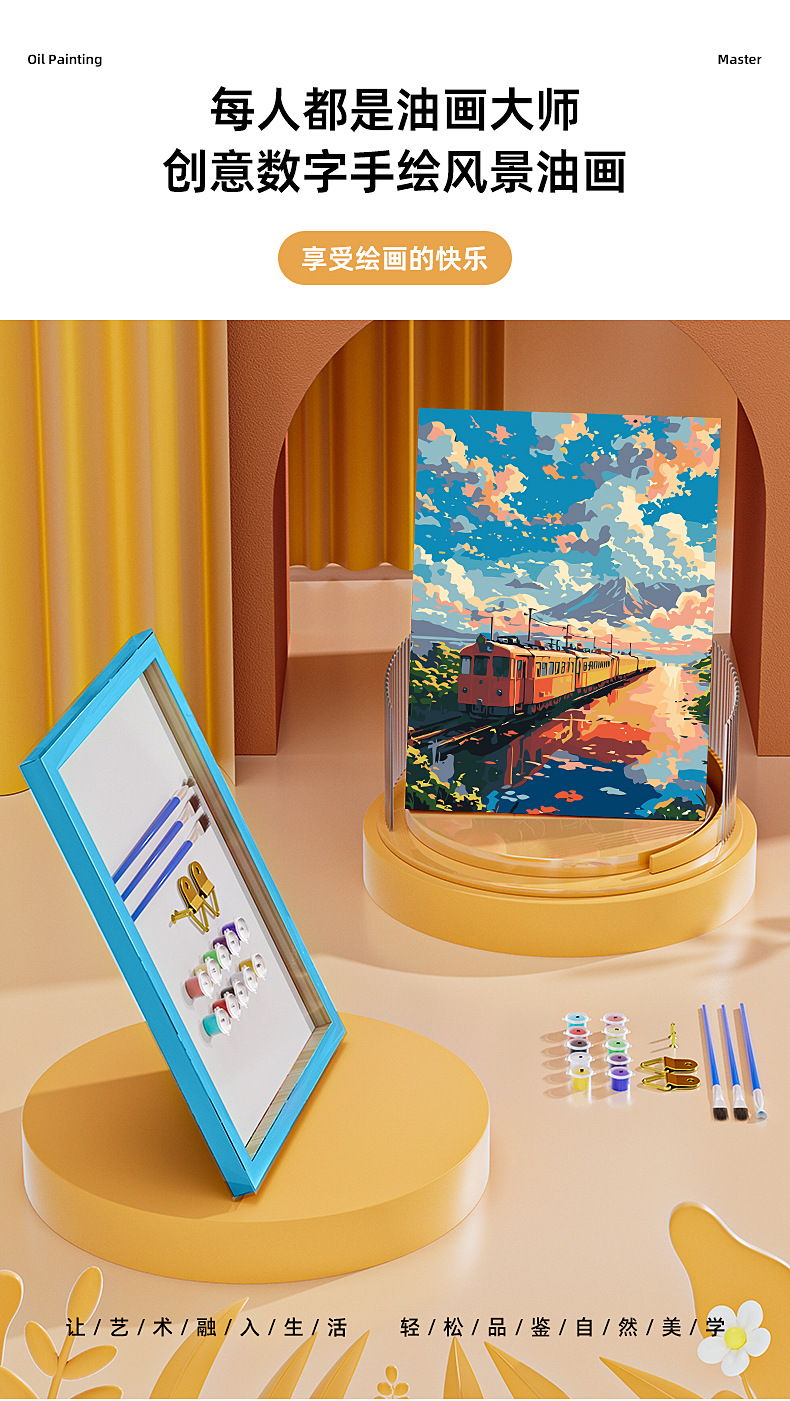 Embalaje de caja de color (lienzo + marco de madera maciza + pintura + pincel + caja de color)