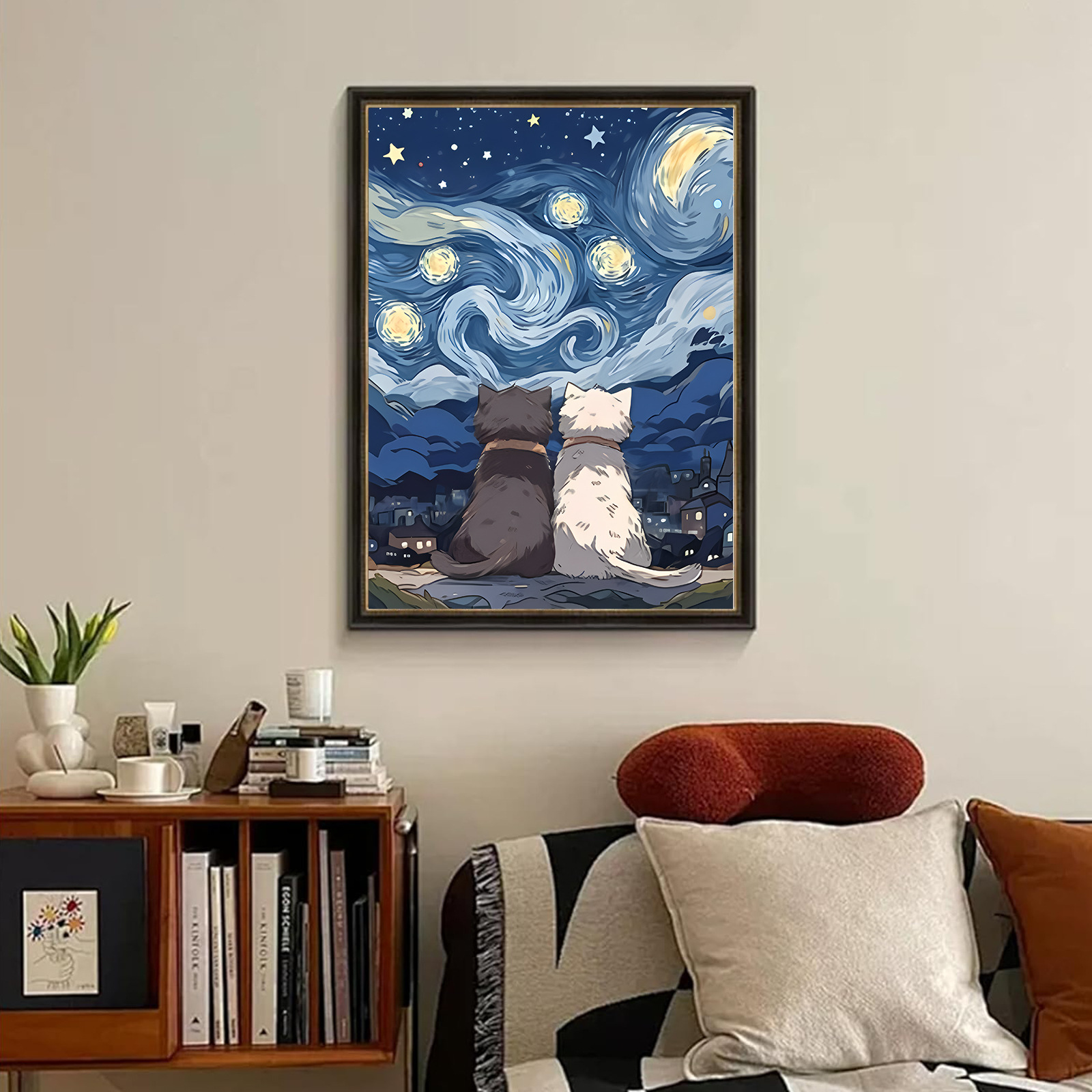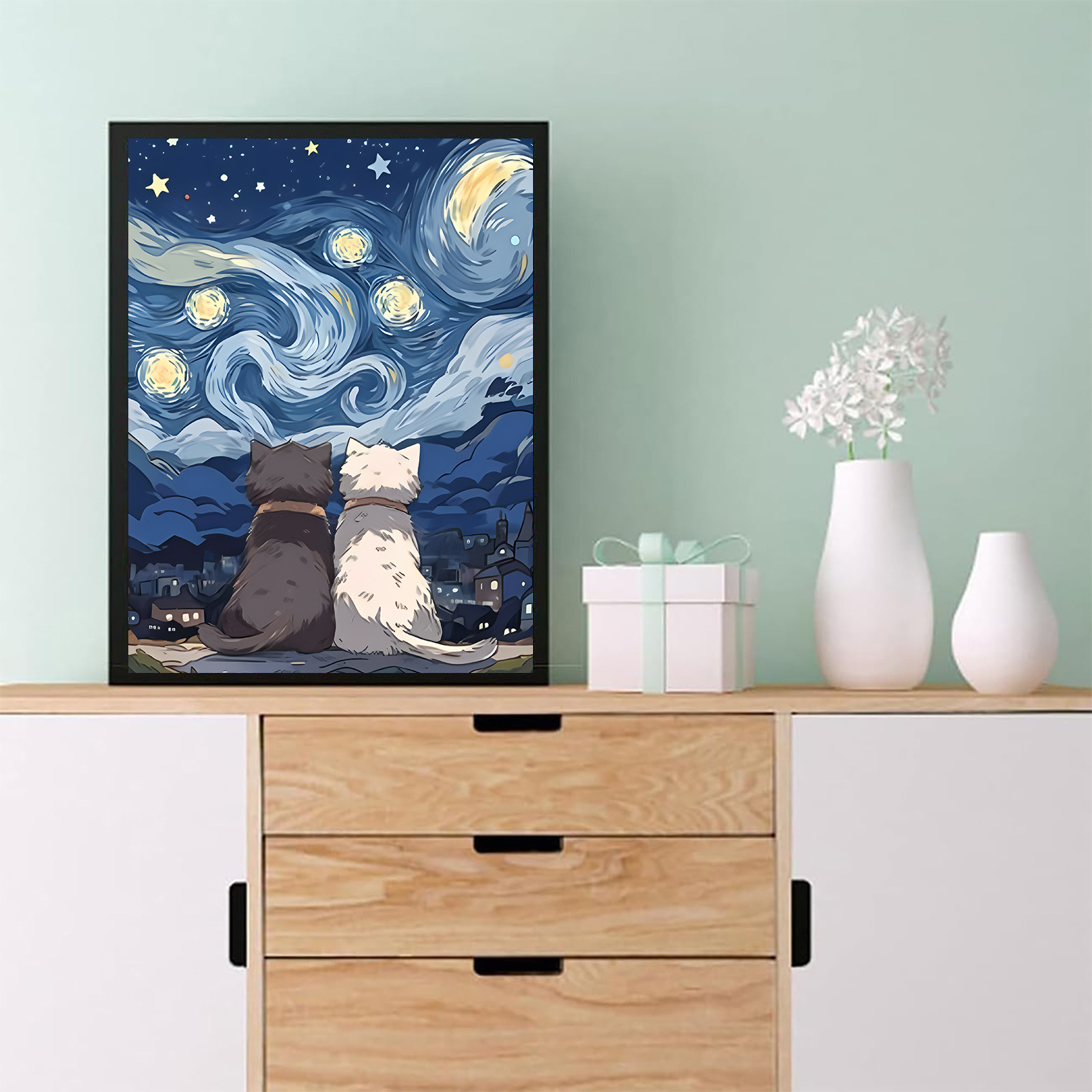 Transfronterizo Van Gogh Starry Sky Meow Pintura de diamantes Dibujos animados creativos Diy Niños Pegatinas hechas a mano Pintura decorativa de diamantes al por mayor
