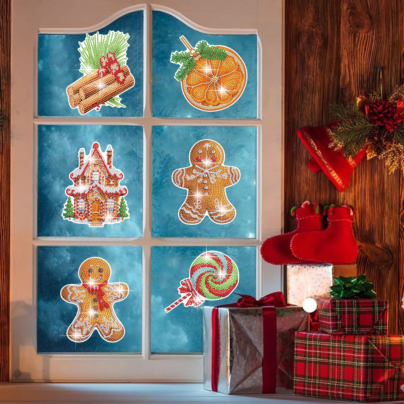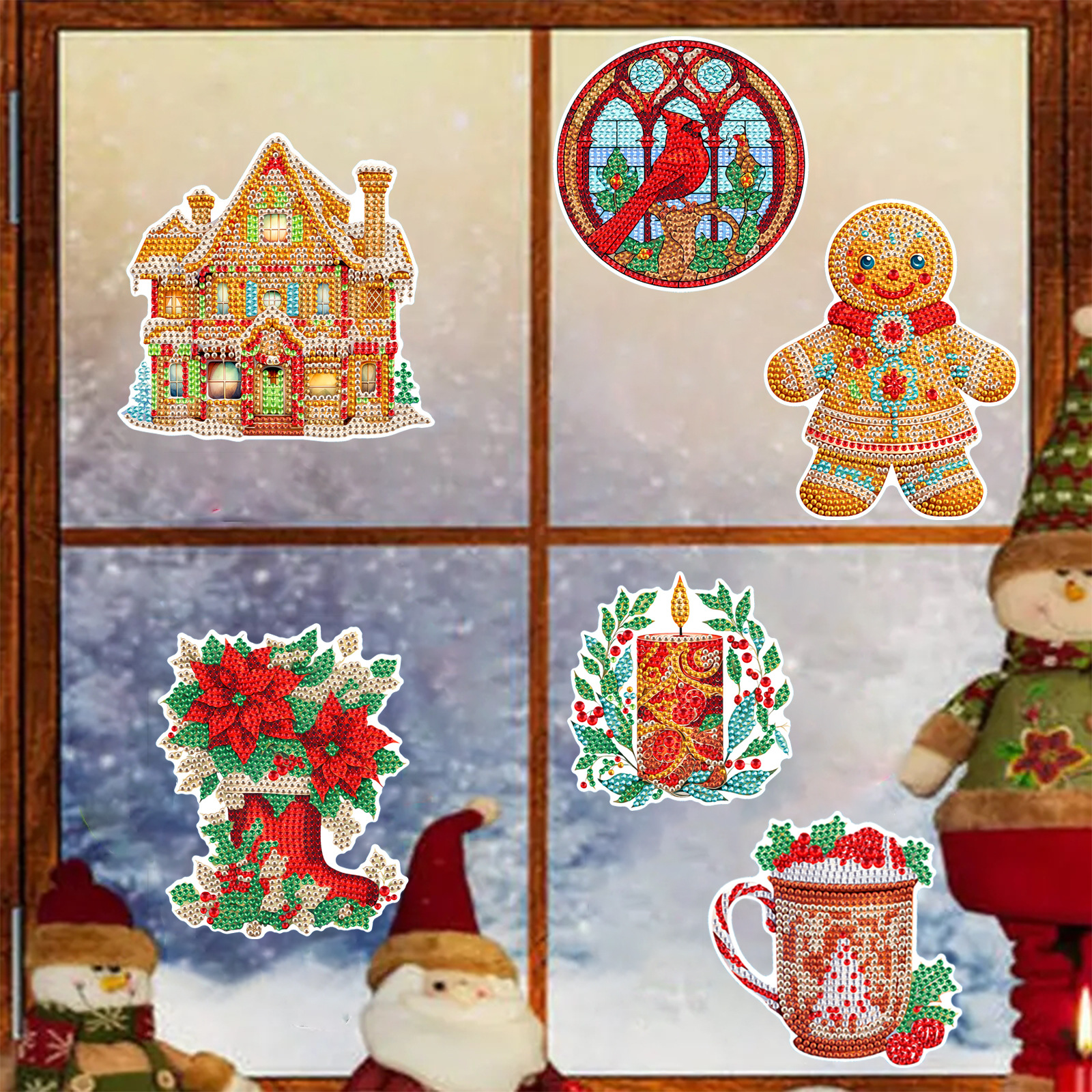 Nuevos productos Dibujos animados Galletas navideñas Gente Pintura de diamantes Pegatinas al azar Pegatinas de bricolaje Pegatinas de ventana Artesanías de cristal para niños Diamantes brillantes
