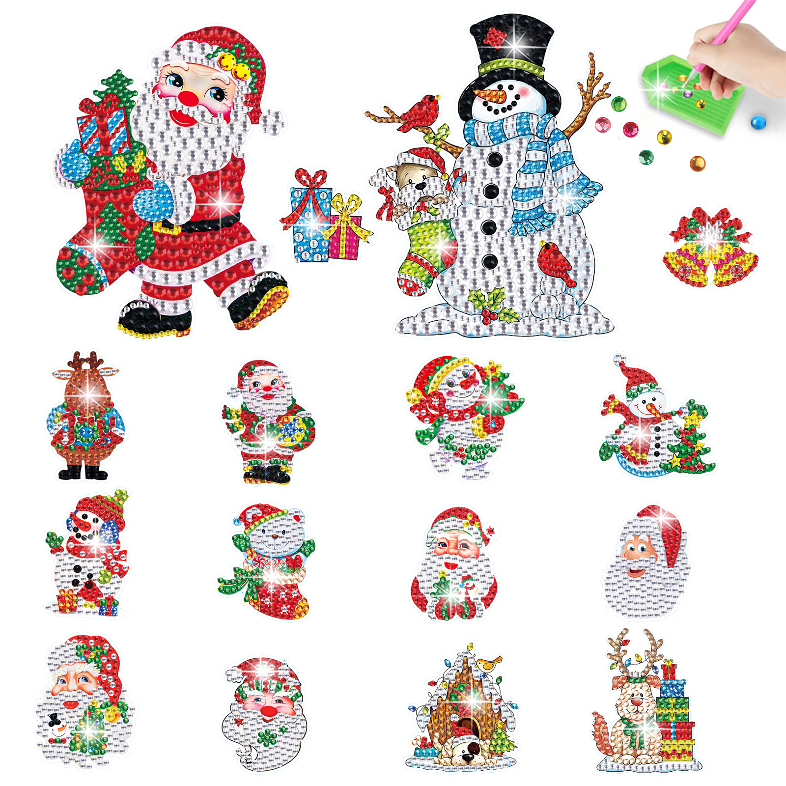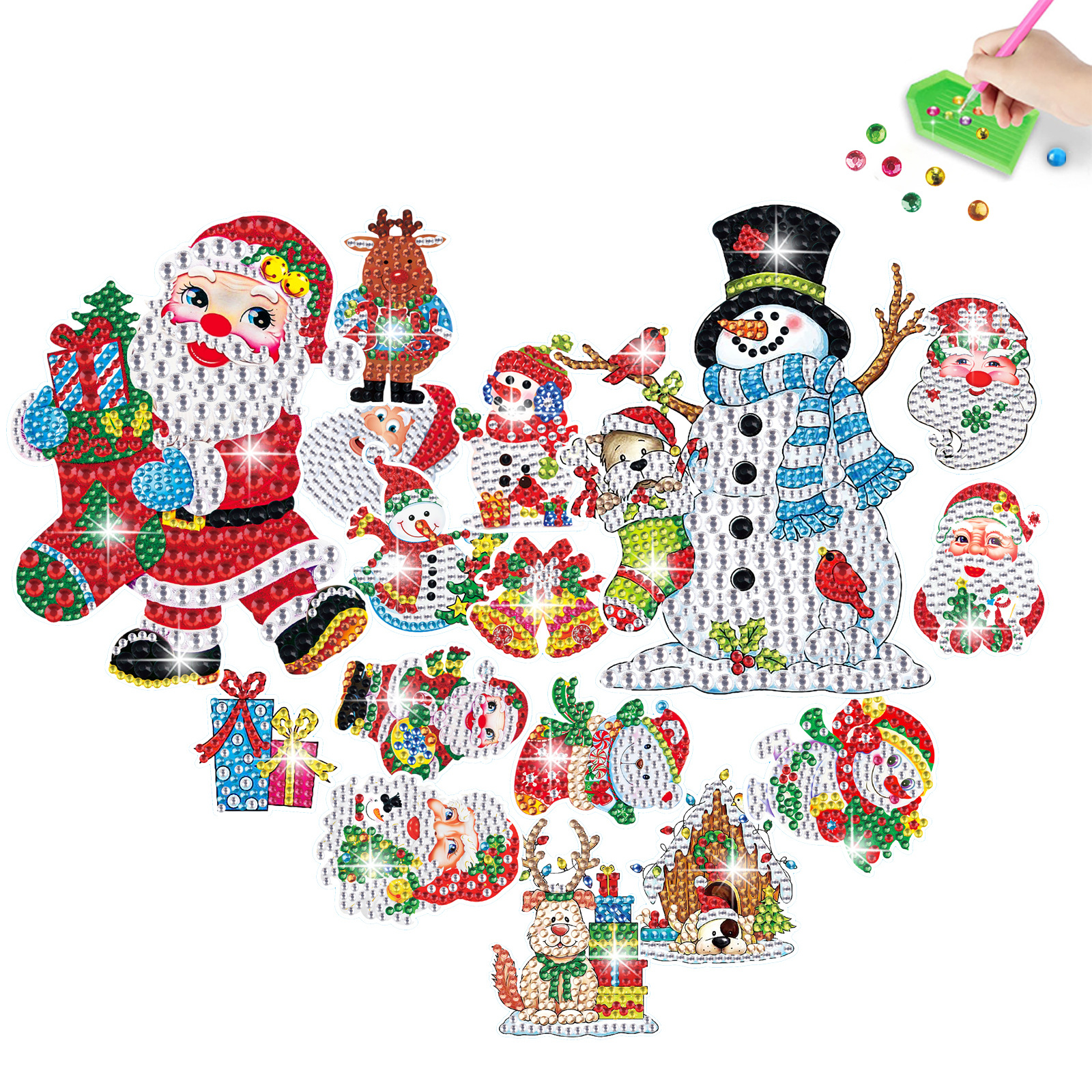 Venta más vendida Santa Claus Navidad muñeco de nieve pintura de diamantes pegatinas aleatorias pintura DIY pegatinas de pared dibujos animados hechos a mano cristal brillante diamante