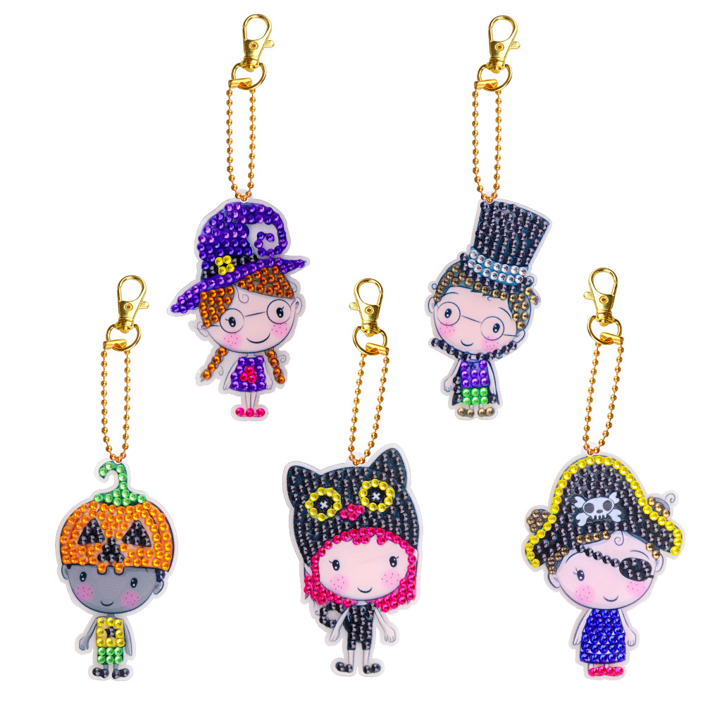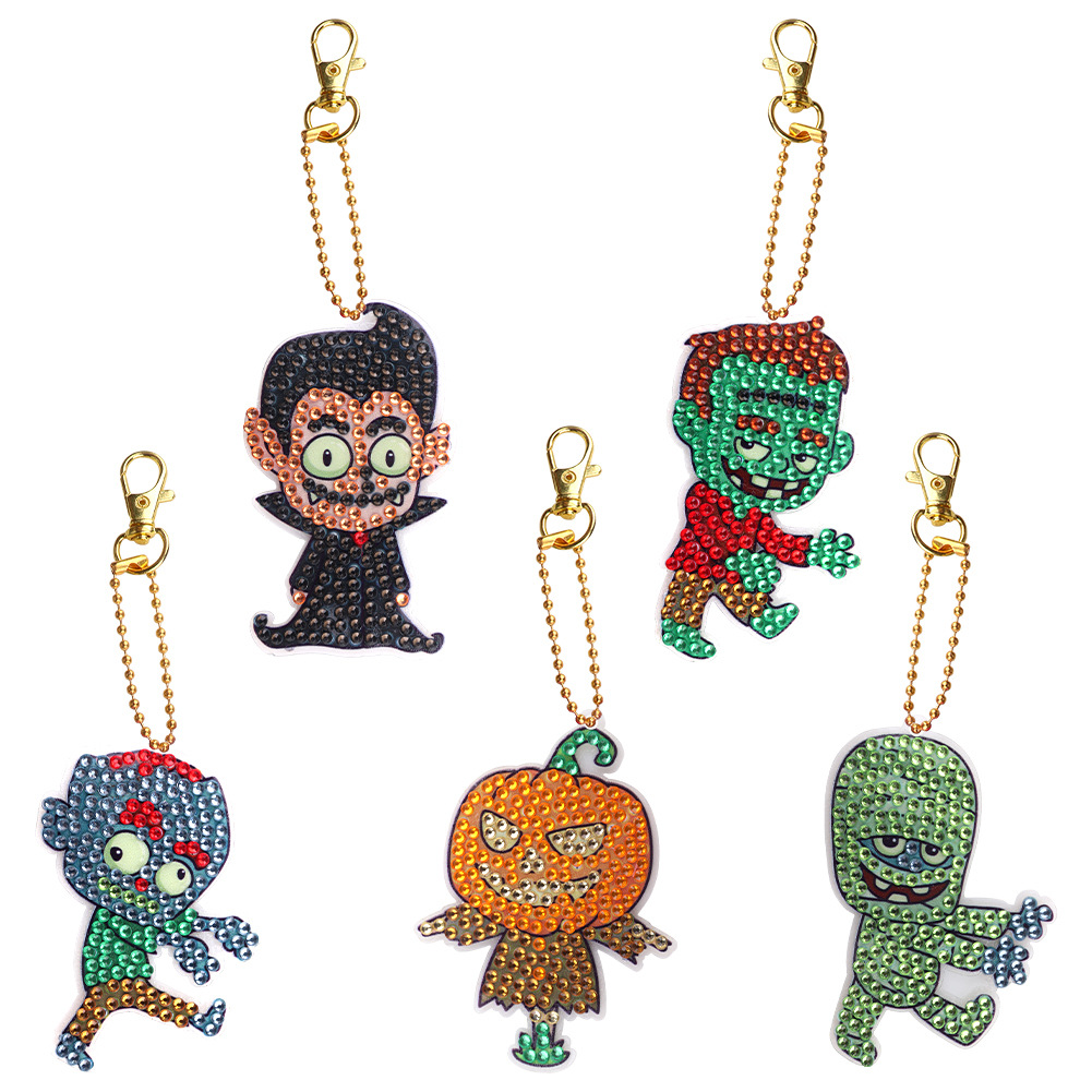 Transfronterizo Halloween cabeza de calabaza zombie dibujo de diamante llavero para niños DIY puntuación de perforación de dibujos animados conjunto de cristal