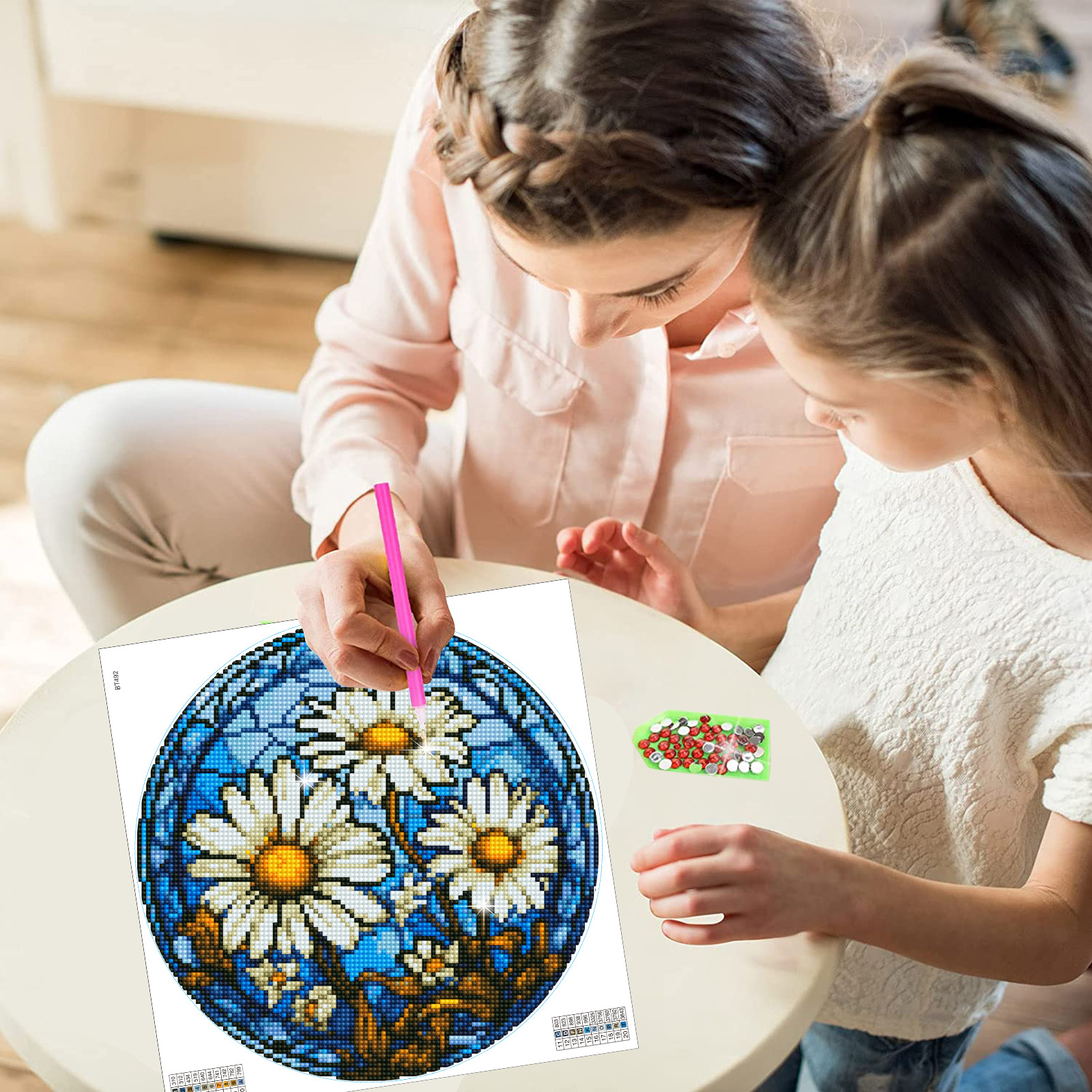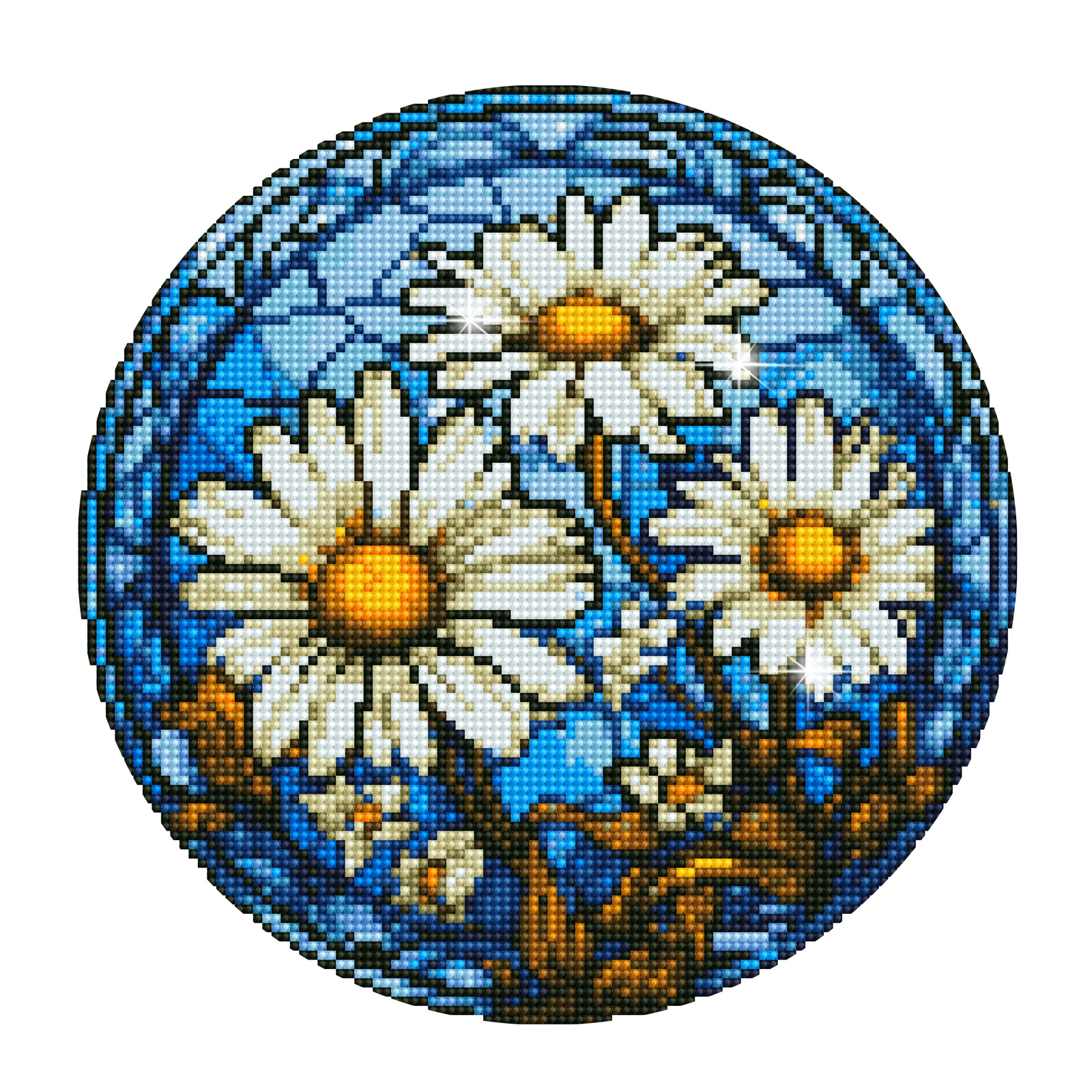 Diamante de dibujos animados flor de margarita pintura de diamante aleatoriamente pegado DIY pinturas de mampostería pegado de pared pegado de ventana hecha a mano pegado de niños diamantes redondos ventas calientes
