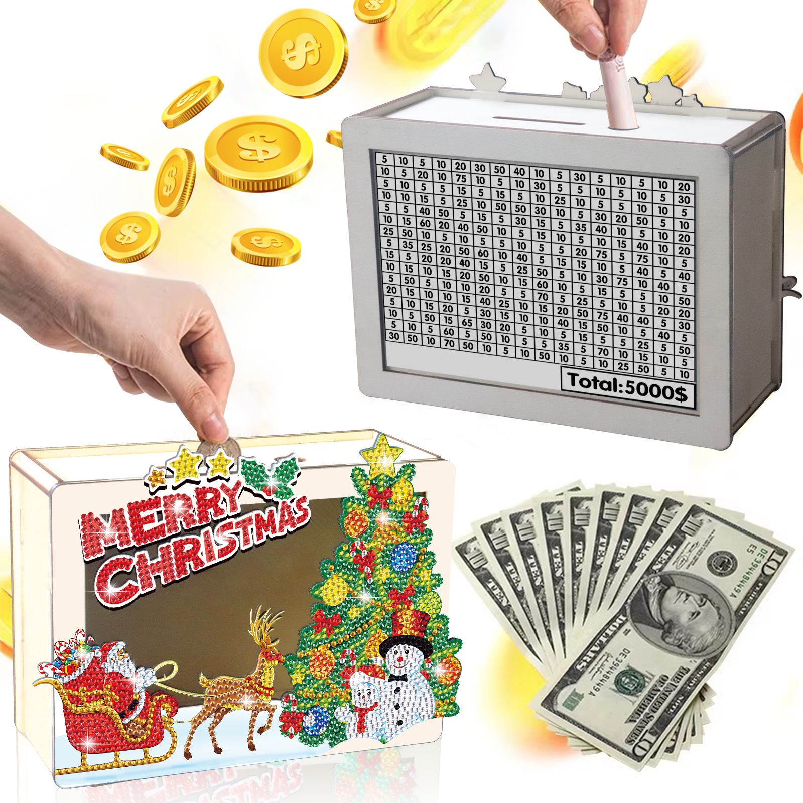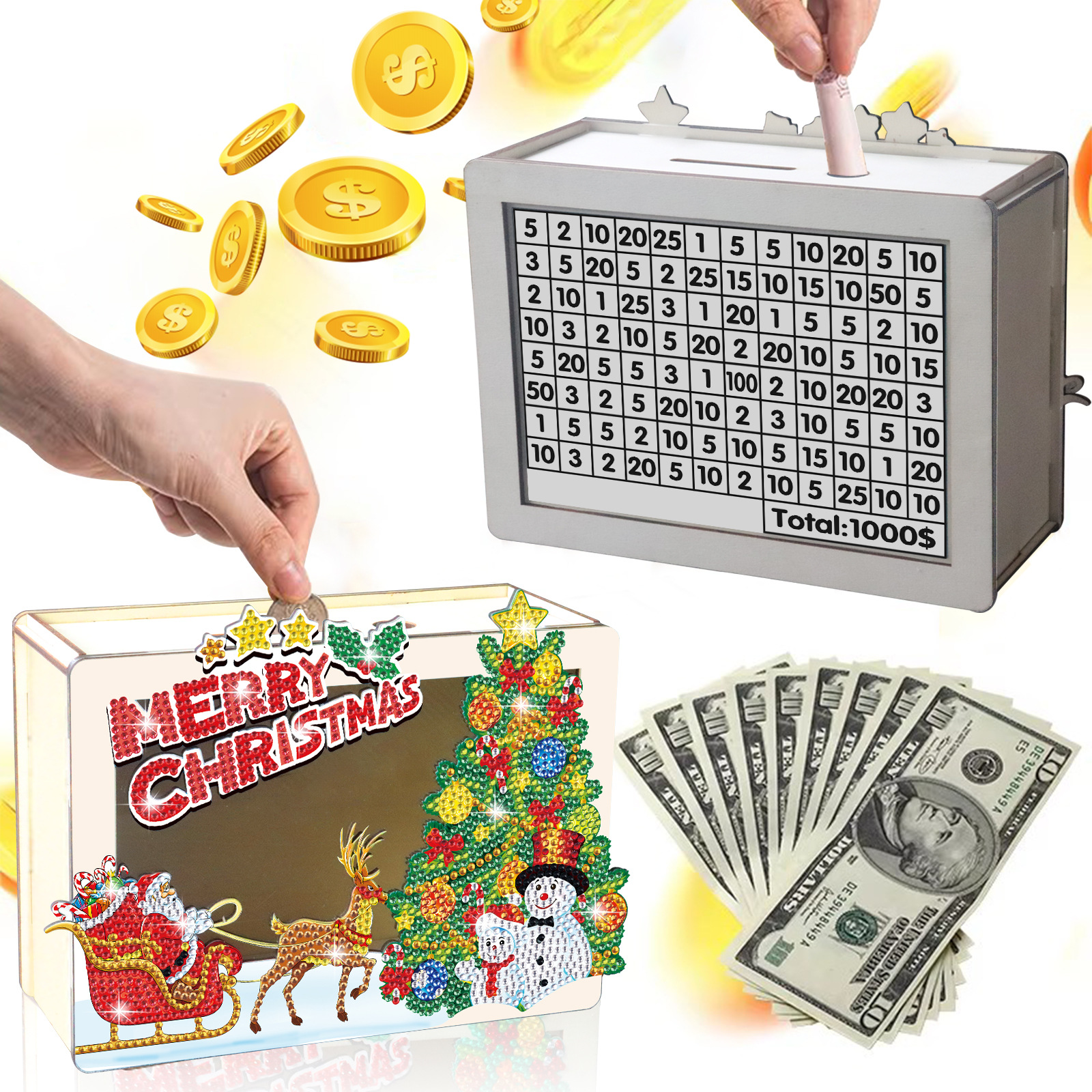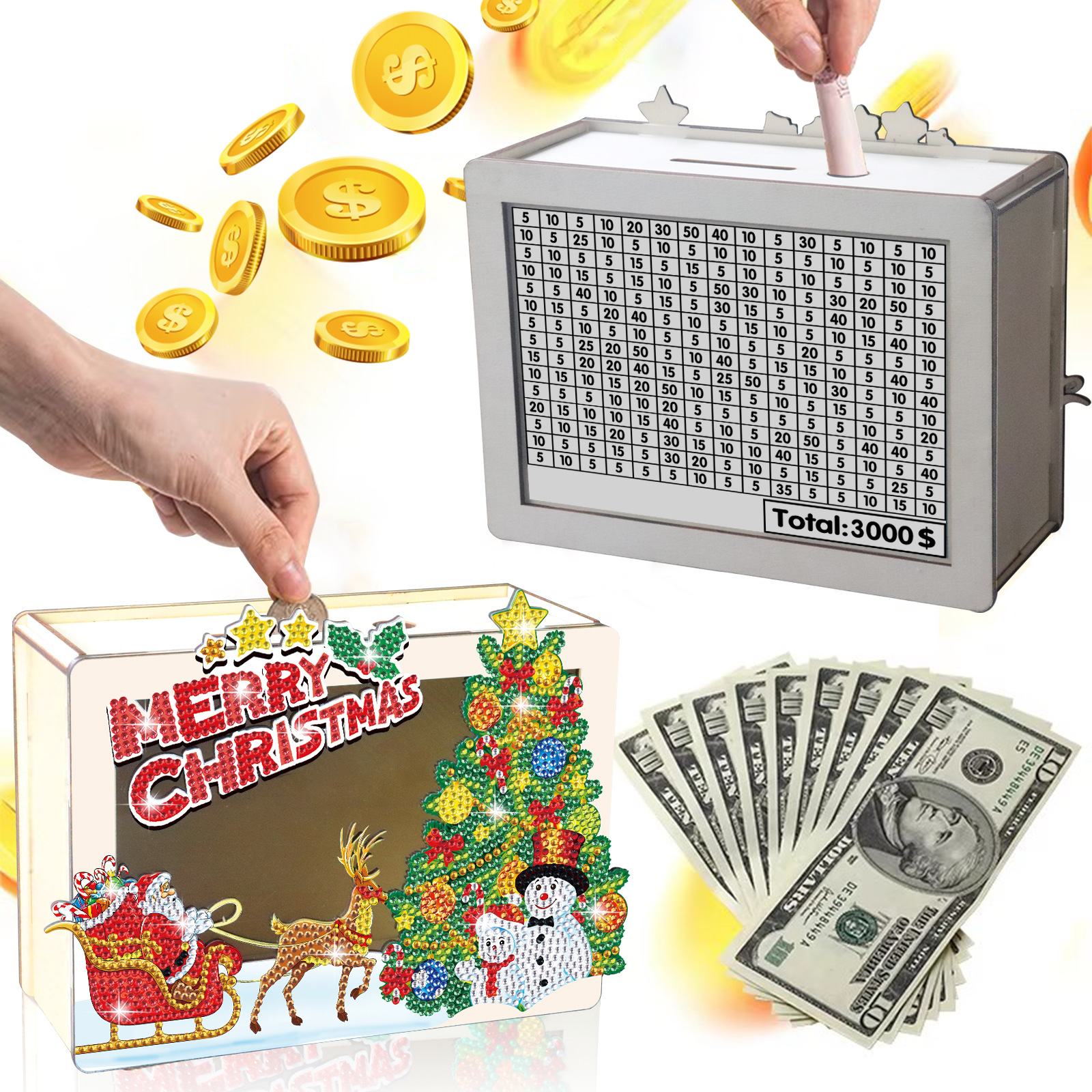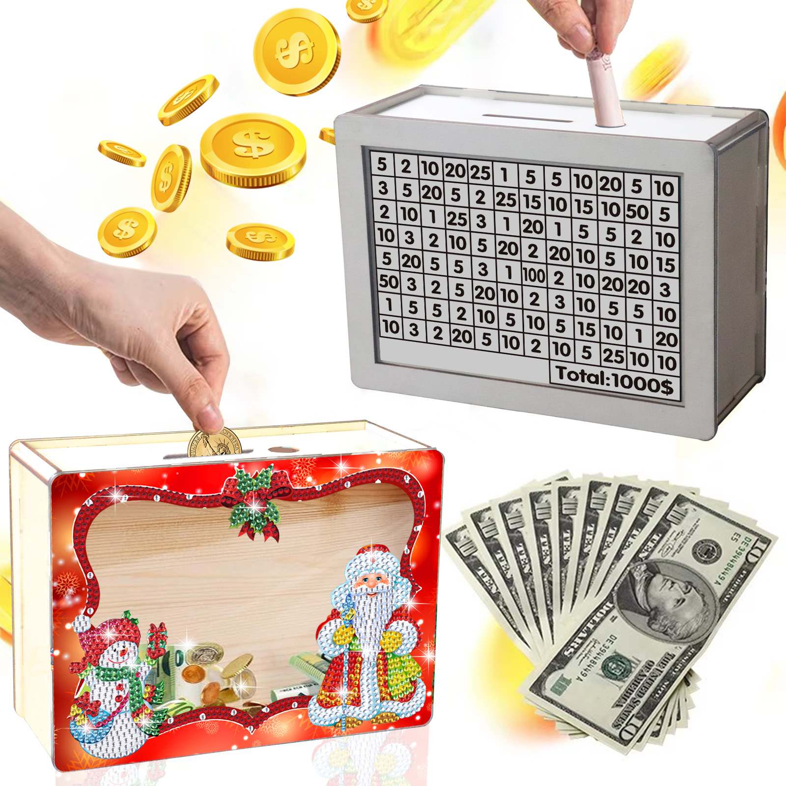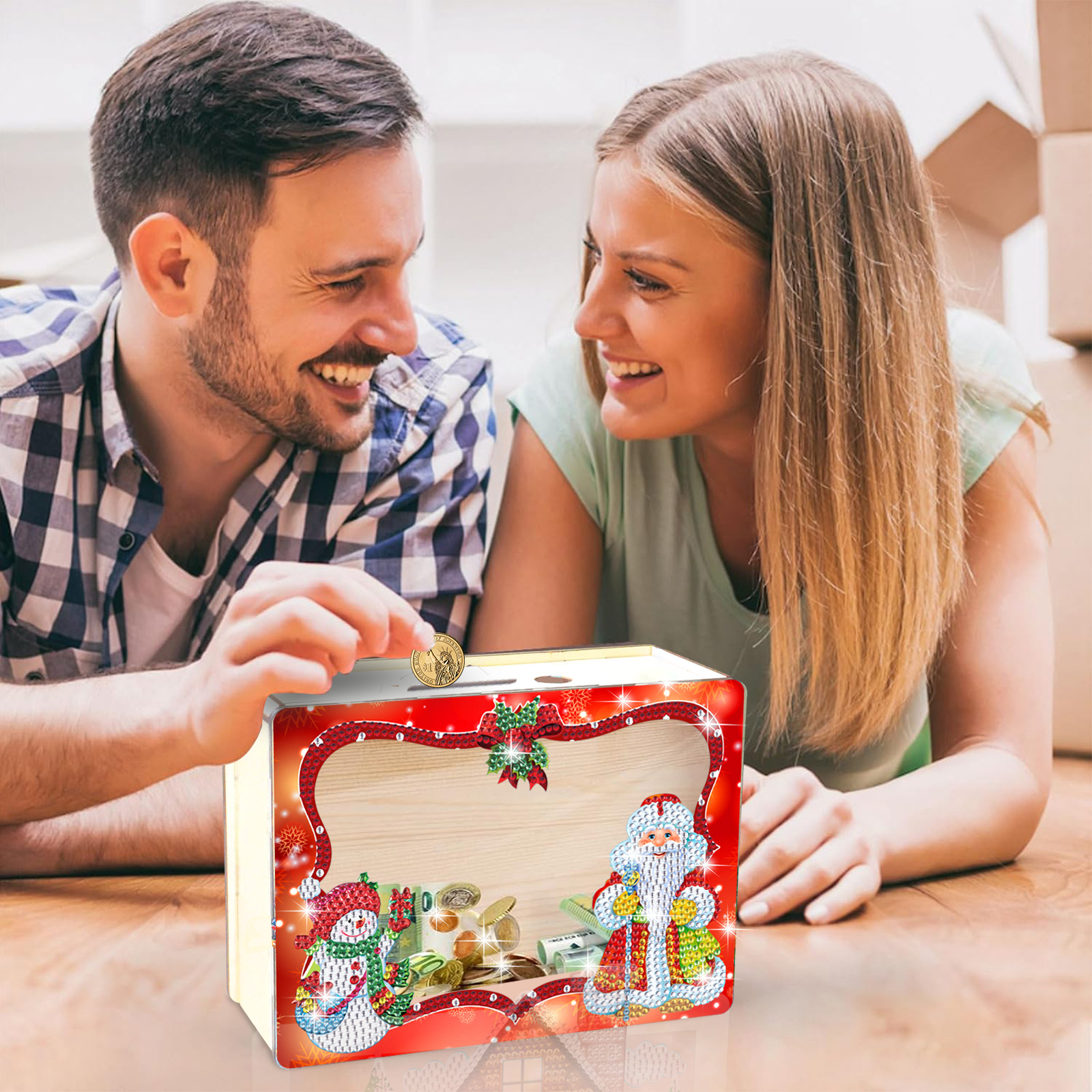 Navidad transfronteriza diy dibujo de diamantes hecha a mano depósito de ahorro creativo pegatinas taladro de madera adornos regalos al por mayor