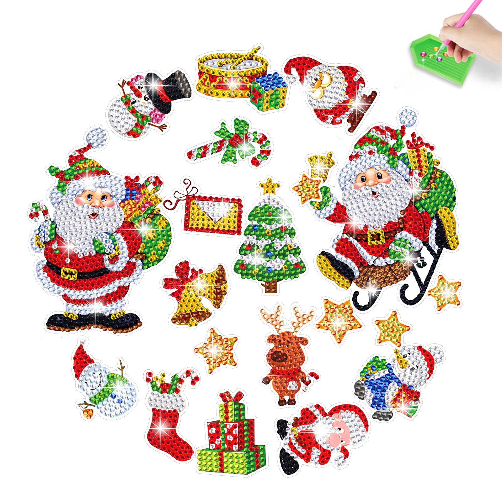 Venta caliente Santa Claus trinchera diamante pintura libre pegatinas DIY ladrillo pintura pegatinas de pared hecho a mano de dibujos animados de cristal brillante diamante