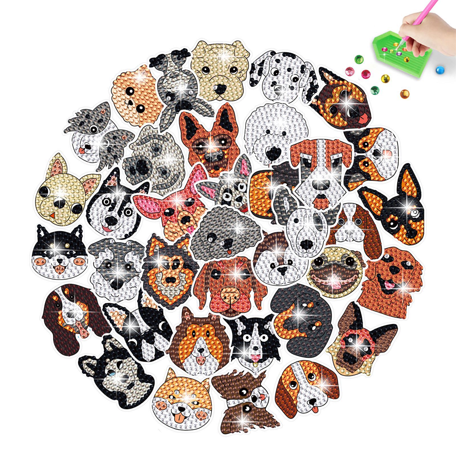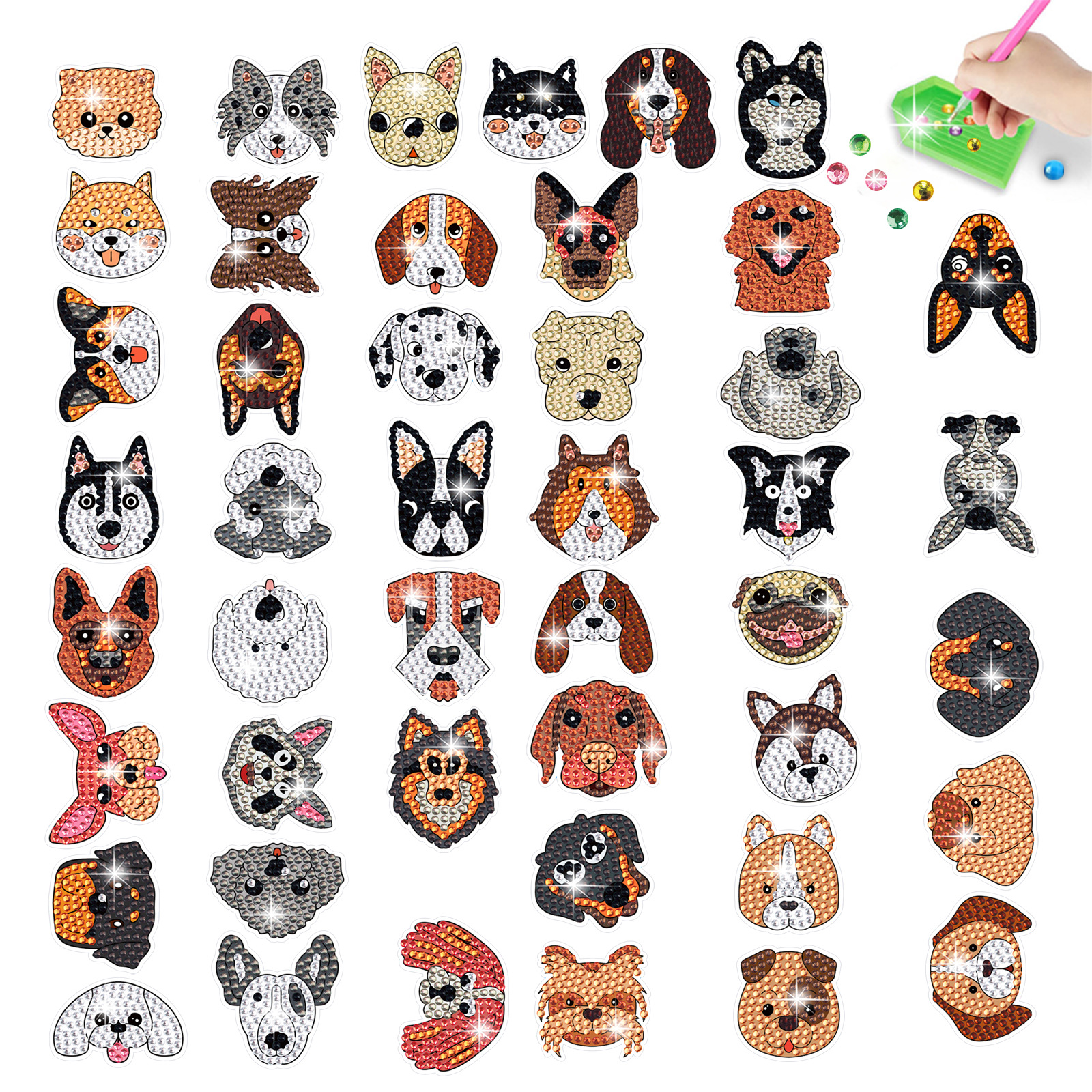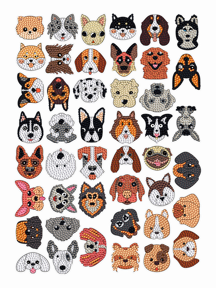 Mejor-Venta de perro de mascota de cabeza grande pegatinas de diamante pintura libre pegatinas DIY ladrillo pintura hecha a mano pegatinas de dibujos animados de cristal brillante diamante