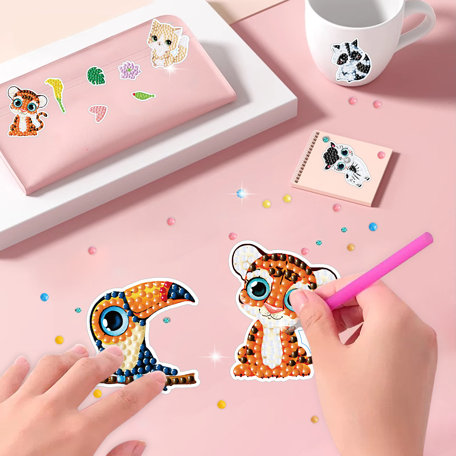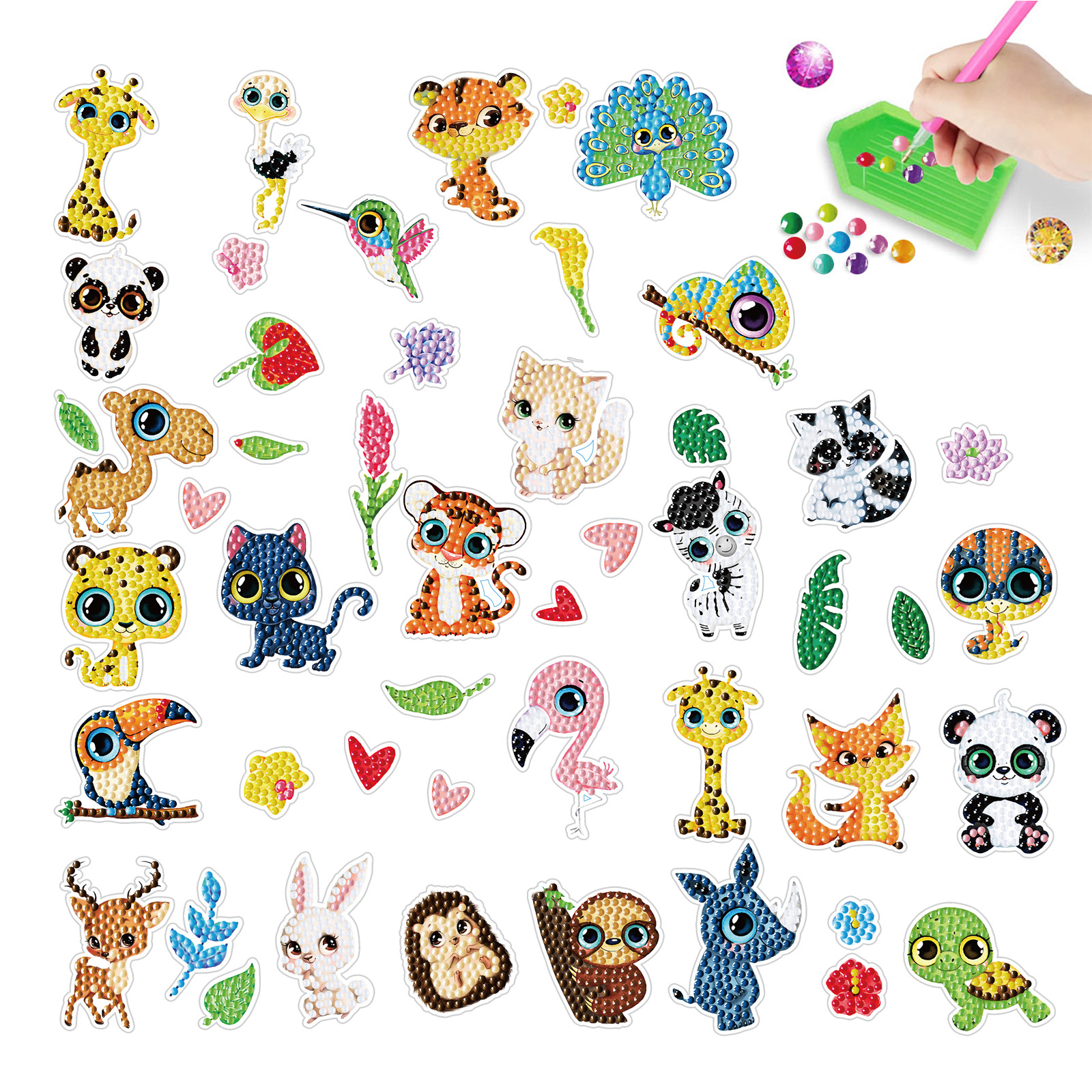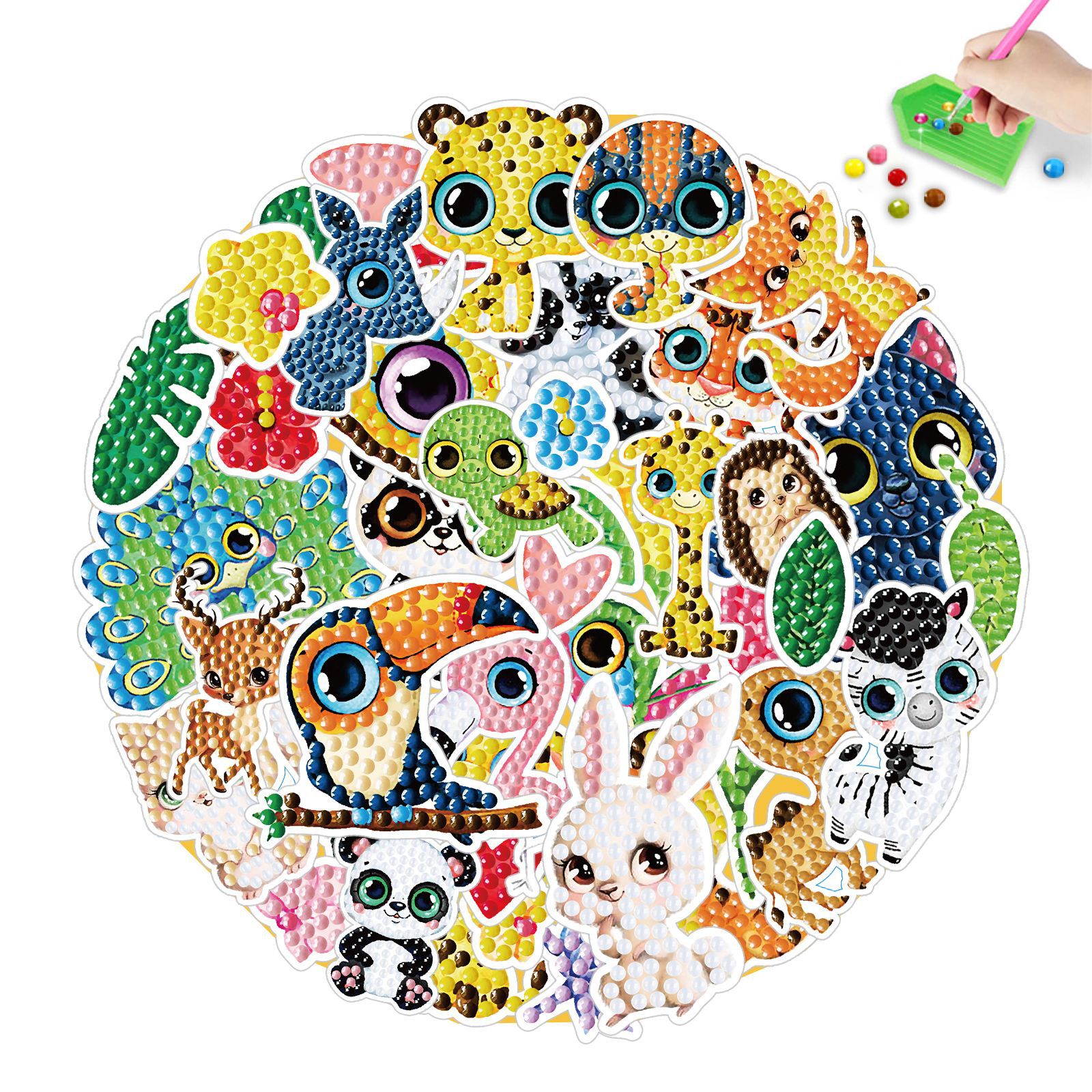 Venta caliente de dibujos animados pequeño animal diamante pintura libre pegatinas DIY ladrillo pintura pared pegatinas niños hechos a mano pegatinas redondo diamante